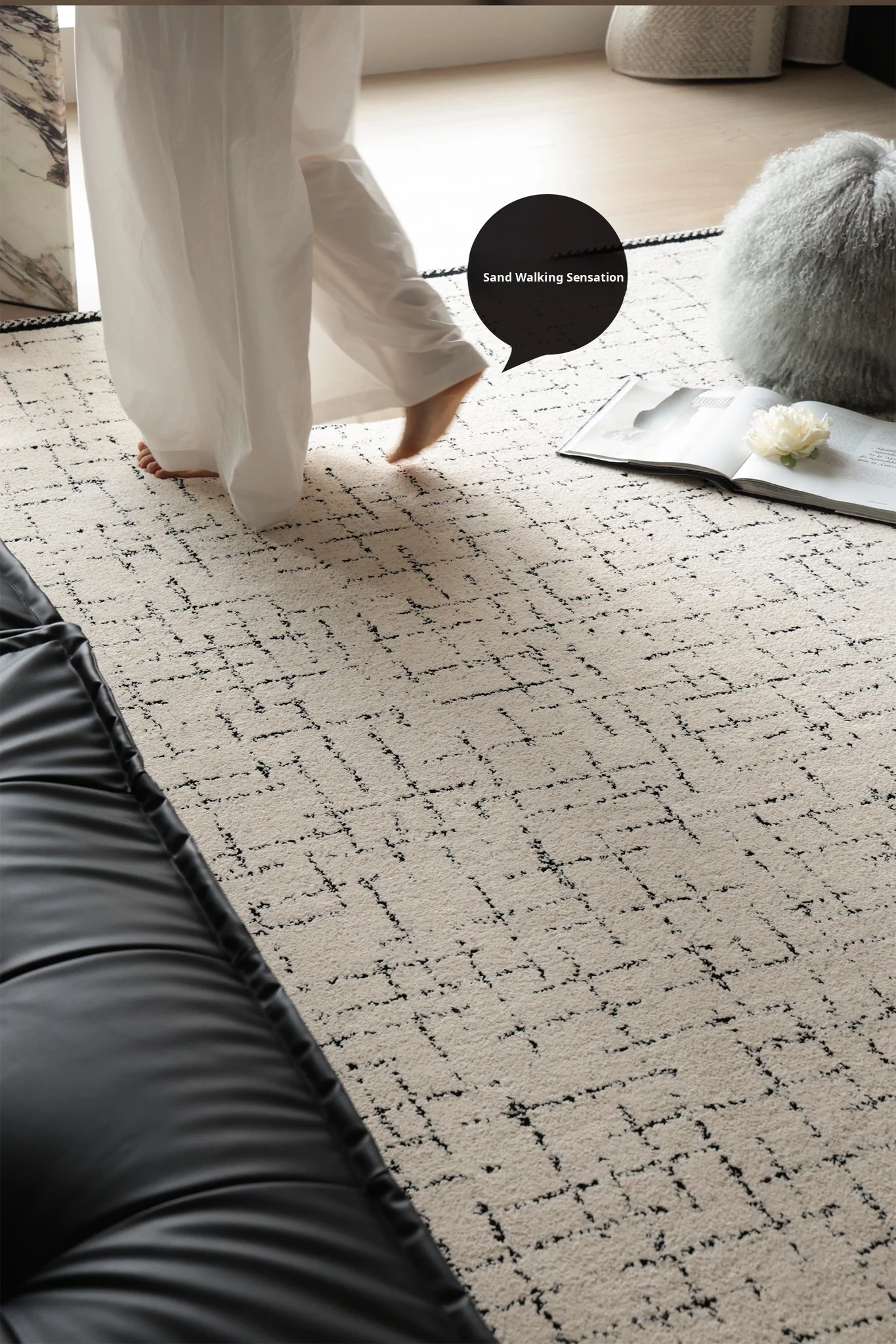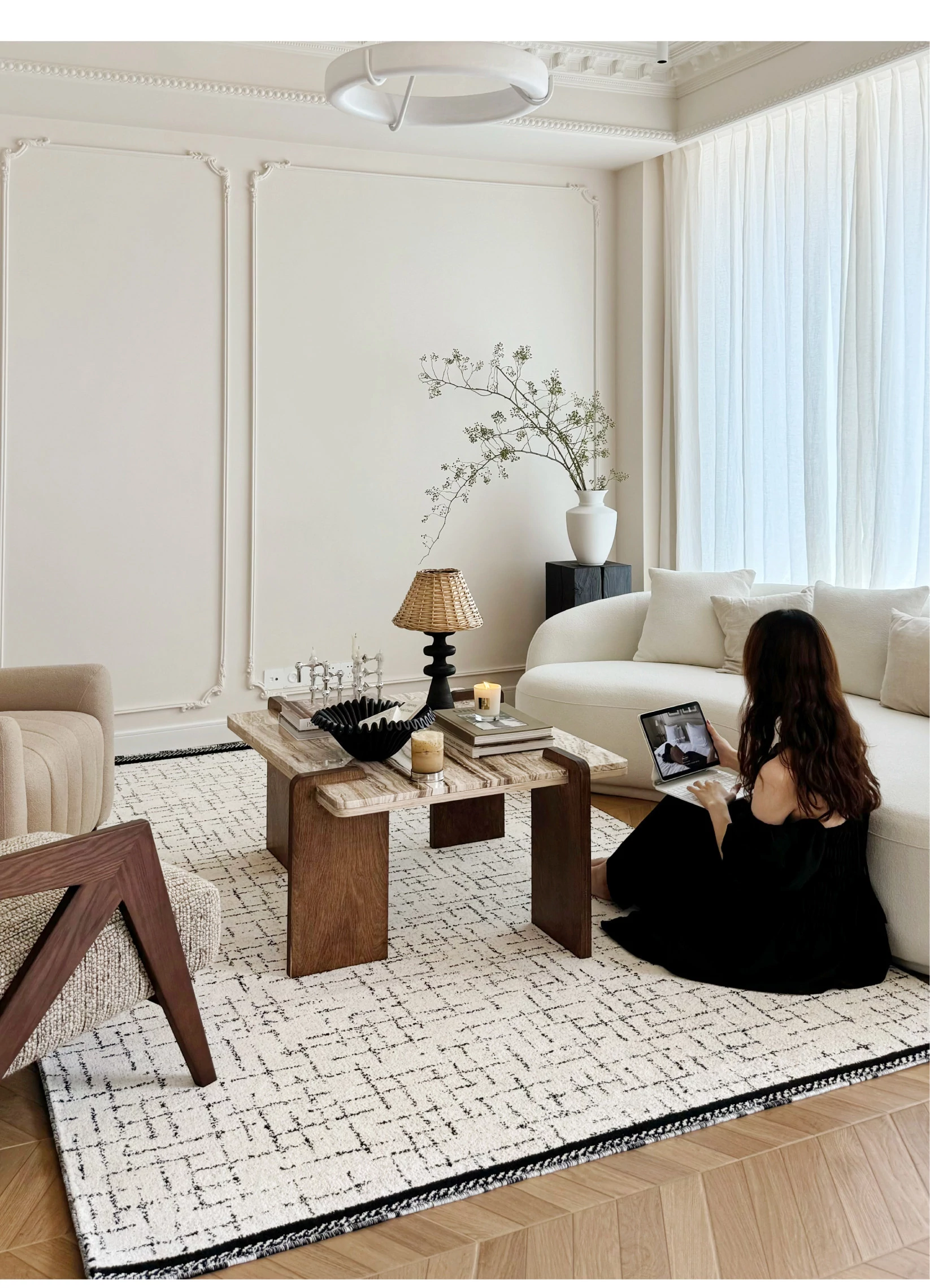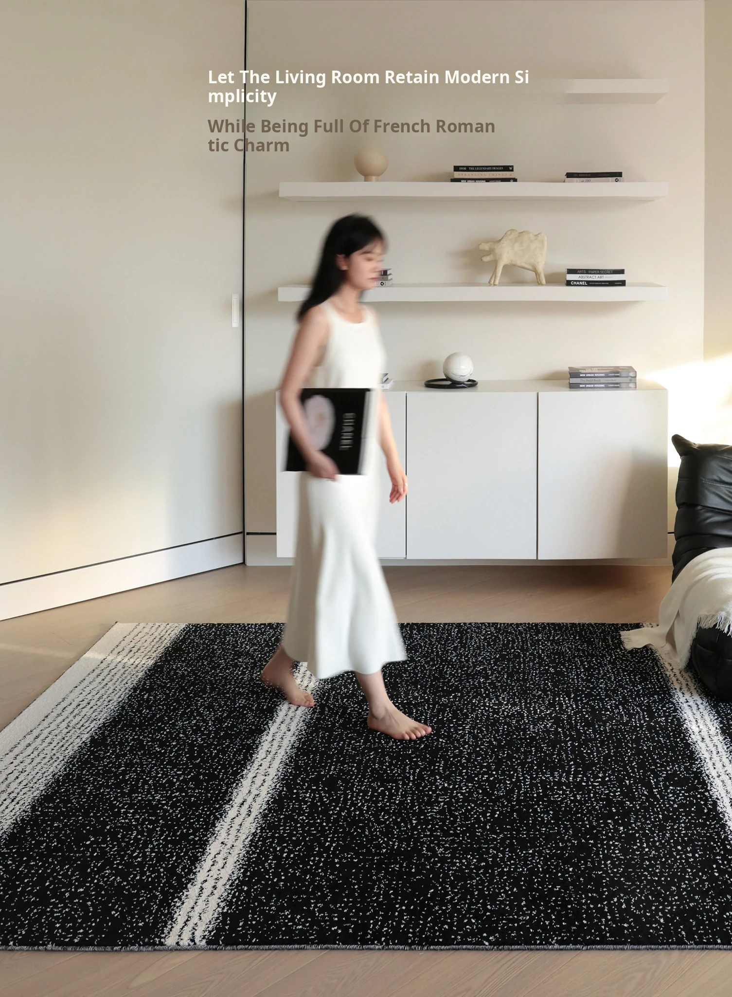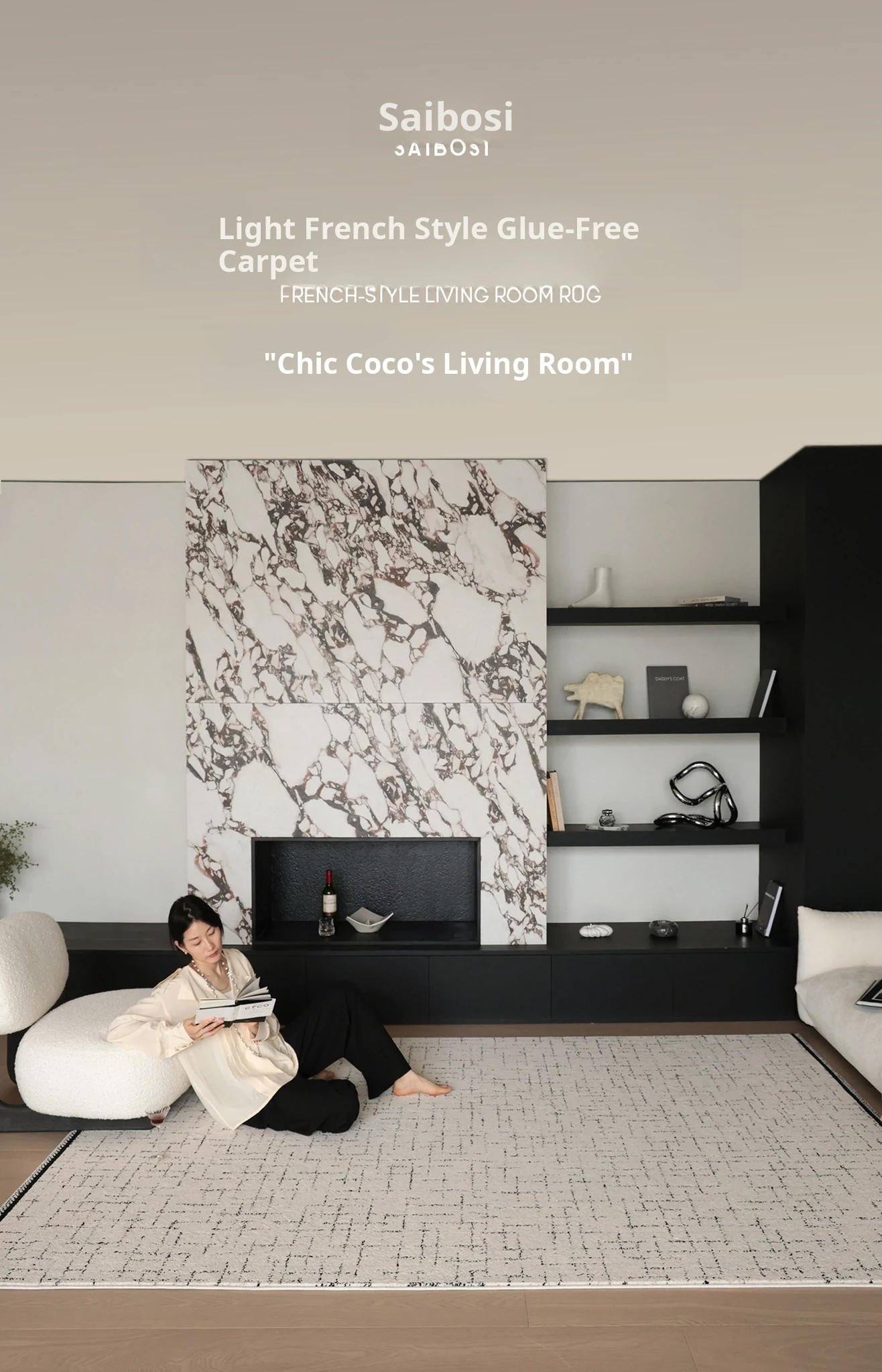 Sybos Non-Adhesive Waterproof Stain-Resistant Area Rug - Chic French Minimalist Design for Living Room & Bedroom - Perfect for Elegant Getaways and Cozy Spaces