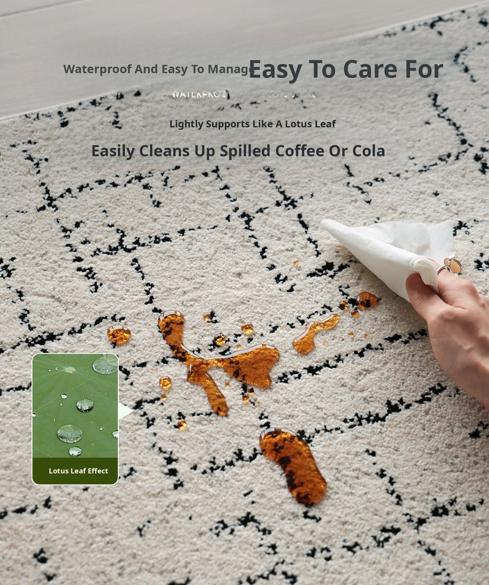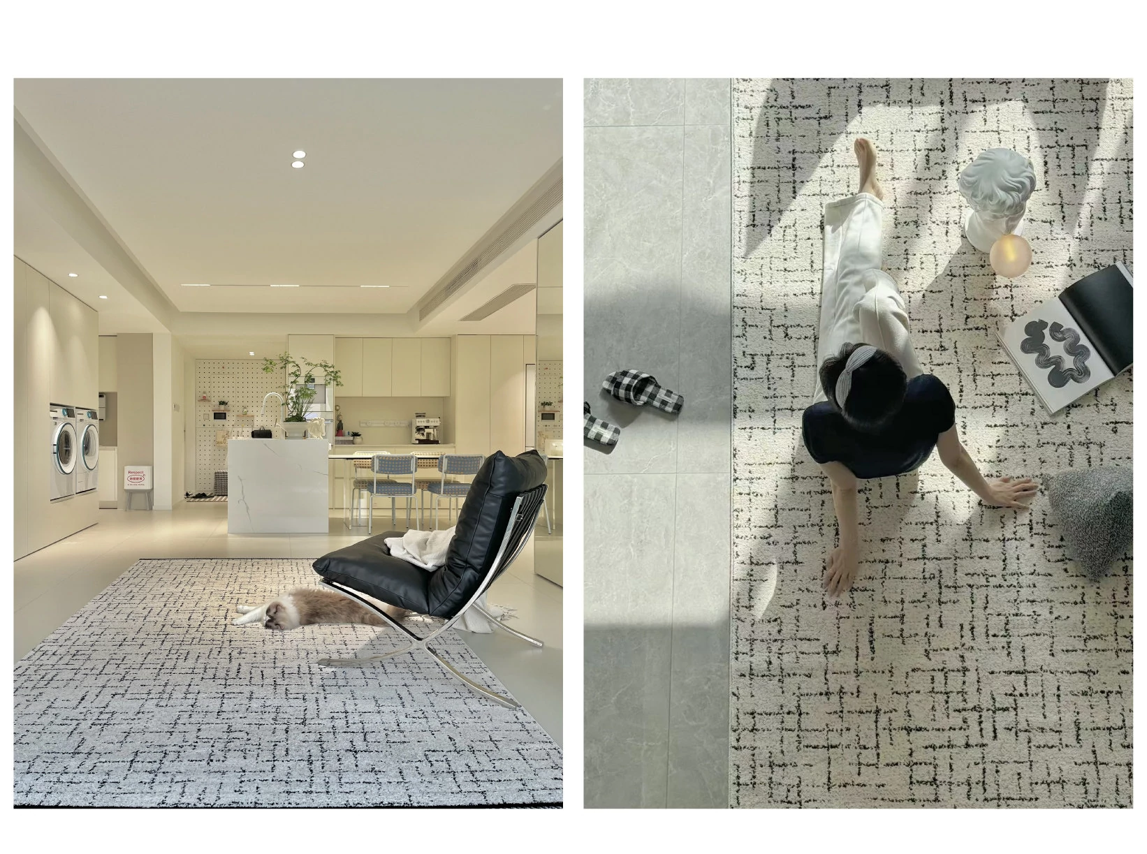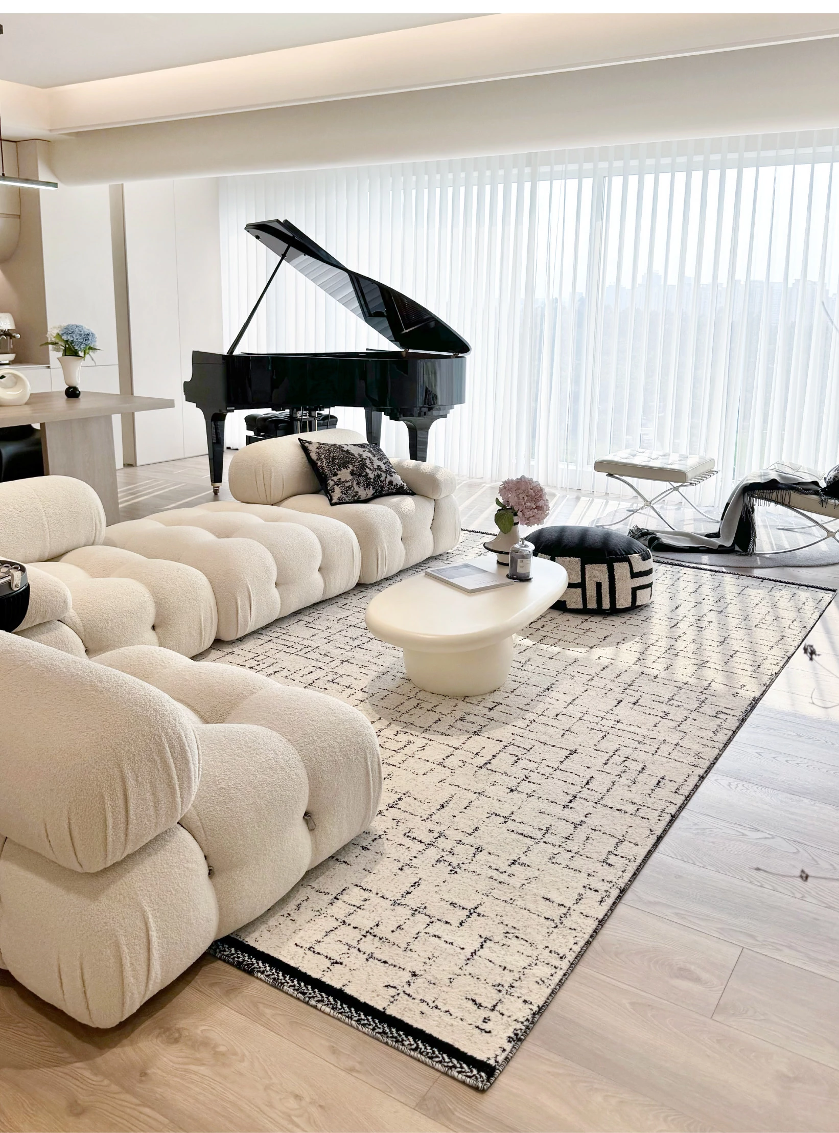 Sybos Non-Adhesive Waterproof Stain-Resistant Area Rug - Chic French Minimalist Design for Living Room & Bedroom - Perfect for Elegant Getaways and Cozy Spaces