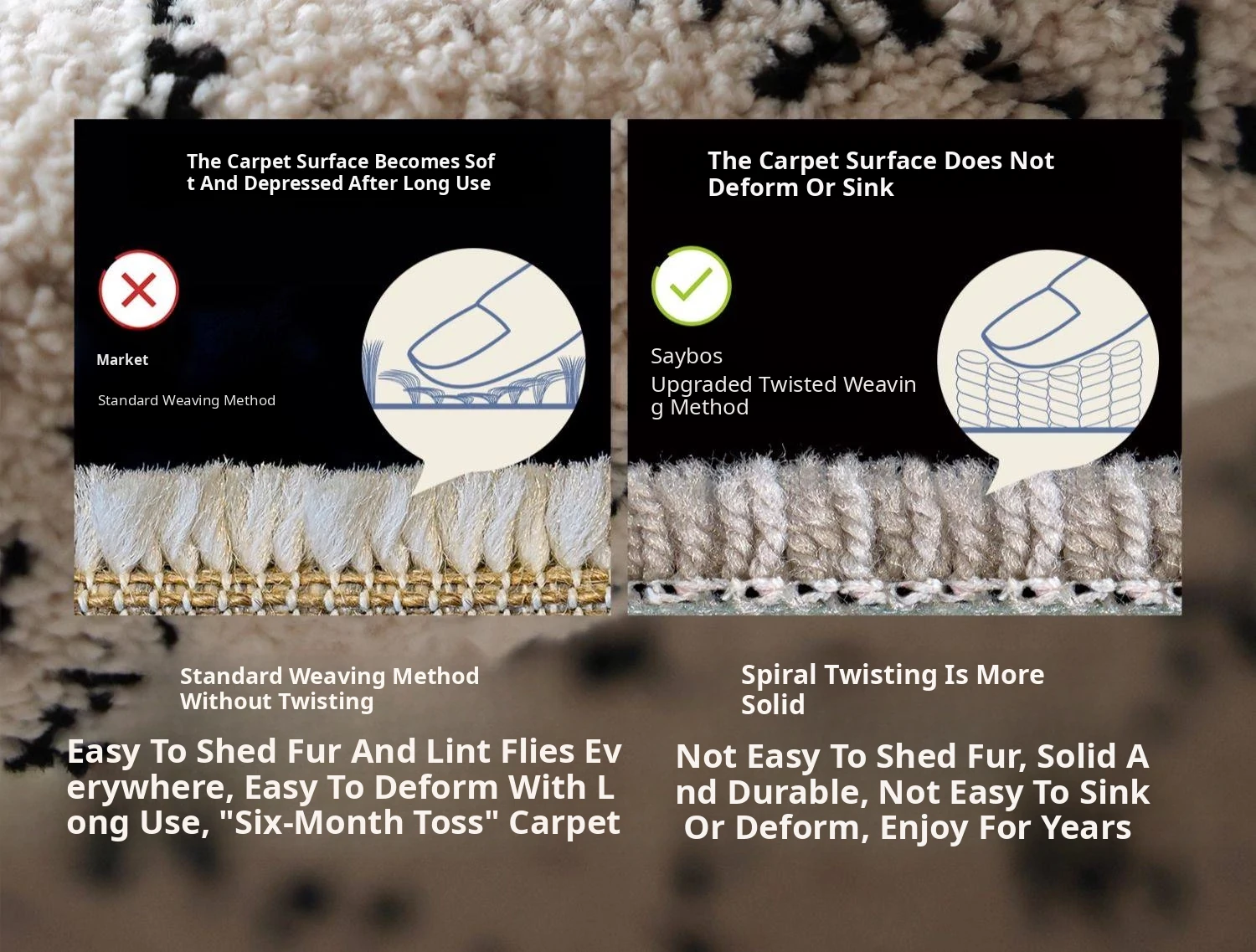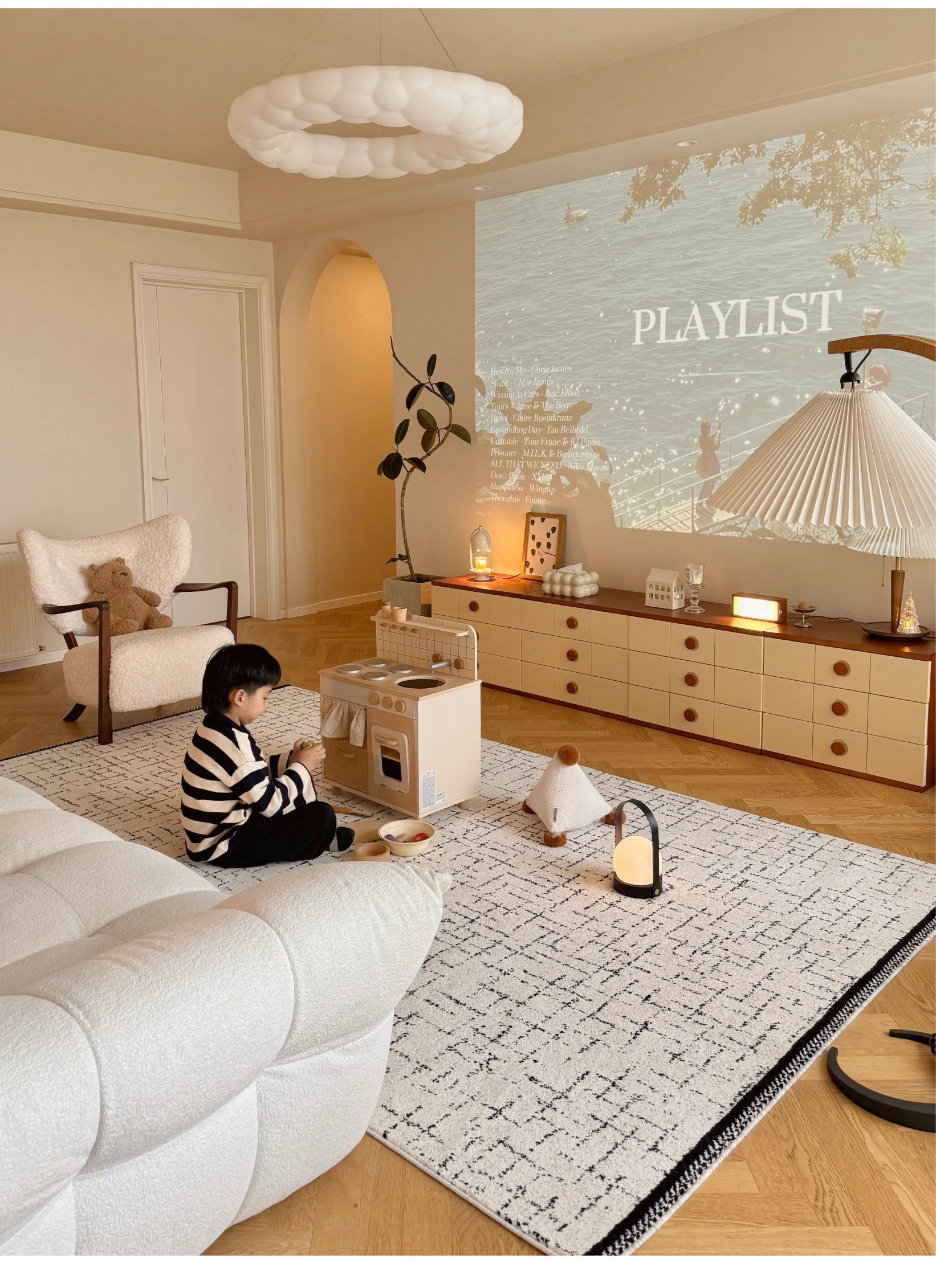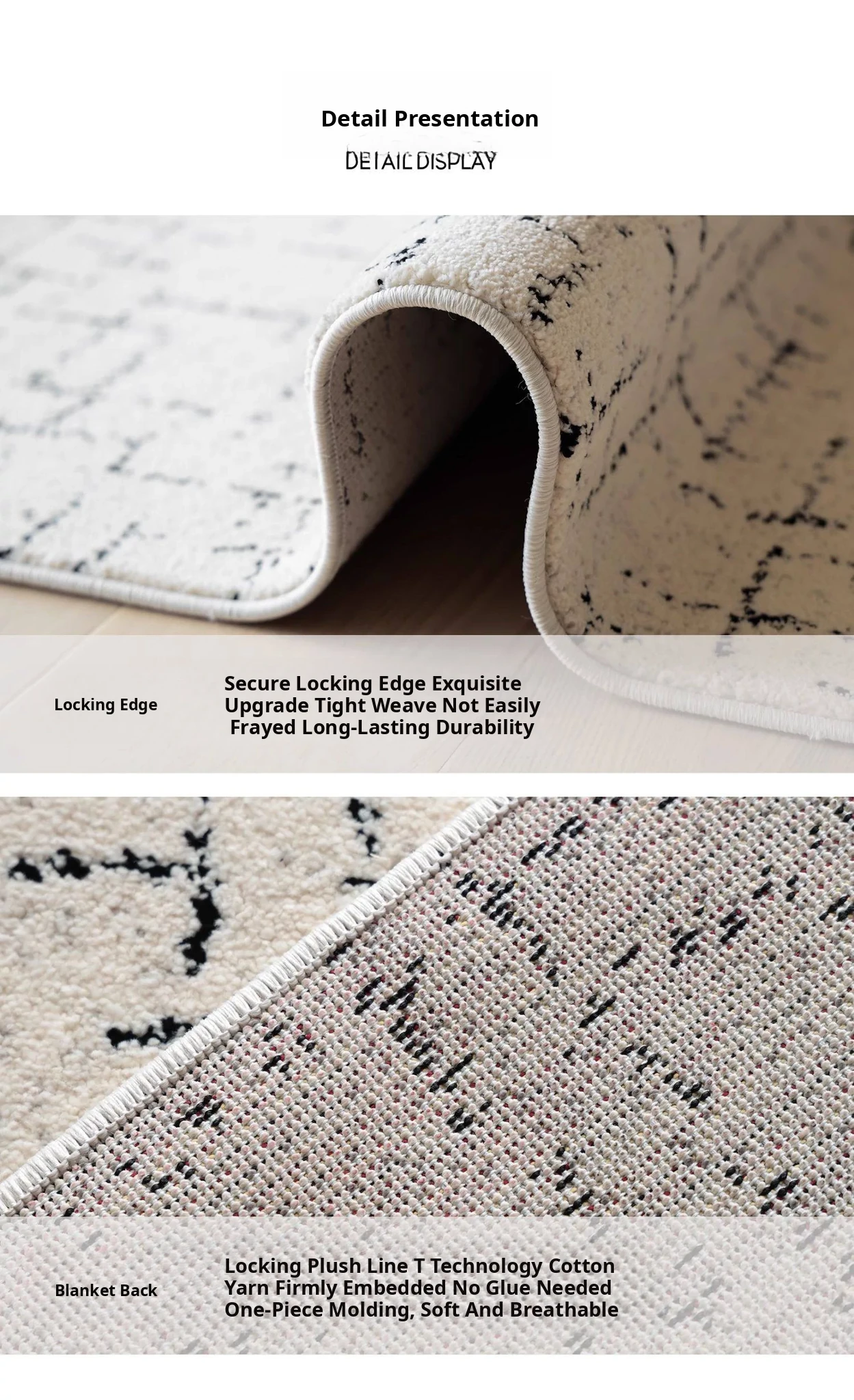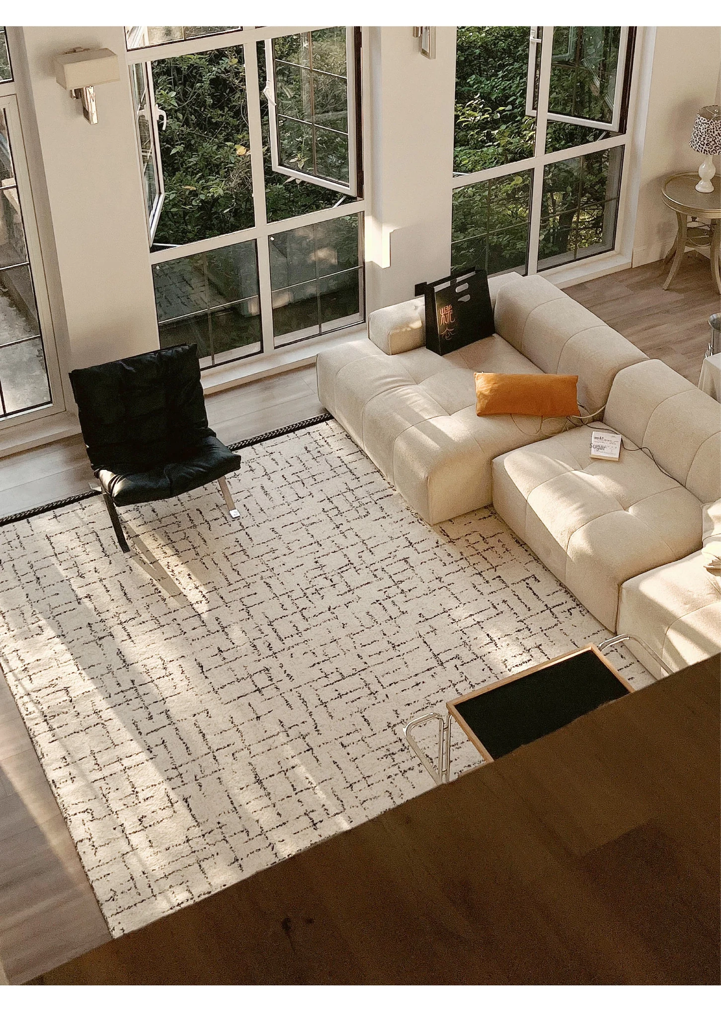 Sybos Non-Adhesive Waterproof Stain-Resistant Area Rug - Chic French Minimalist Design for Living Room & Bedroom - Perfect for Elegant Getaways and Cozy Spaces