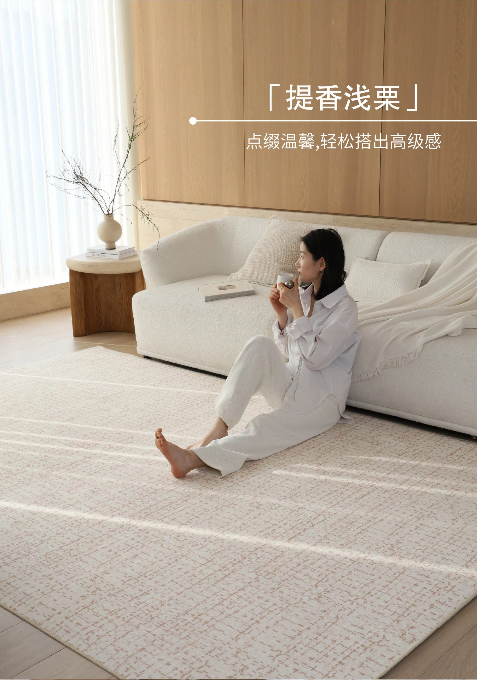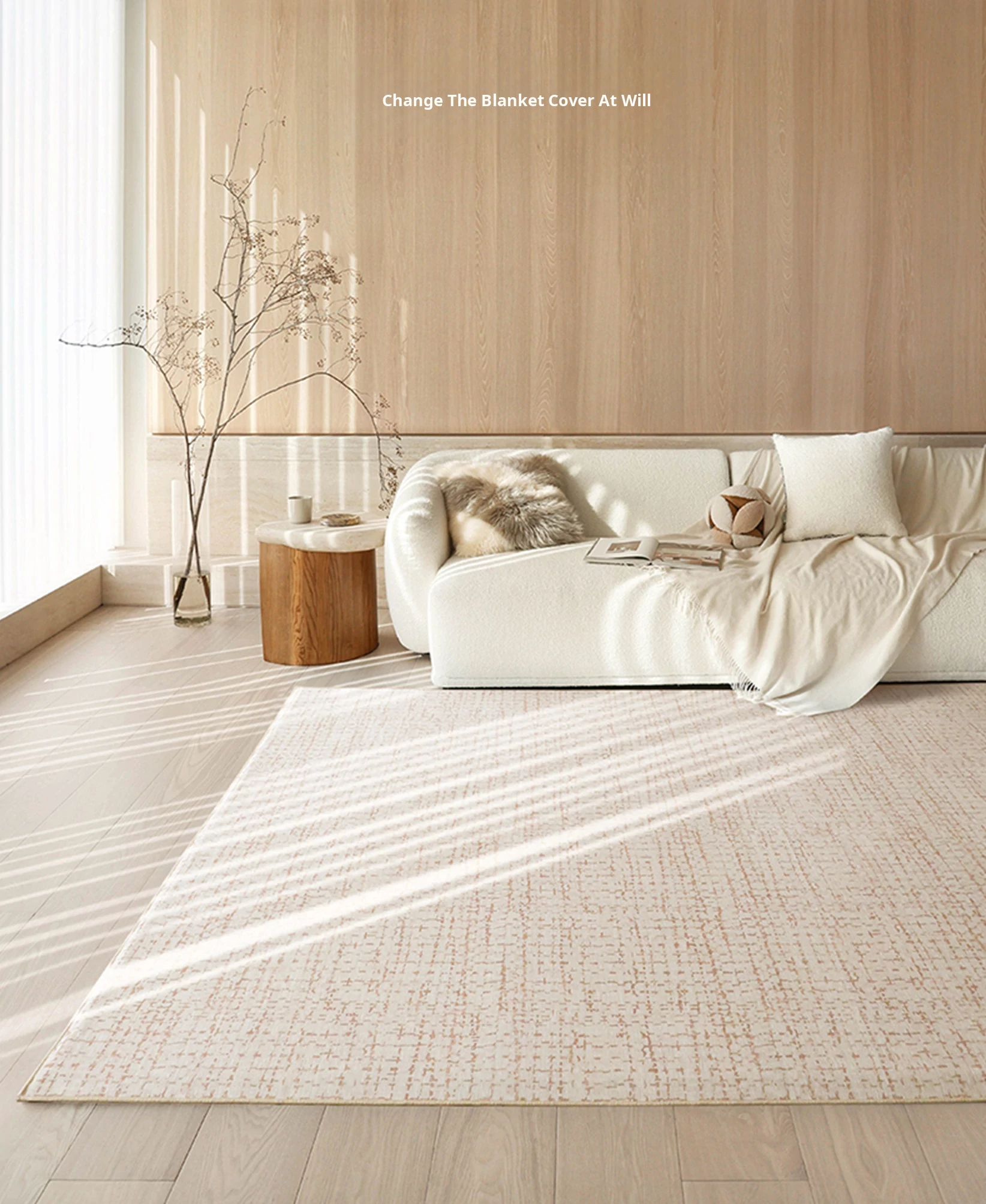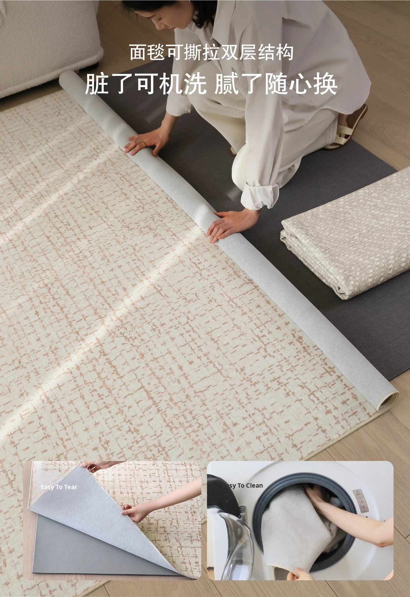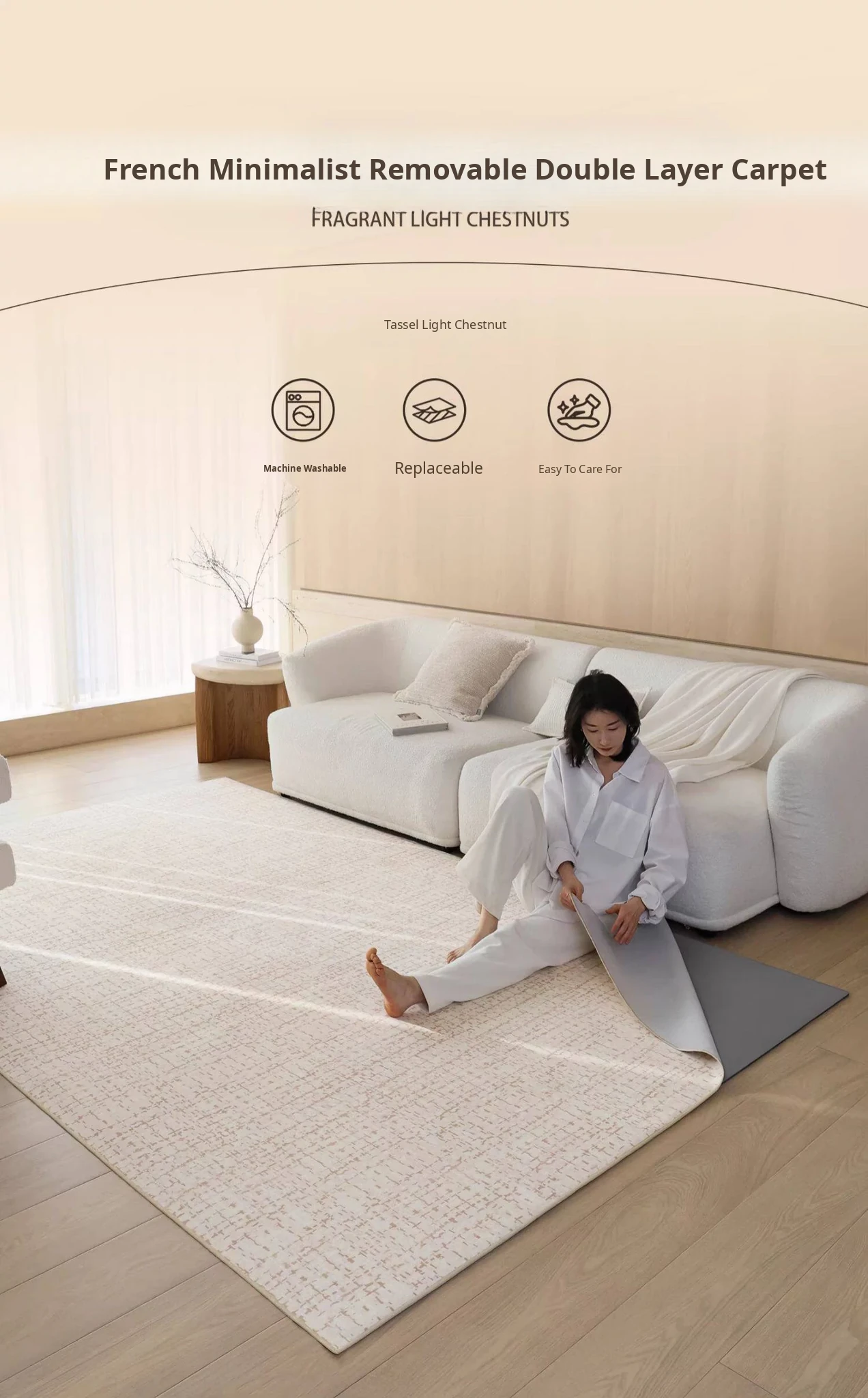 Sybos Tissian Light Brown Removable Double-Layer Carpet - Minimalist Luxury Design, Cat Scratch Resistant, Machine Washable for Living Room and Bedroom