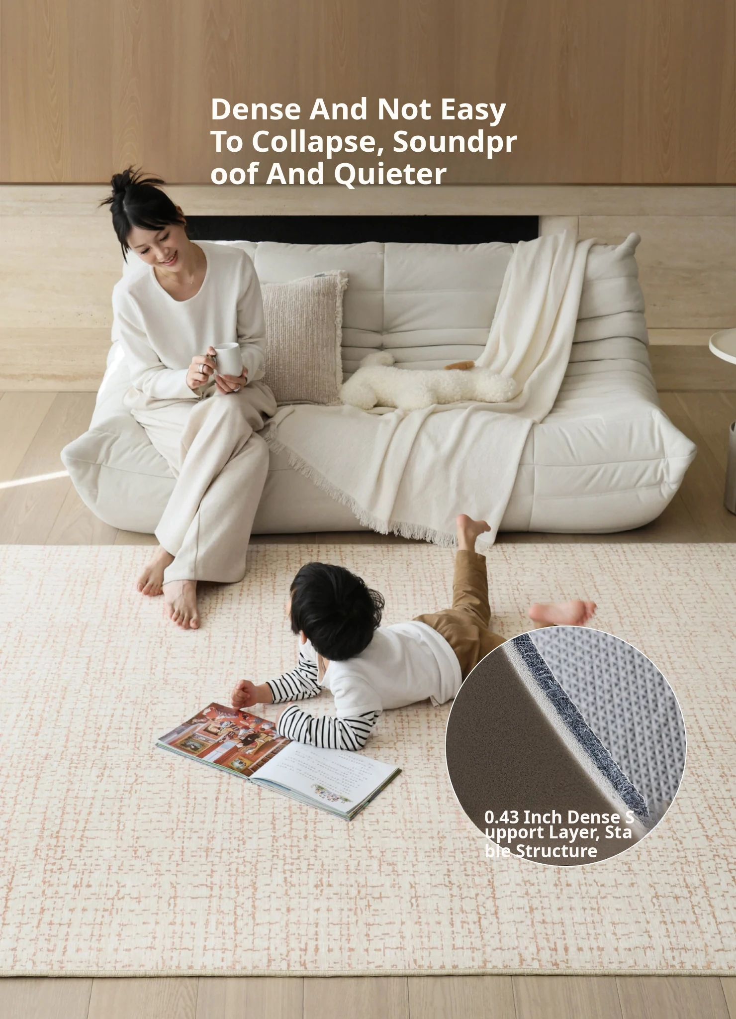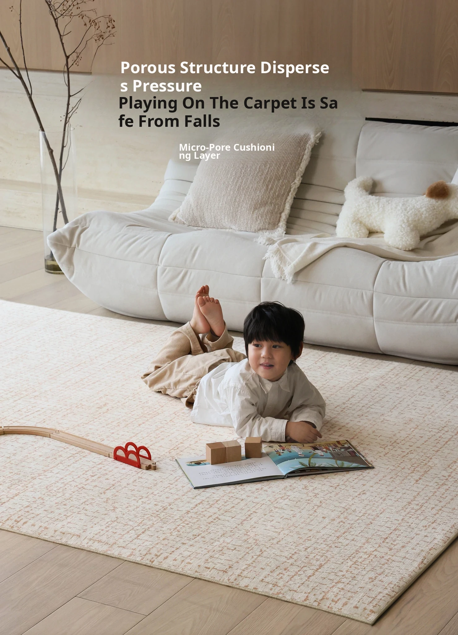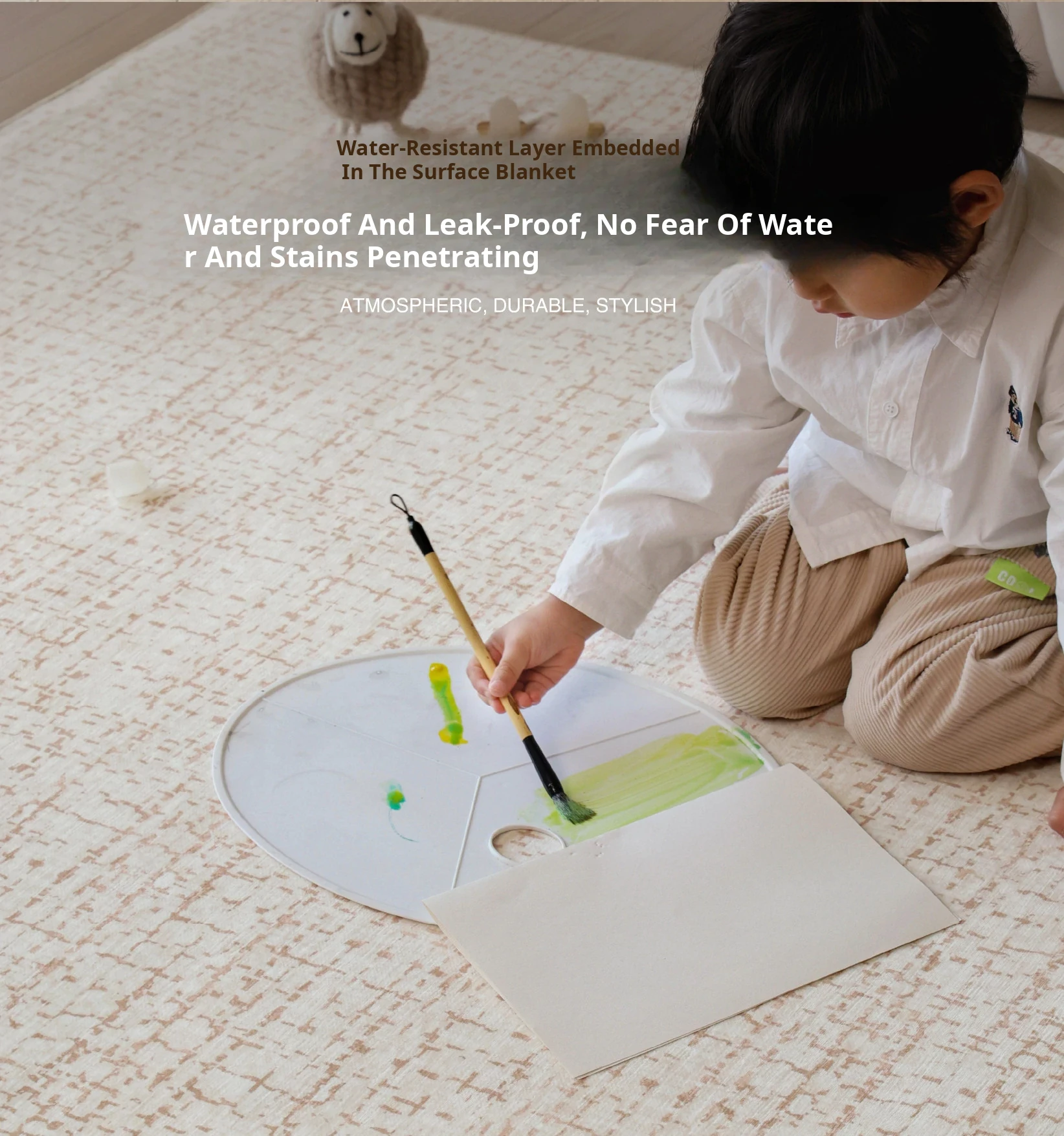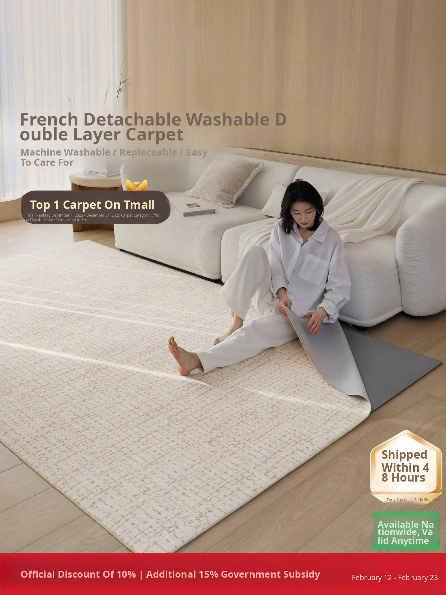 Sybos Tissian Light Brown Removable Double-Layer Carpet - Minimalist Luxury Design, Cat Scratch Resistant, Machine Washable for Living Room and Bedroom