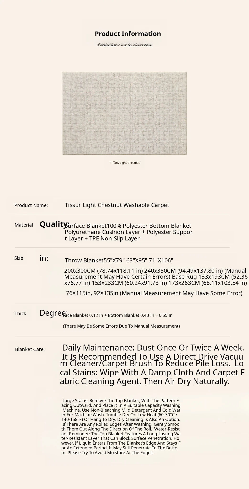 140×78.74in [Complete Set: Carpet Surface + 0.43in Carpet Base]