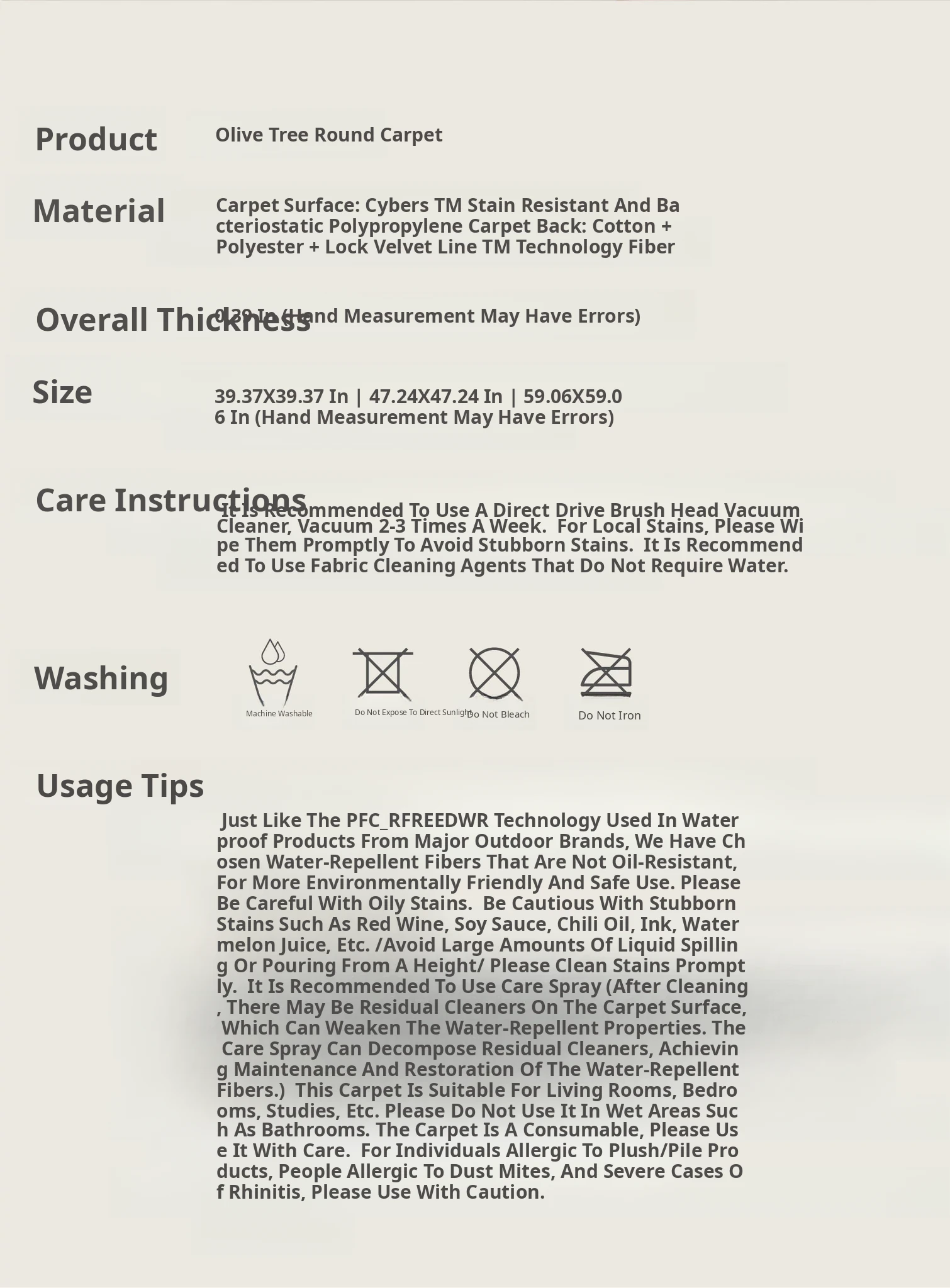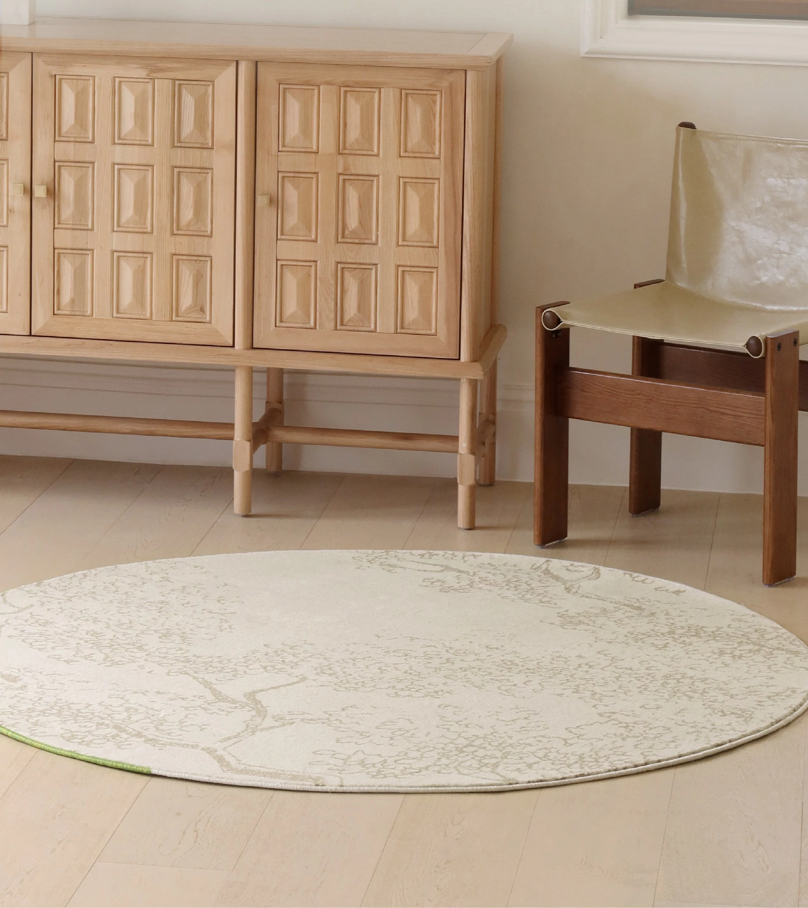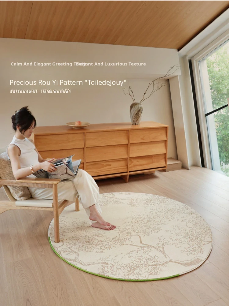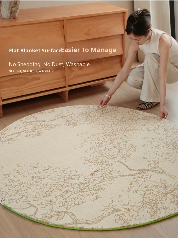 Sybos Waterproof Stain-Resistant Round Carpet - Non-Adhesive, Antimicrobial, Premium Quality for Bedroom, Walk-in Closet, and Bedside - Elevate Your Space with Natural Aesthetics
