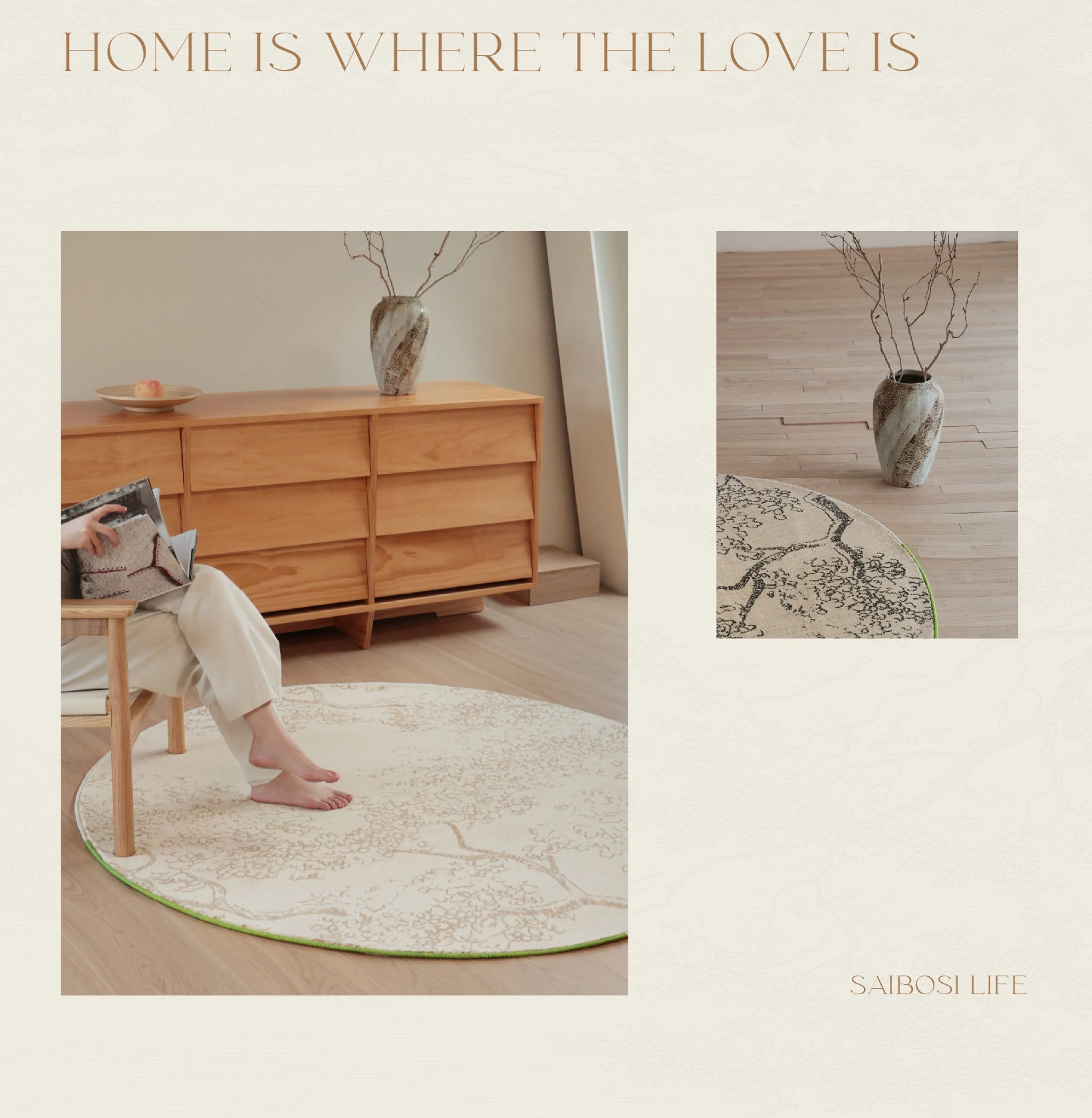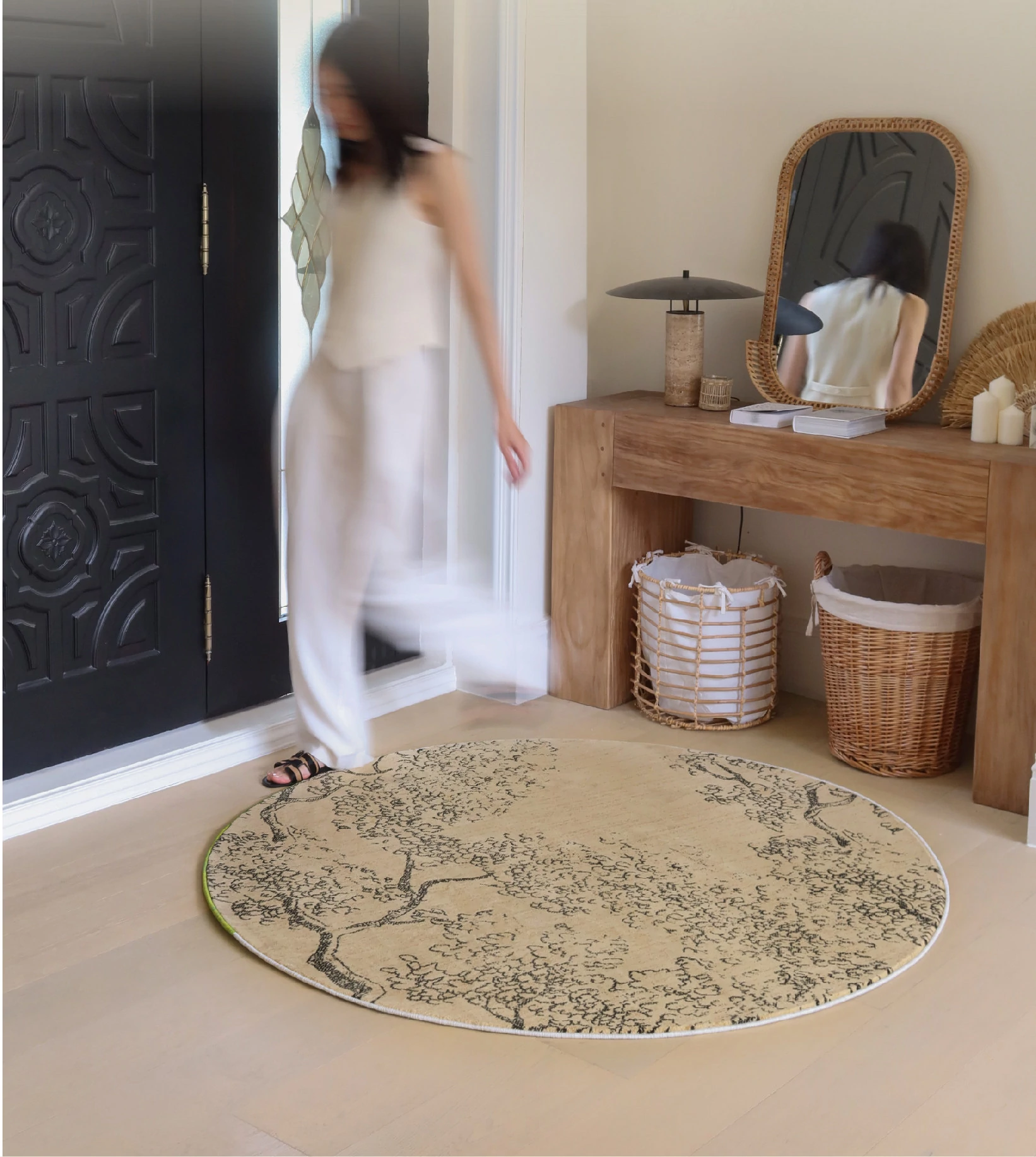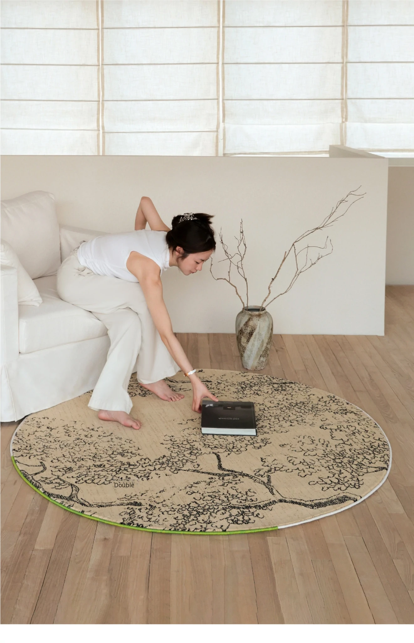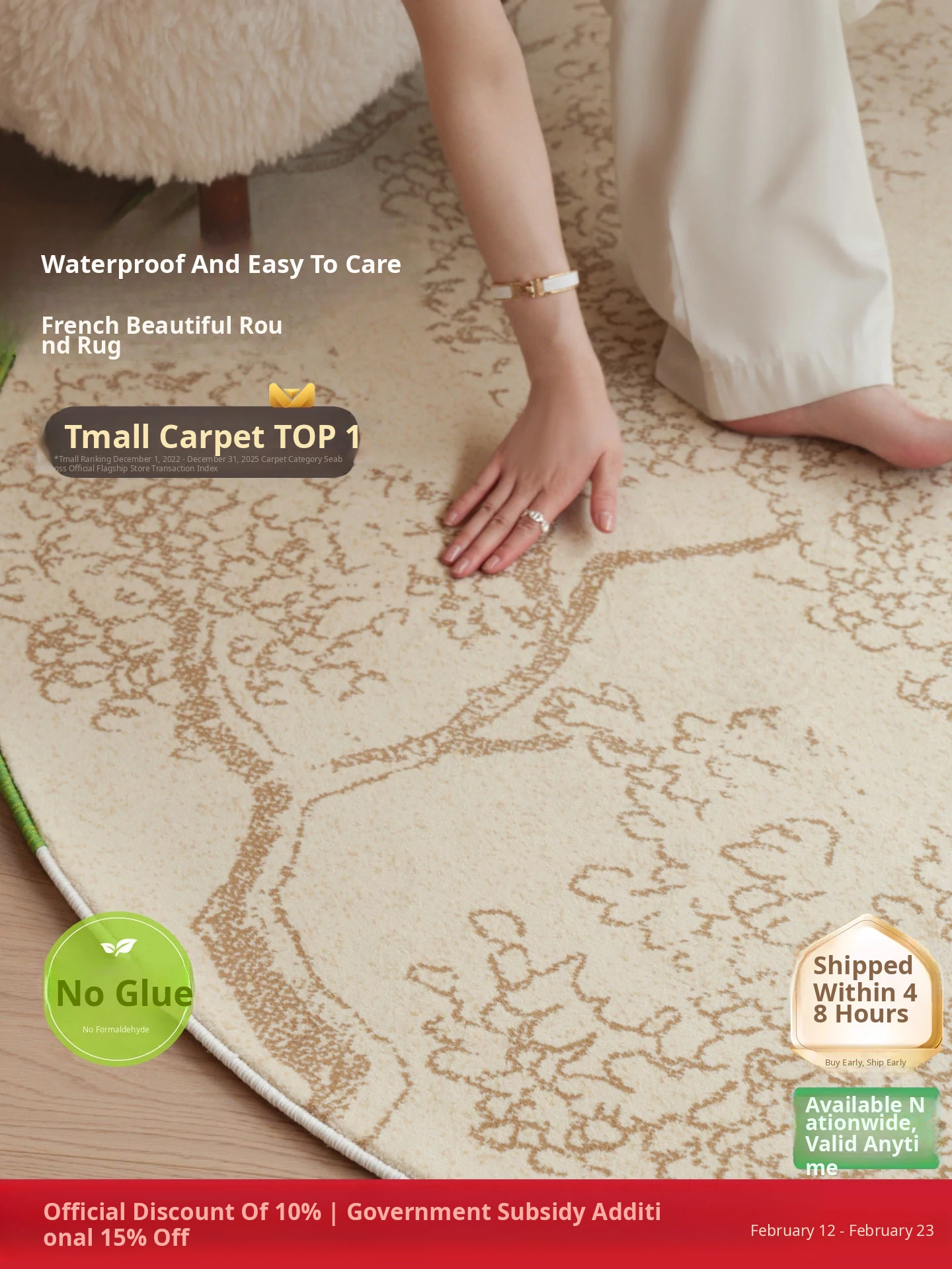 Sybos Waterproof Stain-Resistant Round Carpet - Non-Adhesive, Antimicrobial, Premium Quality for Bedroom, Walk-in Closet, and Bedside - Elevate Your Space with Natural Aesthetics