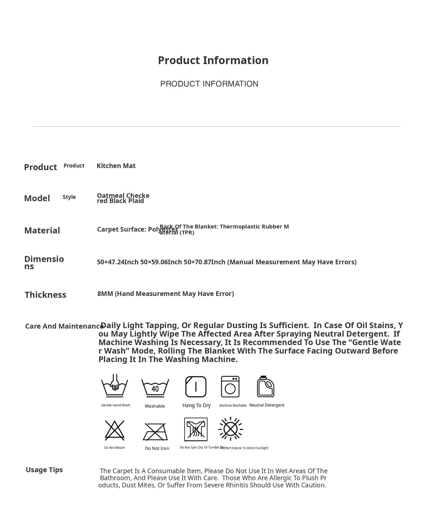 Kitchen Mat (Oatmeal Grid)