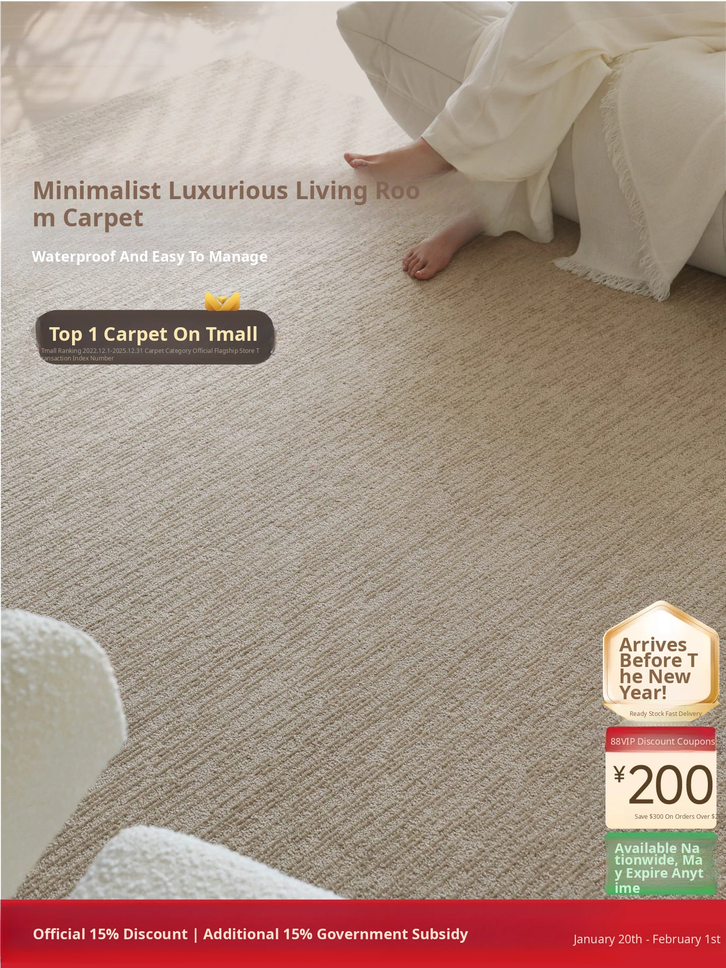 Sypo Waterproof Stain-Resistant Easy-Care Carpet - Elegant Minimalist Design for Living Room and Bedroom, Perfect for Chic Accommodations