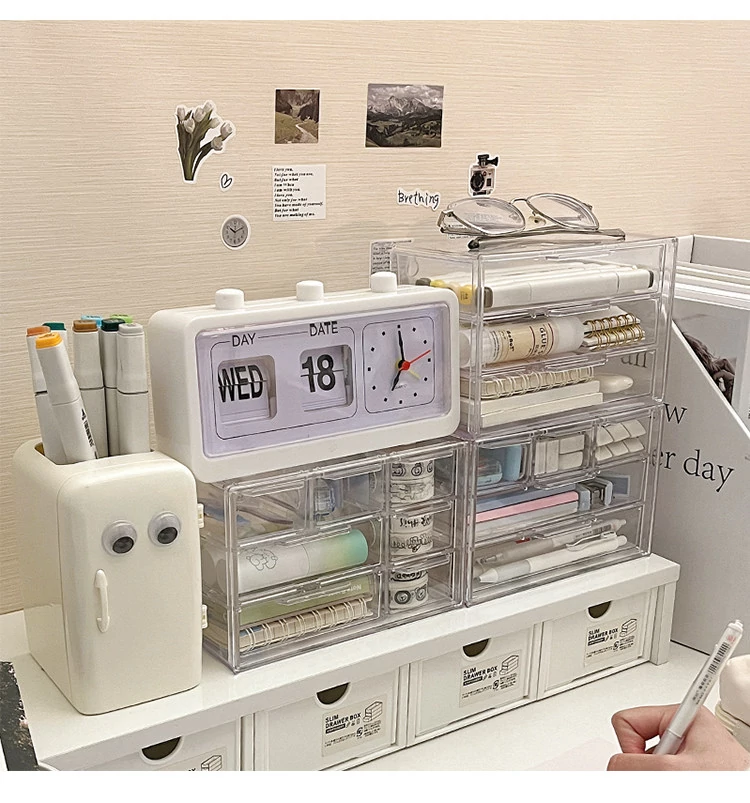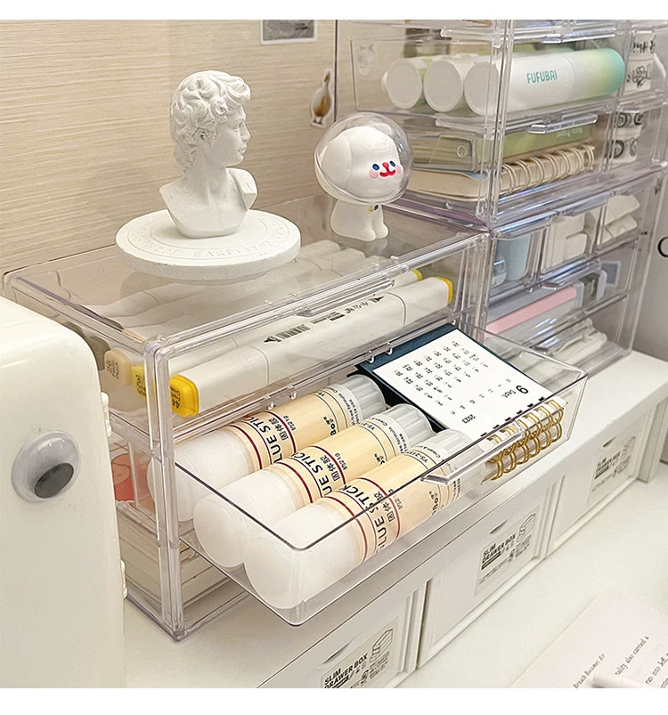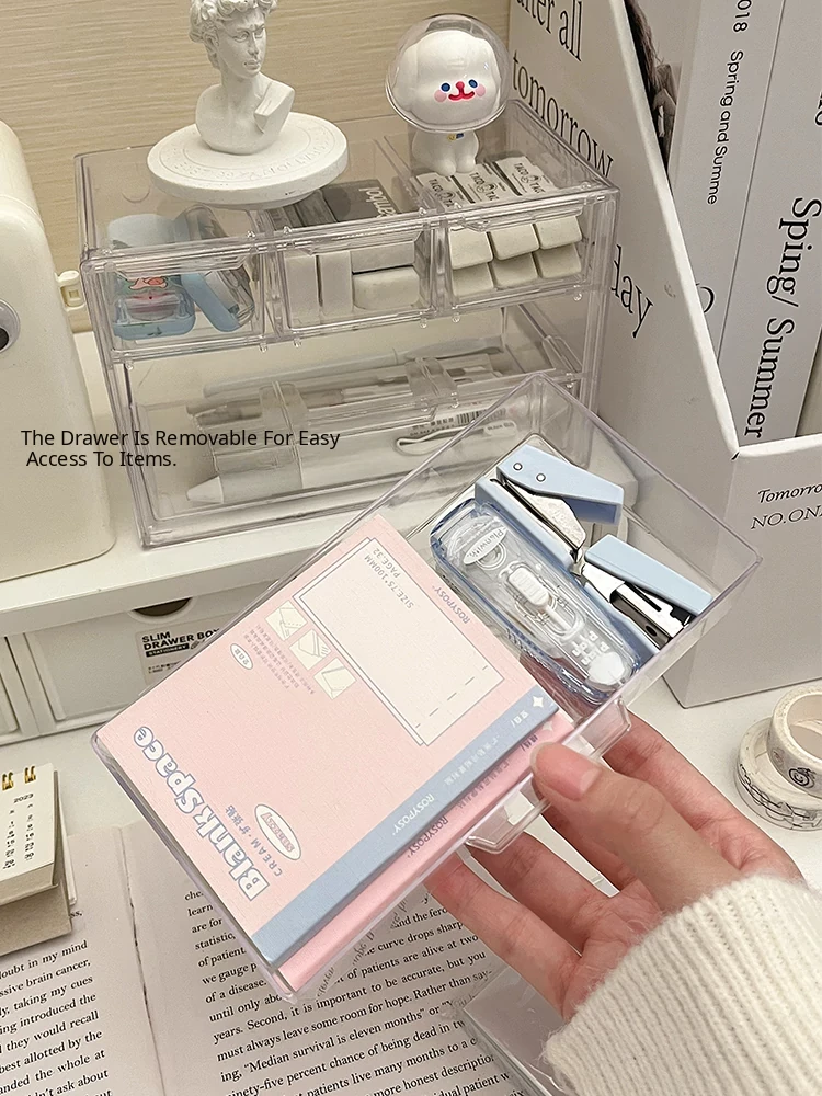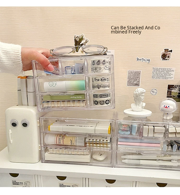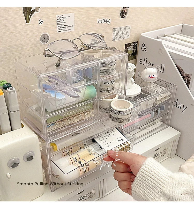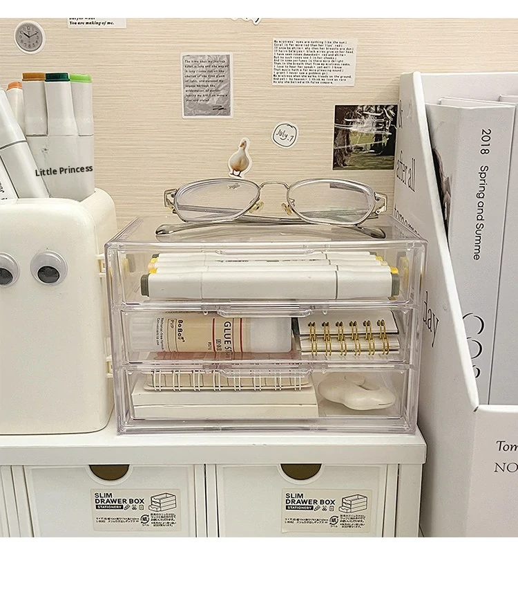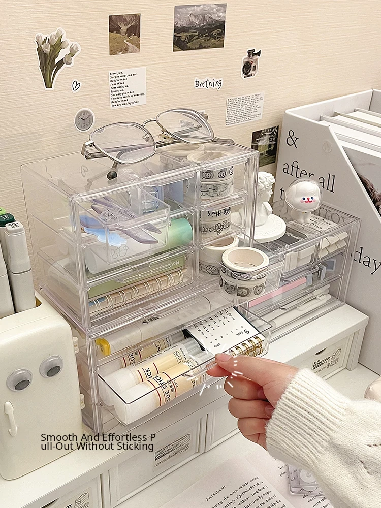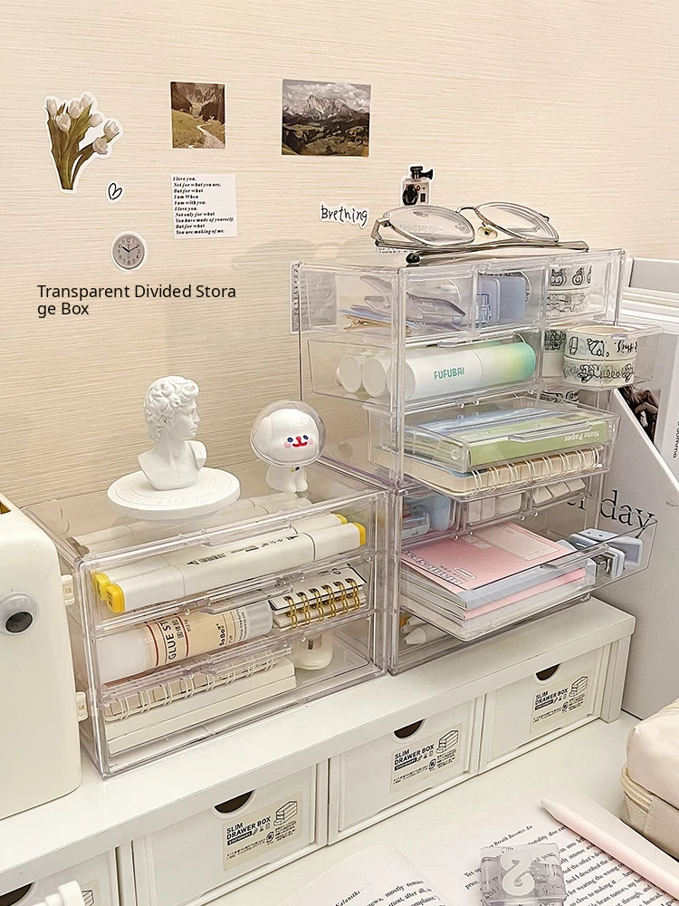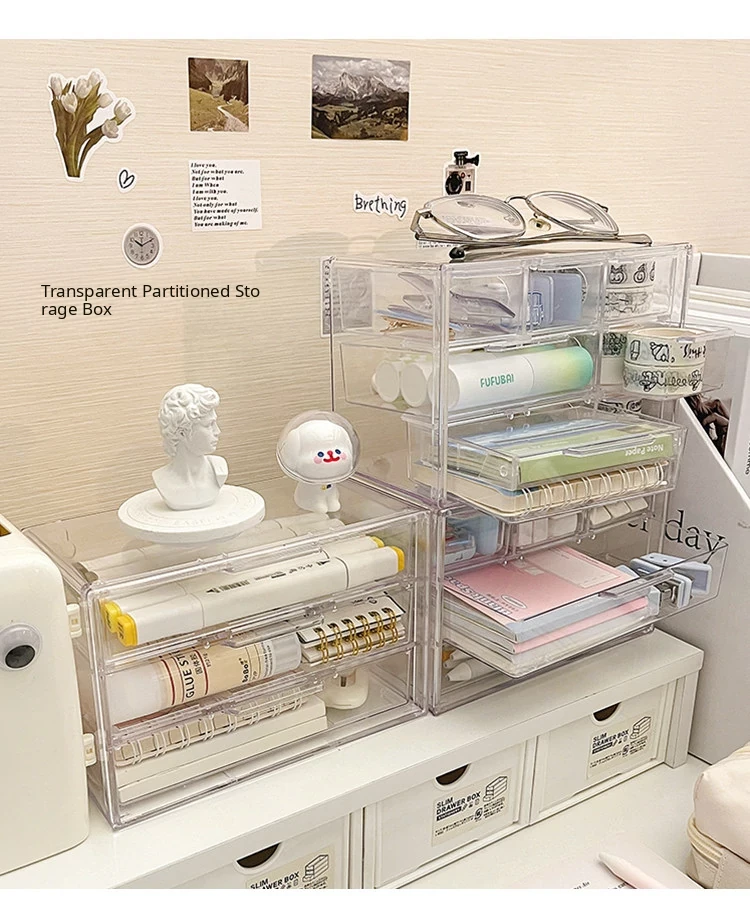 Transparent Multi-Layer Drawer Organizer - Versatile Storage Box for Cosmetics, Stationery, and Miscellaneous Items - Perfect for Student Dorms and Home Organization