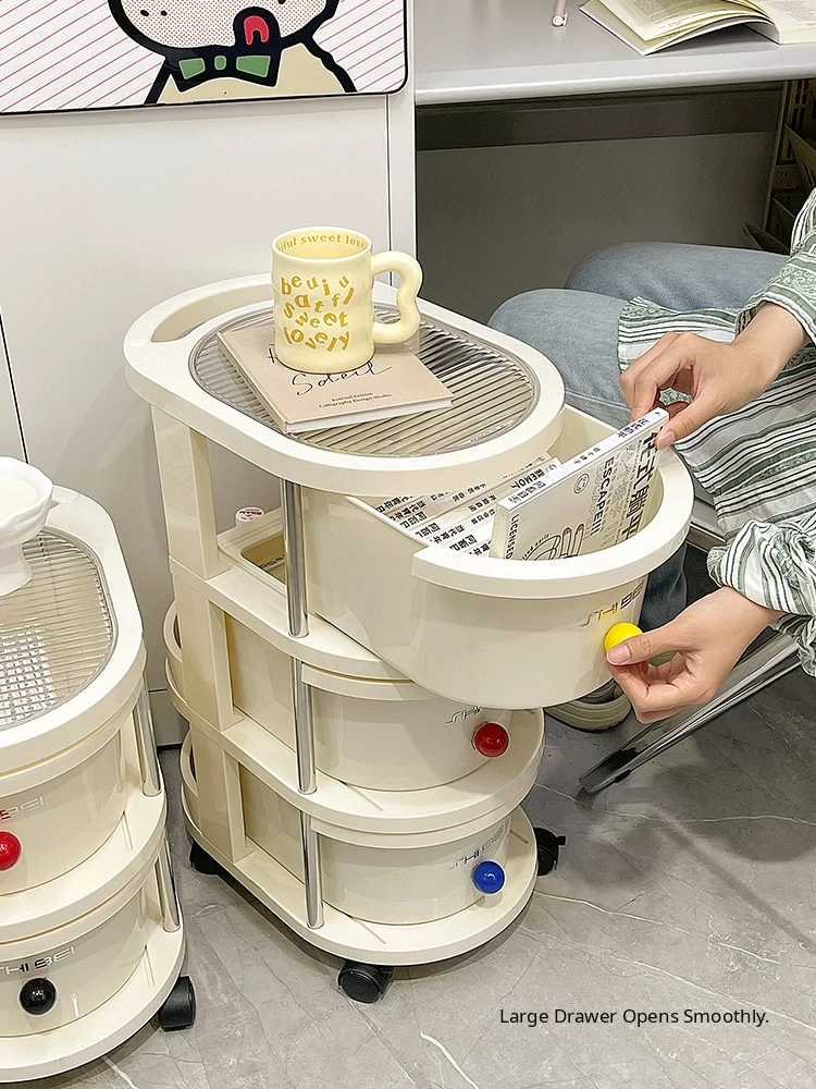 Versatile Under-Desk Cart: Mobile Double-Layer Storage Rack for Snacks, Cosmetics, and Books - Perfect Bedside Organizer!