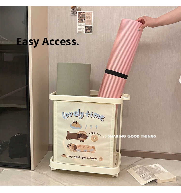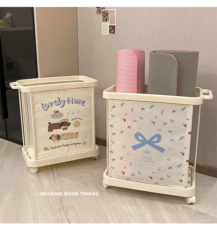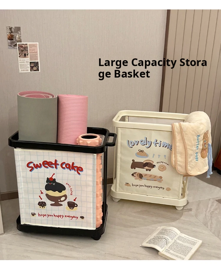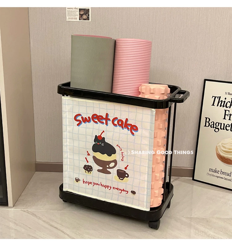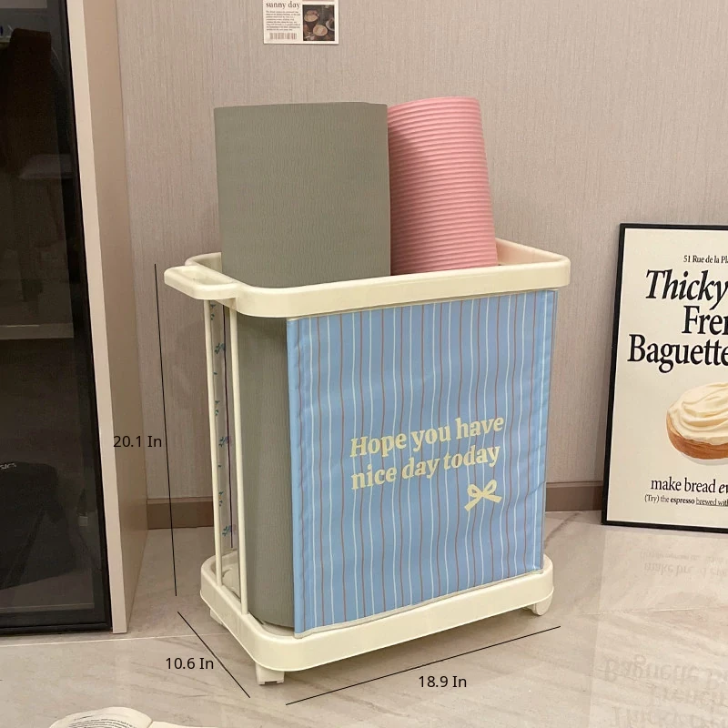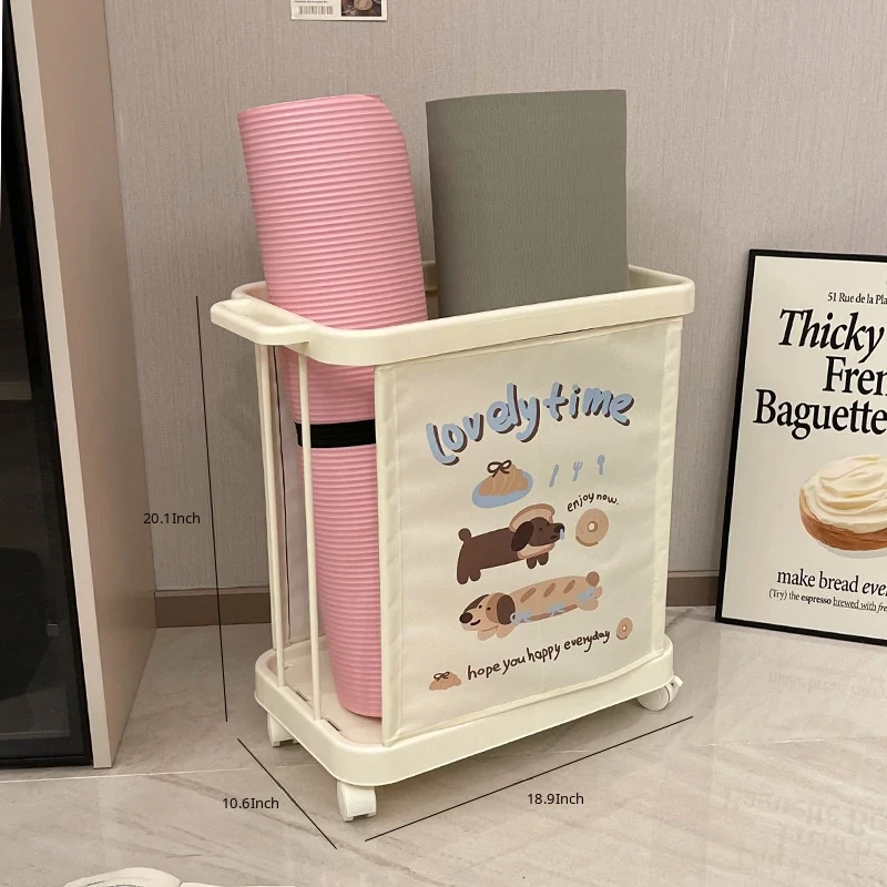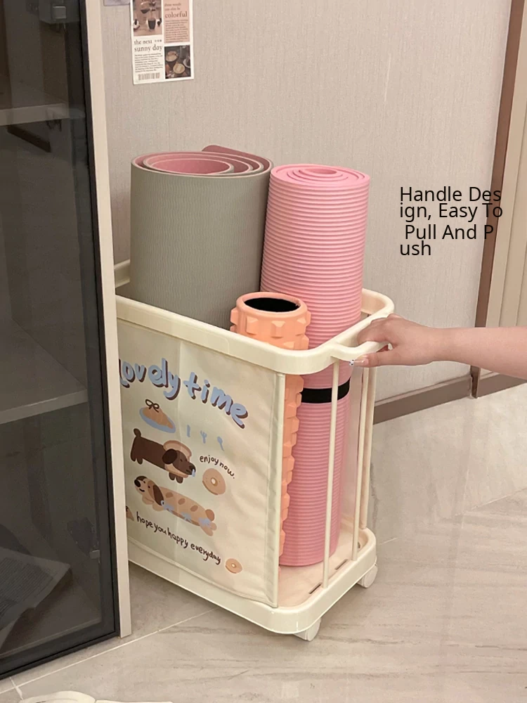 Versatile Yoga Mat Storage Basket with Wheels - Home Fitness Equipment Organizer for Sports Gear, Including Basketball Accessories - Perfect Solution for Clutter-Free Workouts!