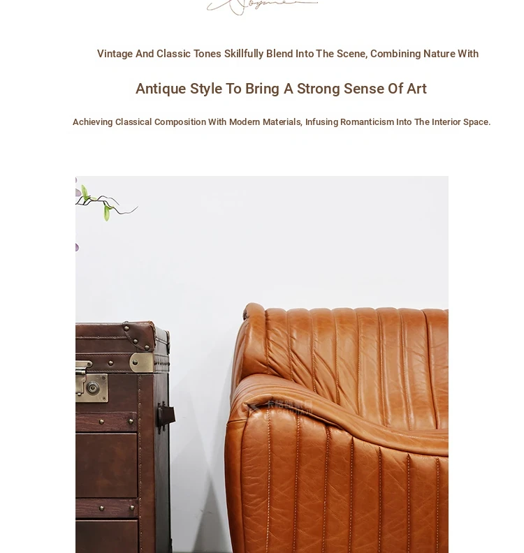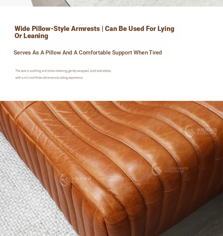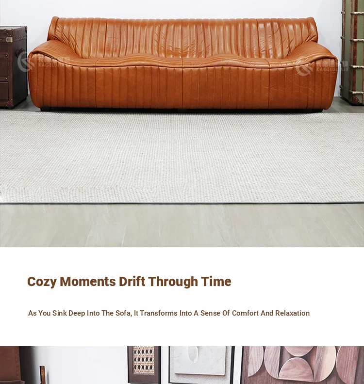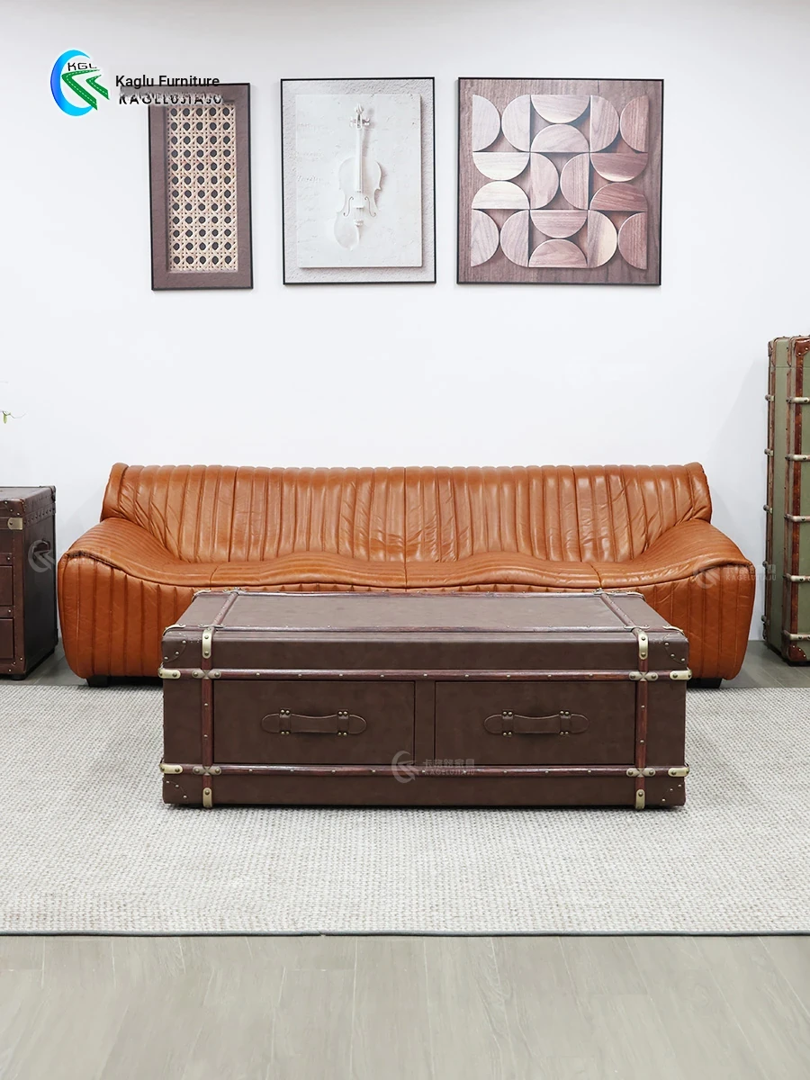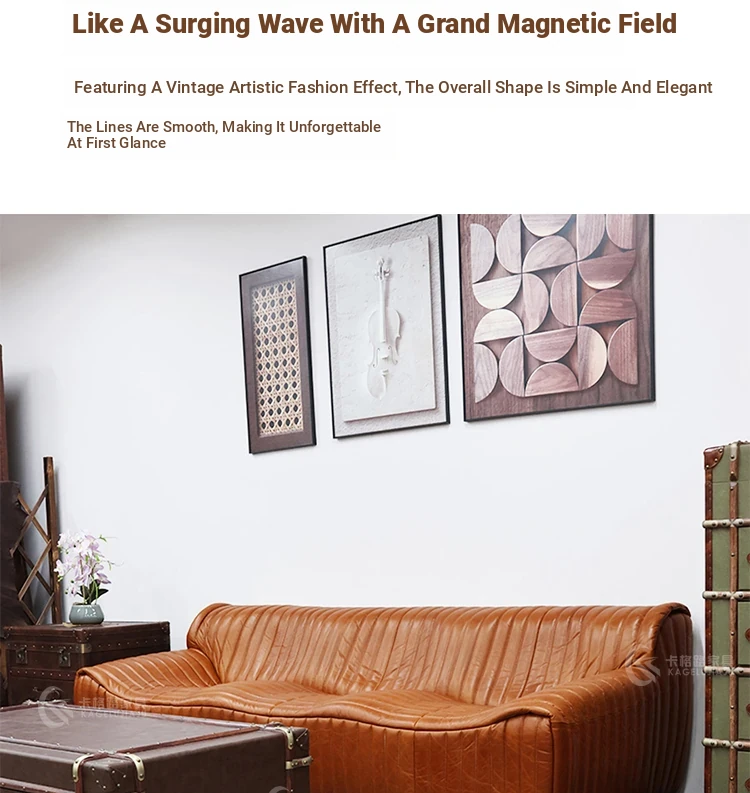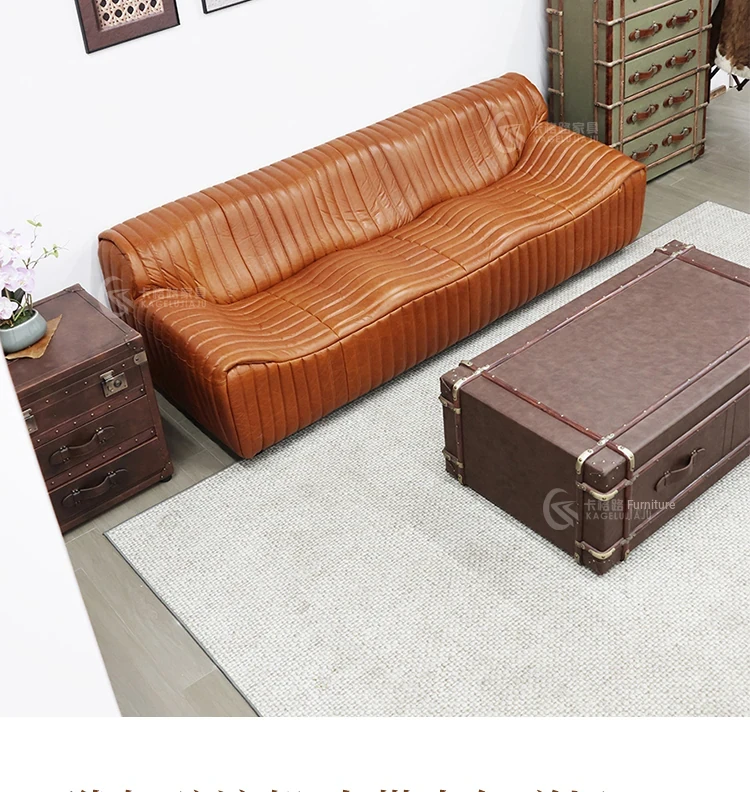 Vintage Leather Sofa - American Waxed Leather Designer Three-Seater with Wave Design - Retro Style Genuine Leather Couch for a Timeless Living Room Experience