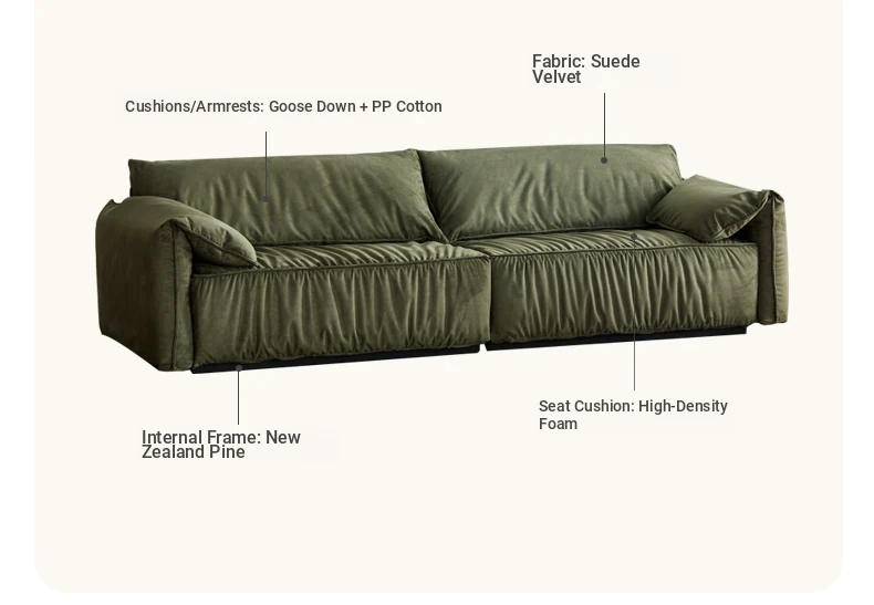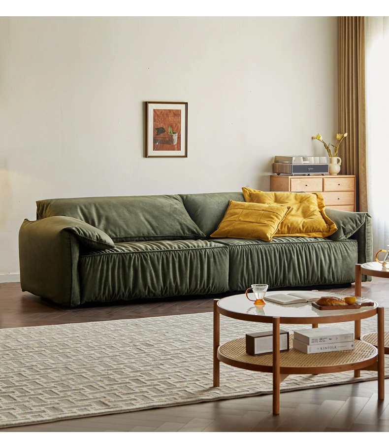 VISA Elegant Italian Velvet Sofa for Modern Living Rooms - Luxurious Suede Fabric with Cozy Elephant Ear Design, Perfect for Compact Spaces