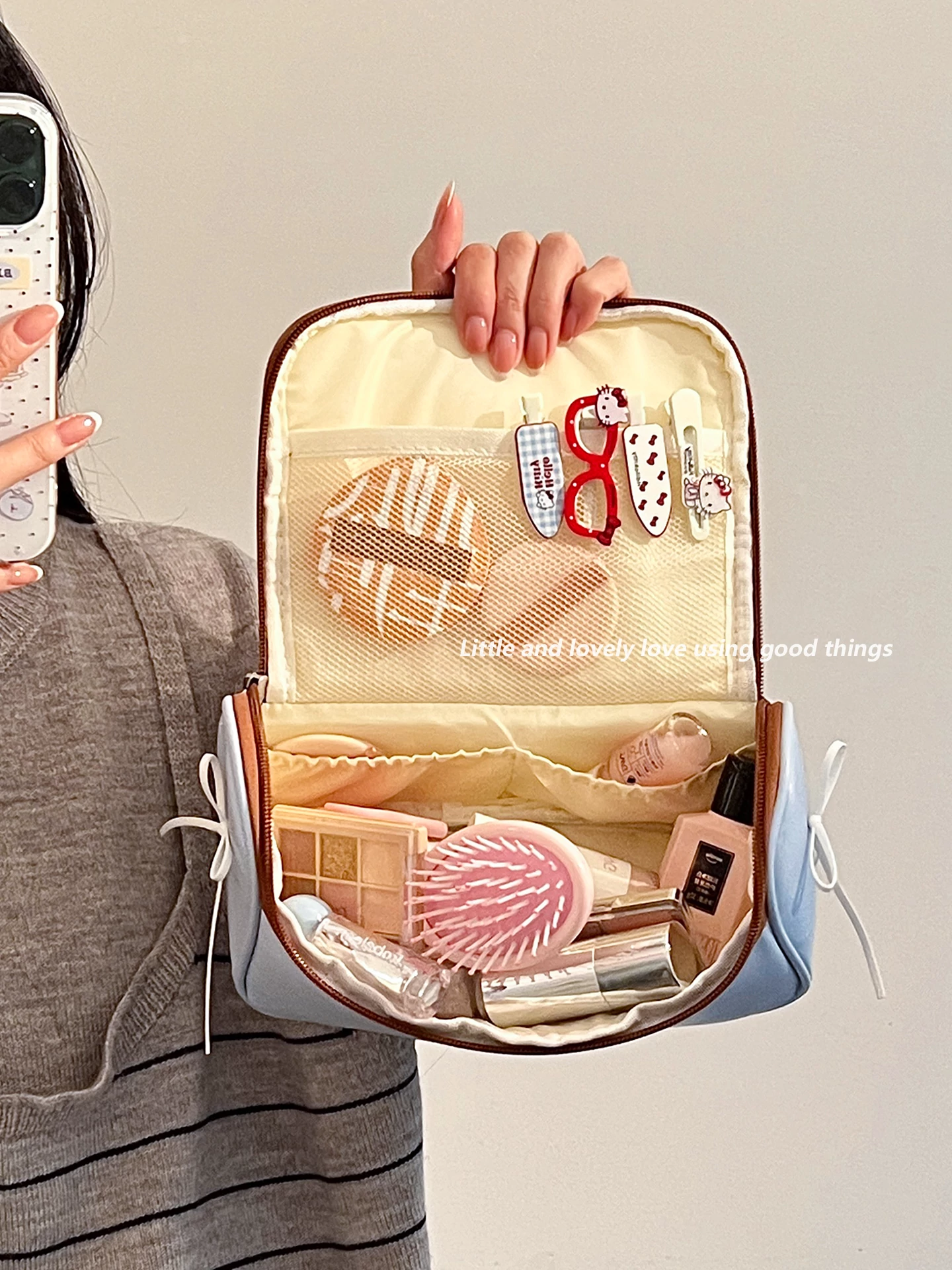 Large Size - Lace Pink and Blue [Super Large Capacity, Partitioned Storage]