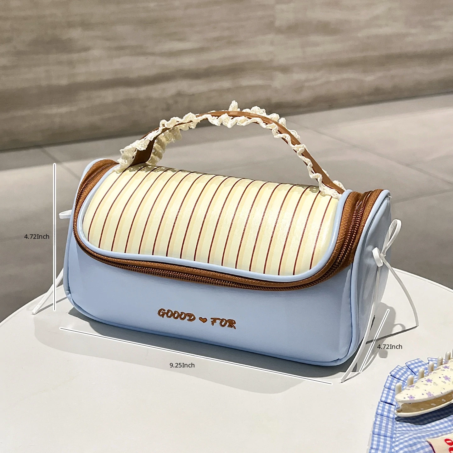 Large Size - Lace Blue Coffee [Super Large Capacity, Partitioned Storage]