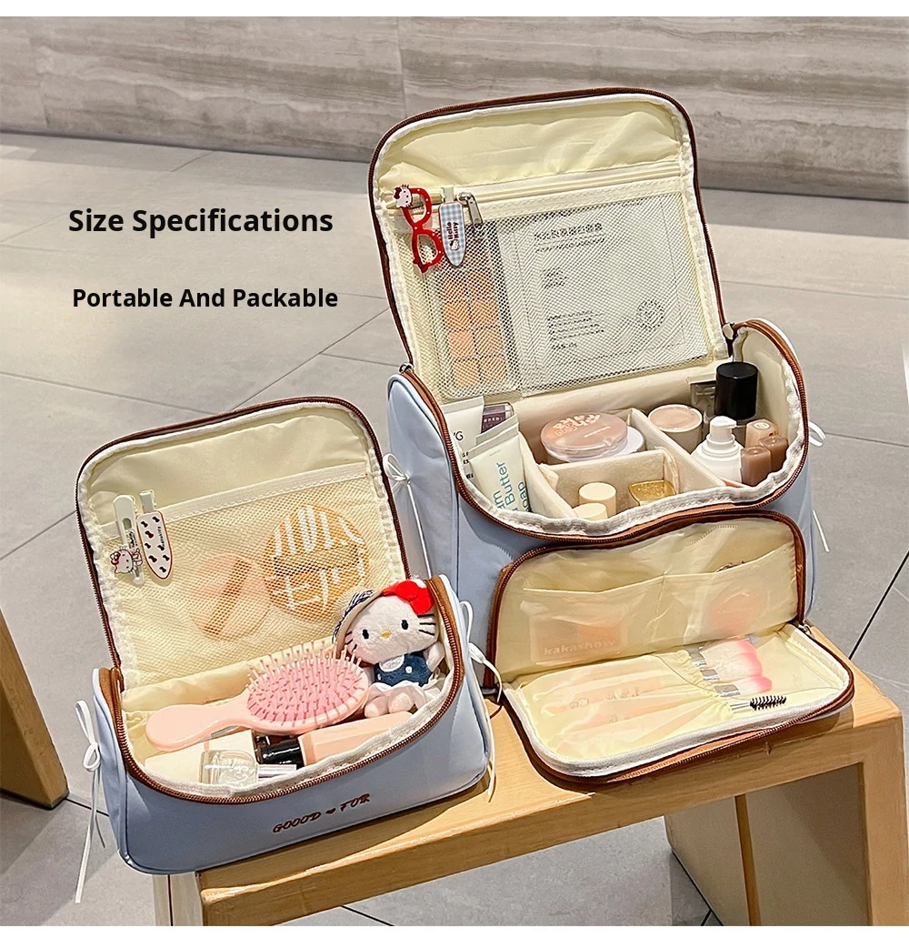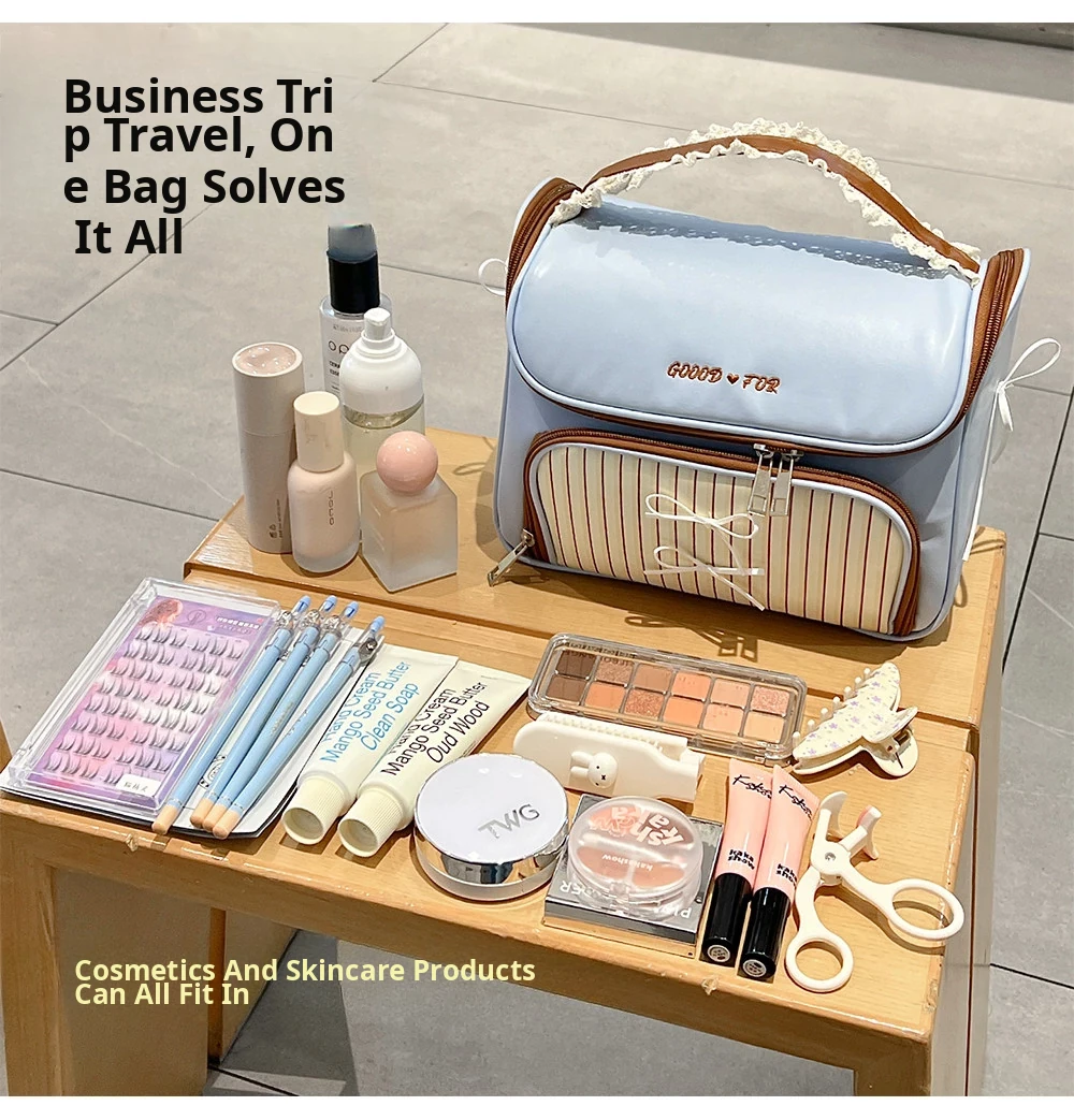 Waterproof Large Capacity Mini Makeup Bag for Women - Portable Travel Organizer with Divided Sections for Toiletries and Skincare Essentials