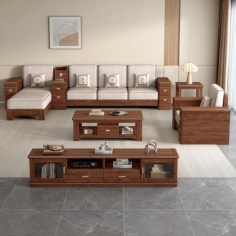 [Black Walnut] 2+3 + tea table + TV cabinet
