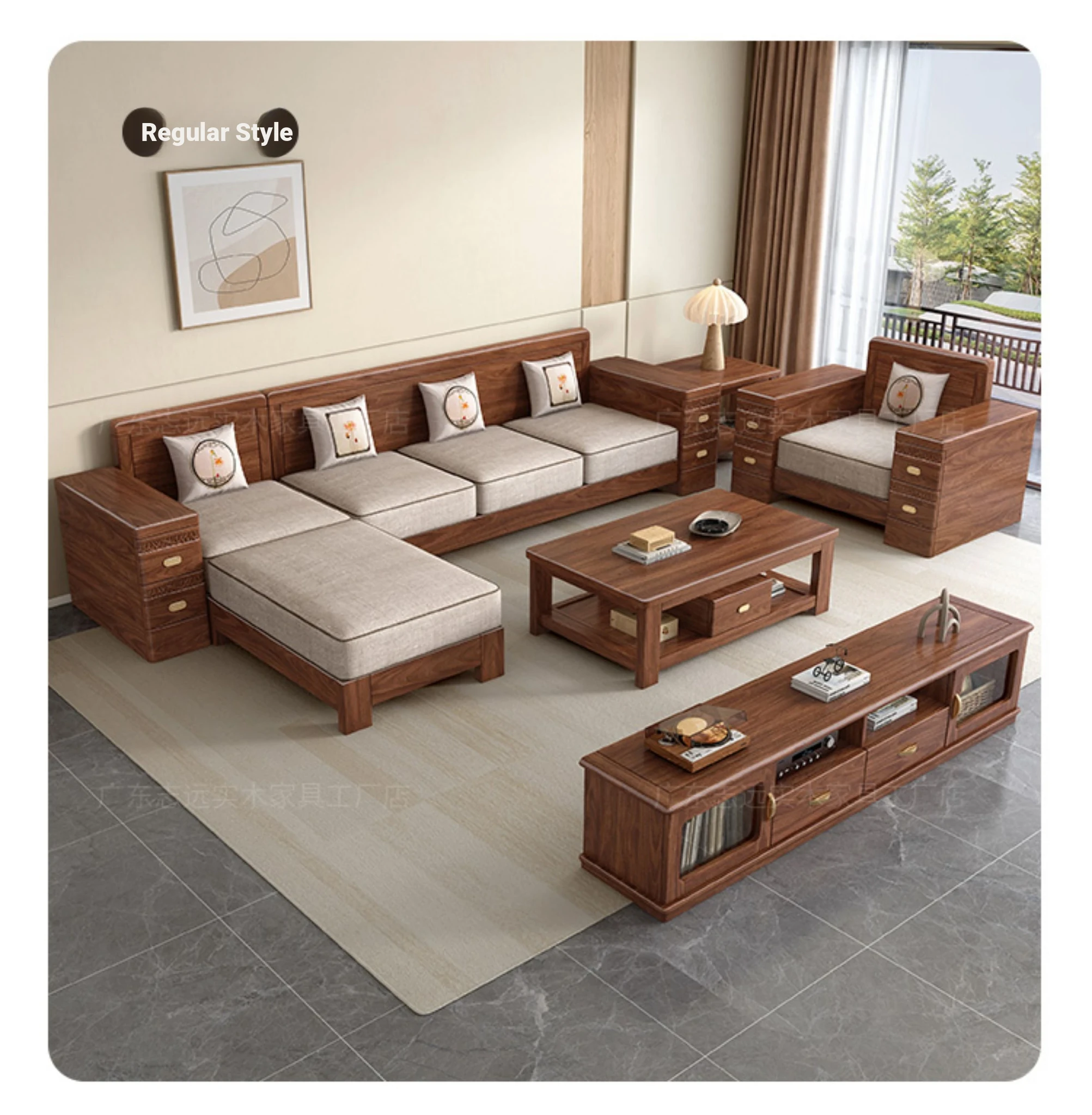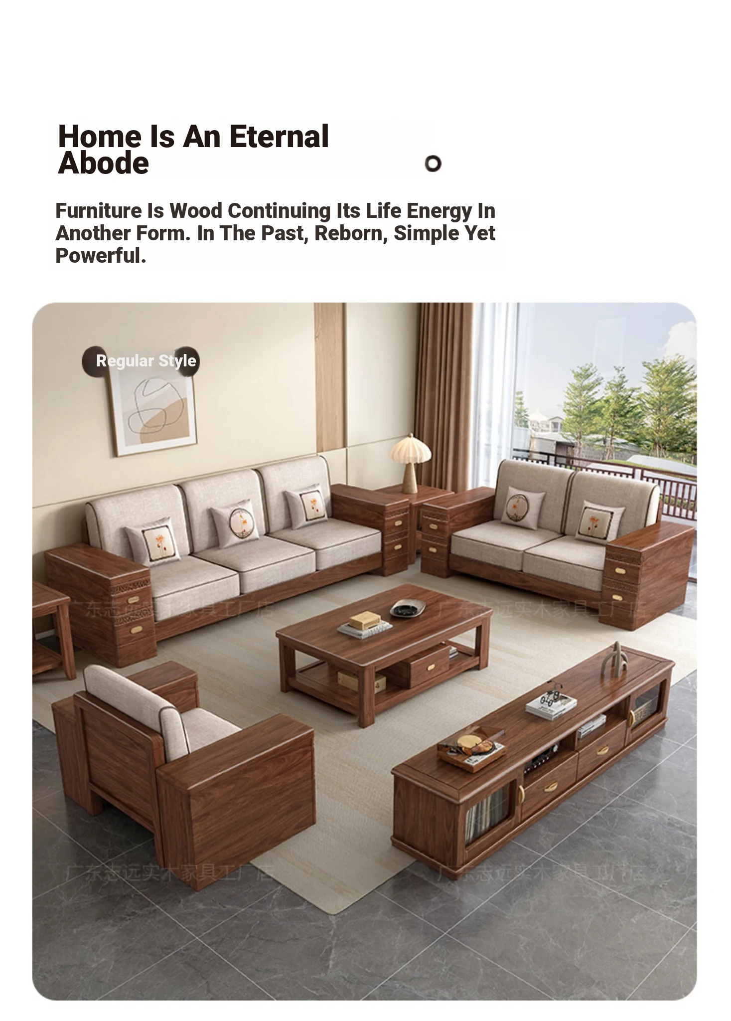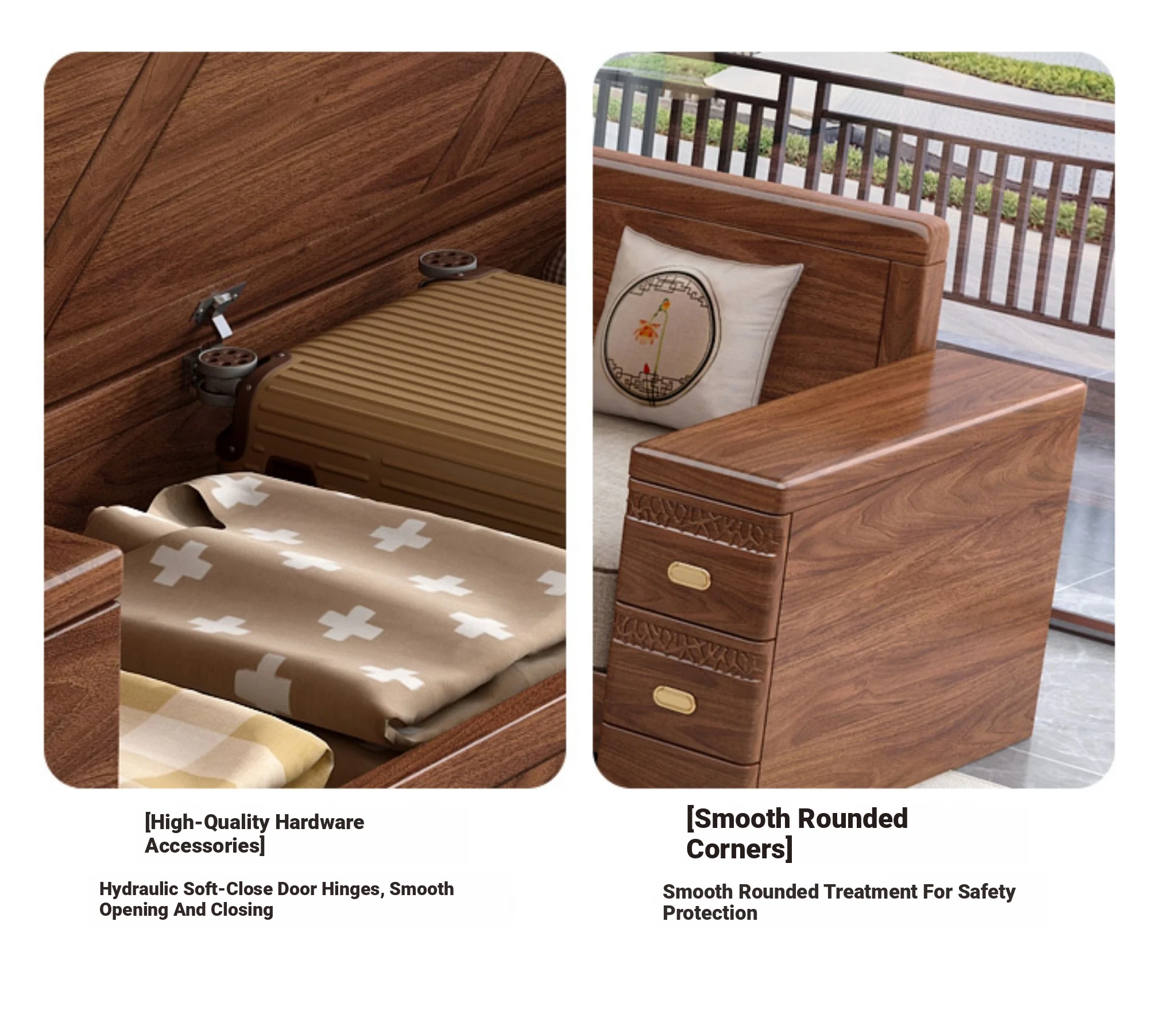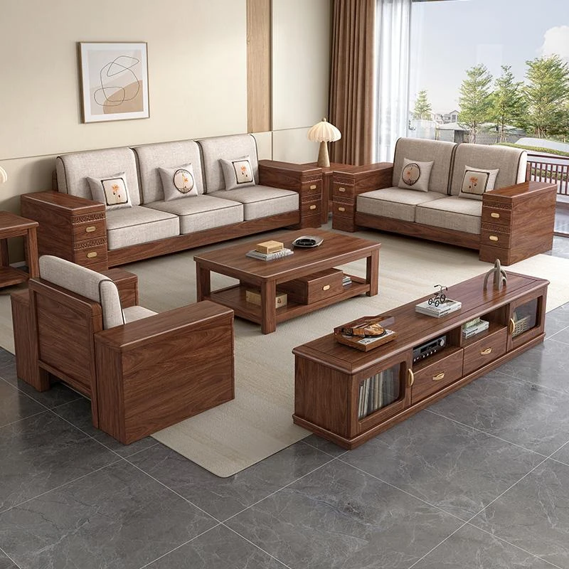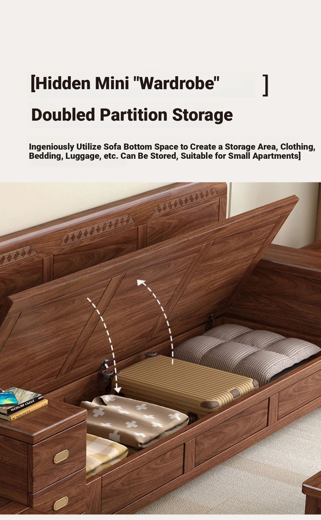 Zhi Yuan Furniture New Chinese Style Solid Wood Thick Sofa in Black Walnut - Versatile Chaise Lounge for All Seasons, Perfect for Small and Large Living Rooms