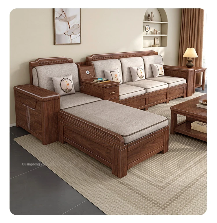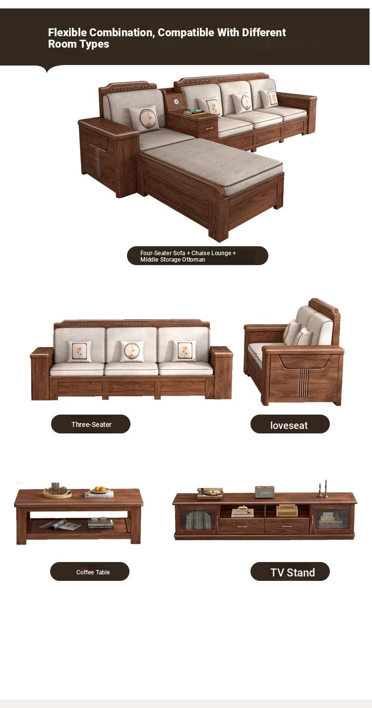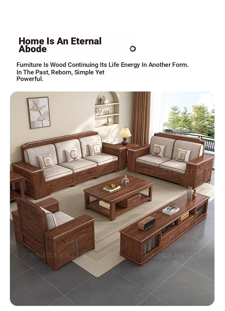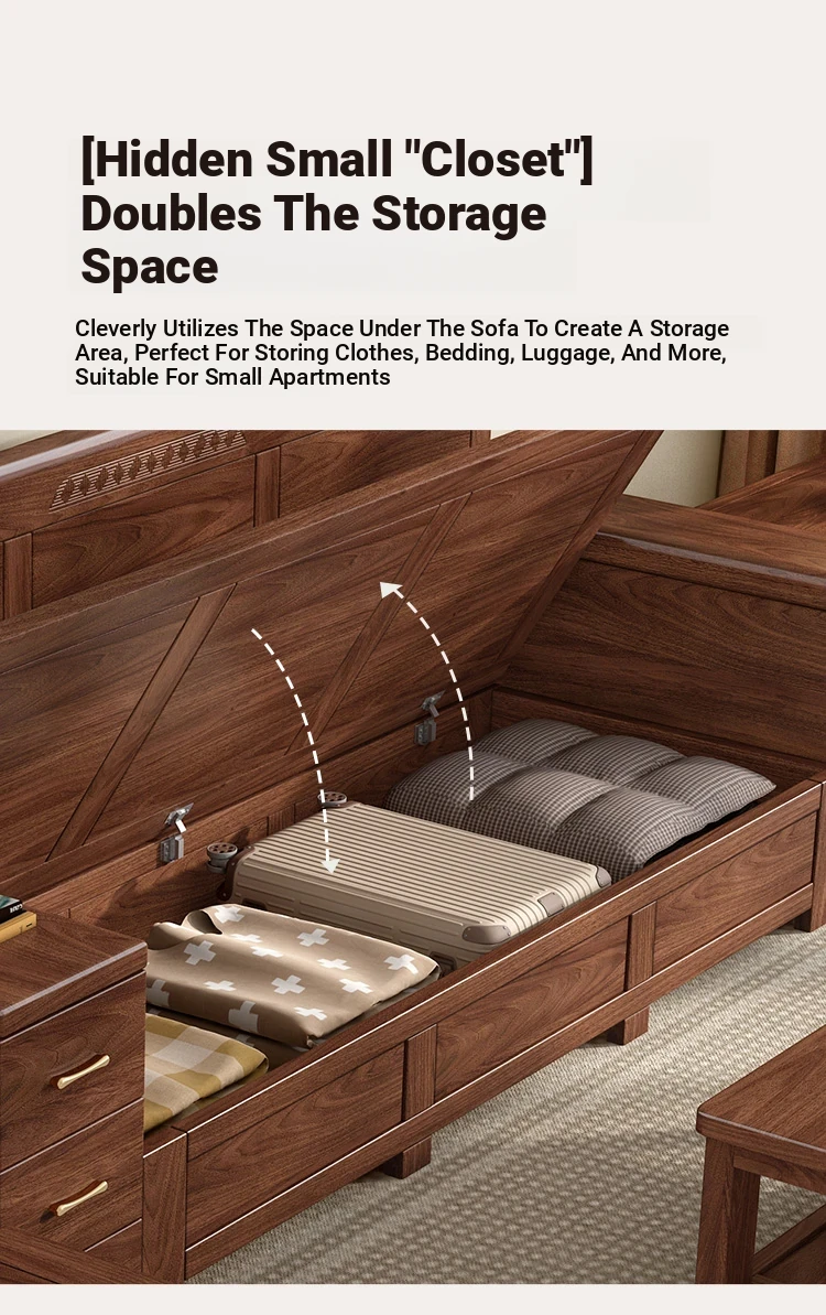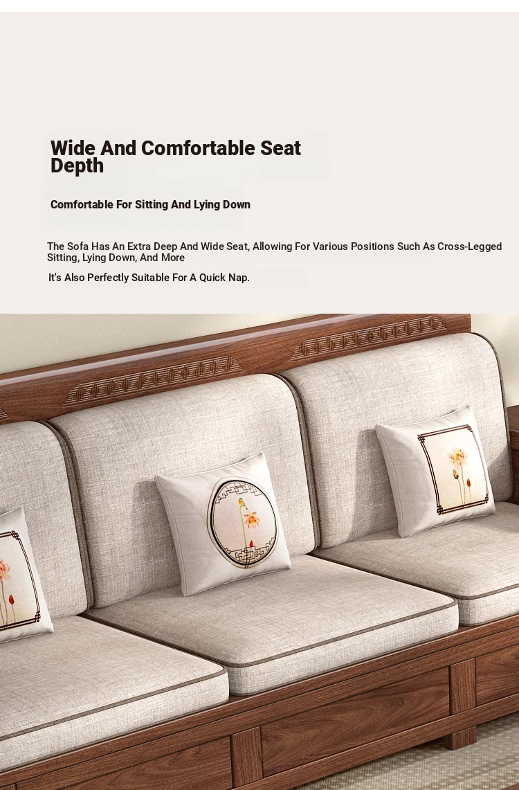 Zhi Yuan Solid Wood Sofa for Living Room - 2025 New Model, Dual-Season Design, Storage High-Box, Perfect for Small Spaces