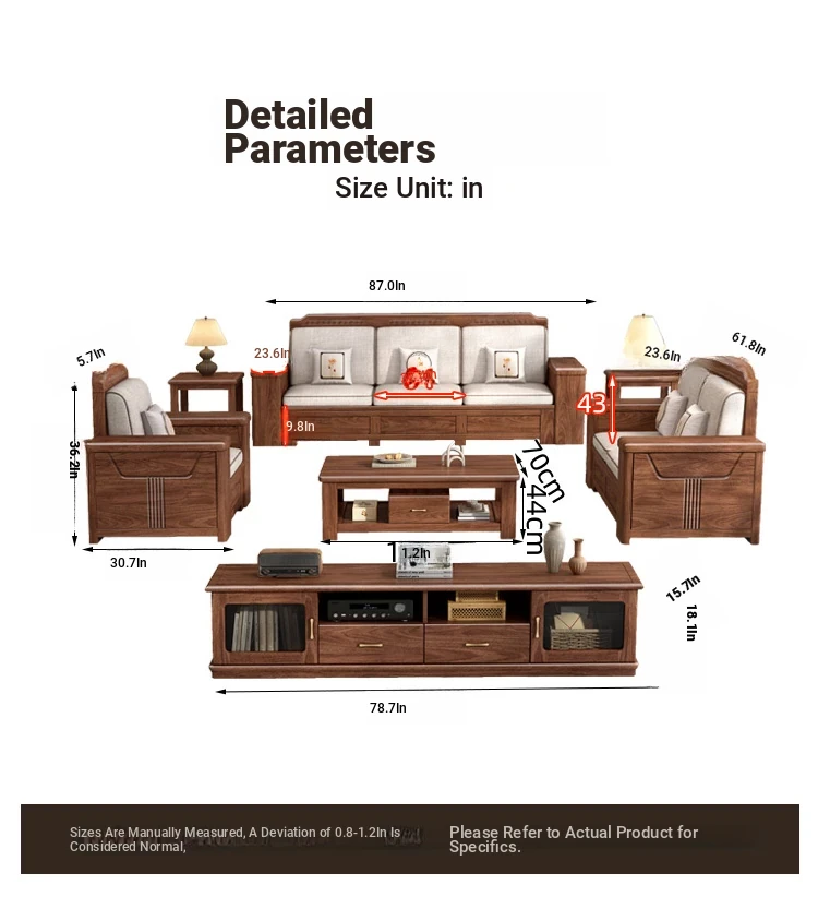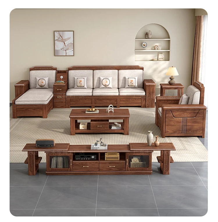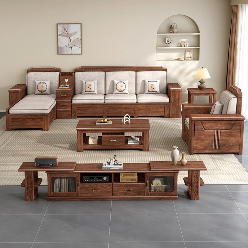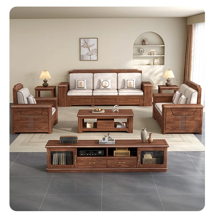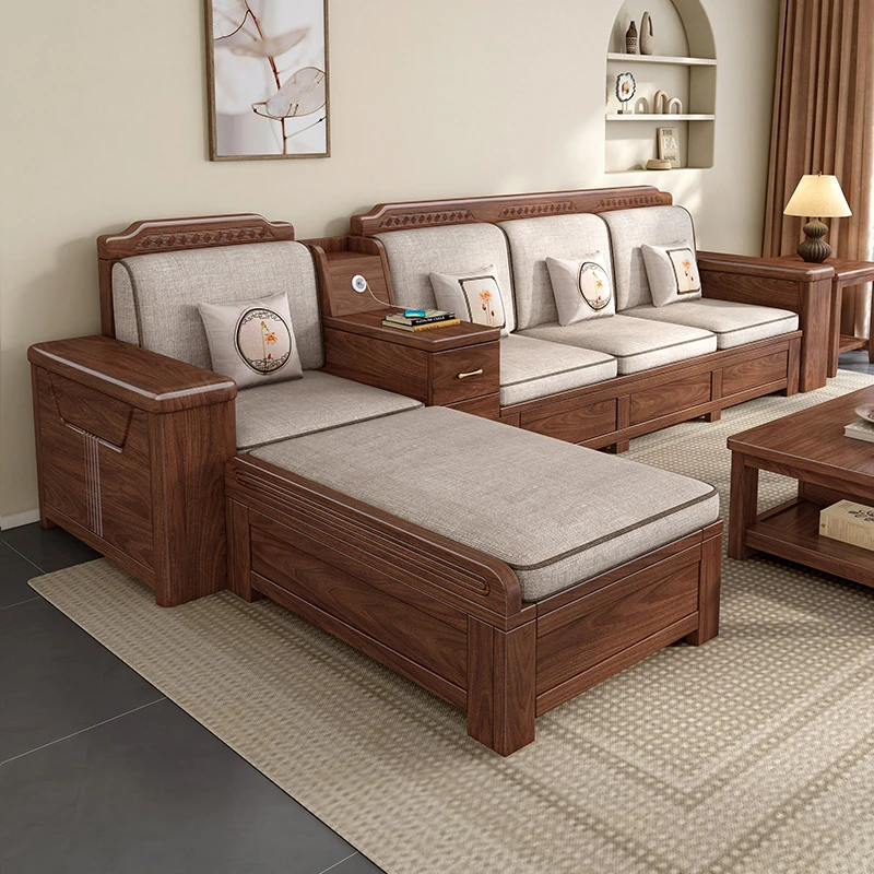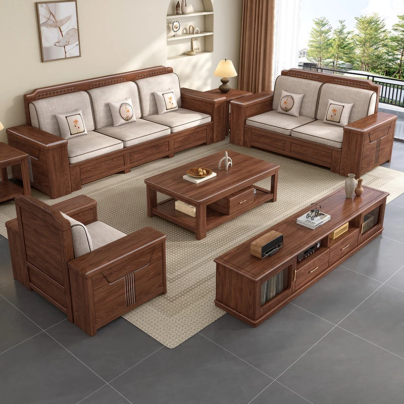 Zhi Yuan Solid Wood Sofa for Living Room - 2025 New Model, Dual-Season Design, Storage High-Box, Perfect for Small Spaces