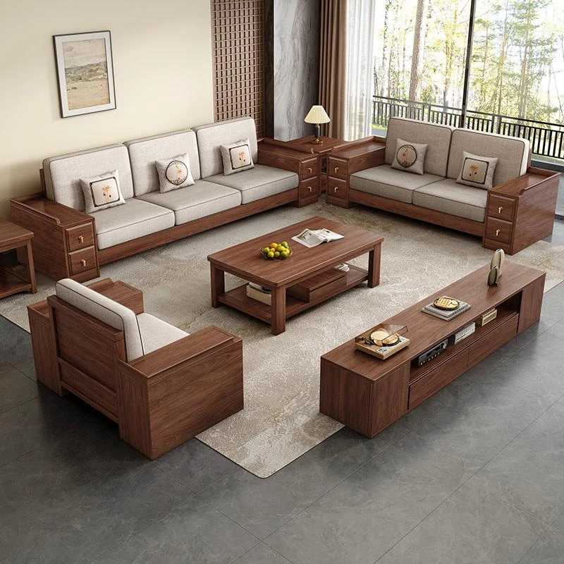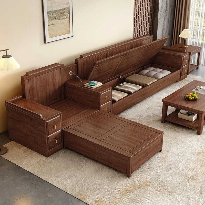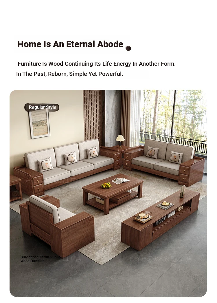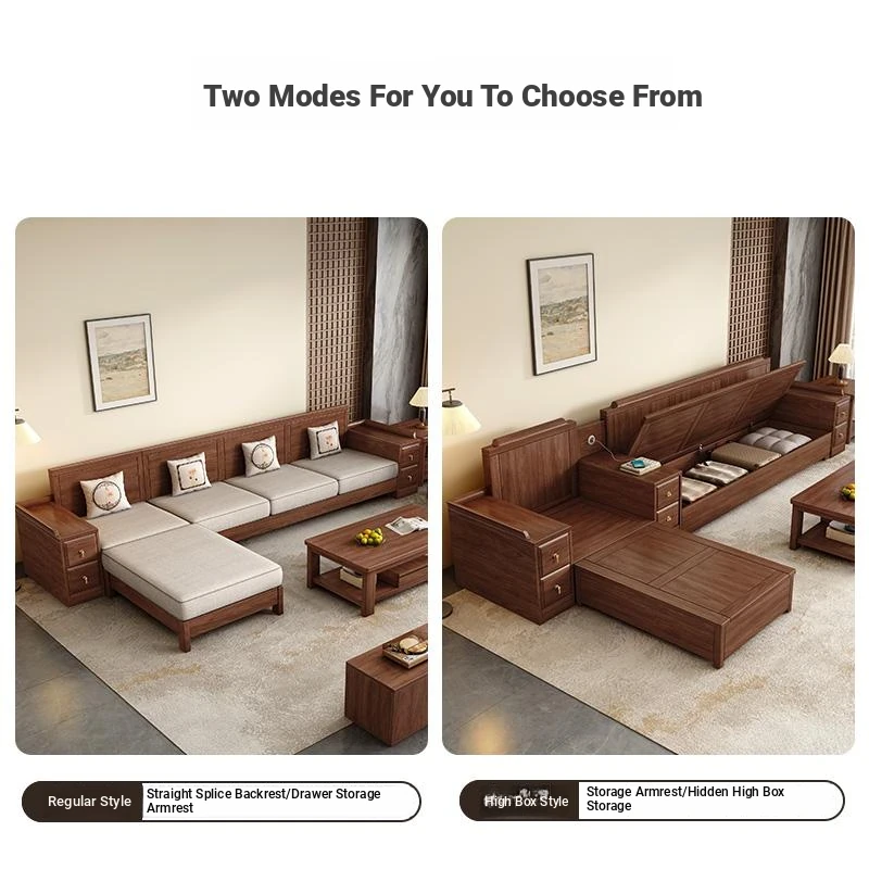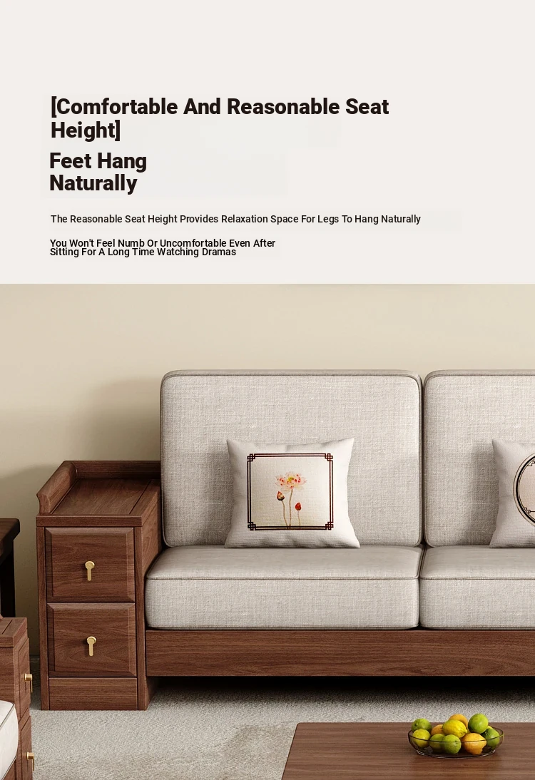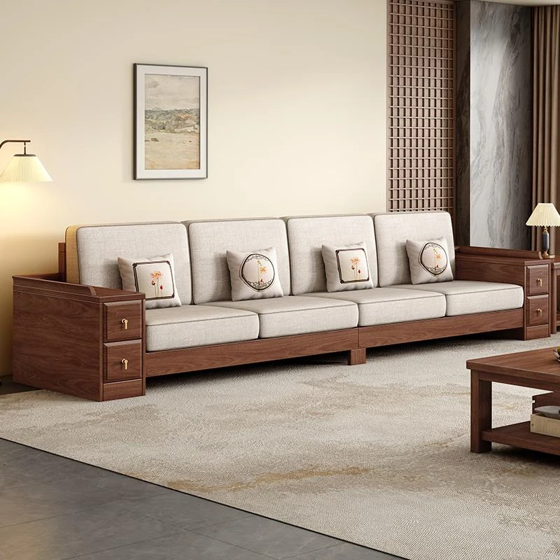 ZhiYuan Solid Black Walnut Wood Storage Sofa Set - Elegant New Chinese Style for Spacious and Cozy Living Rooms, Perfect for Large, Medium, and Small Spaces