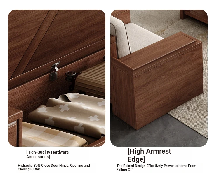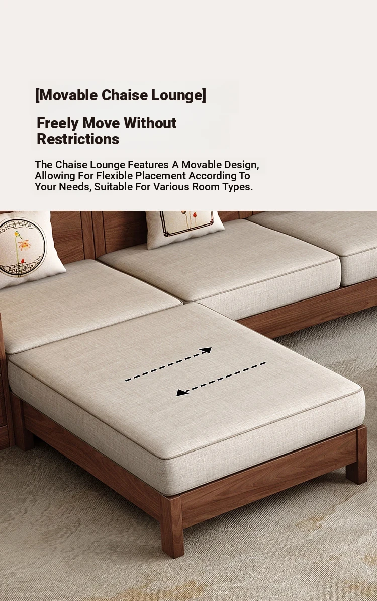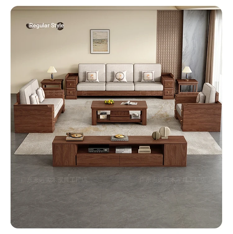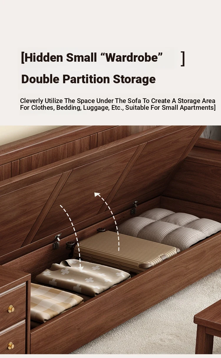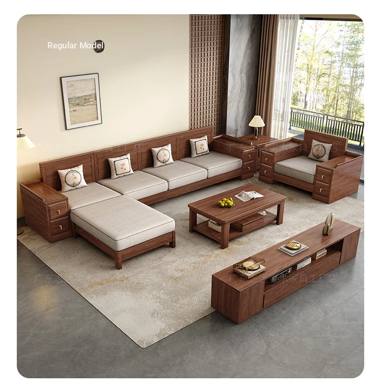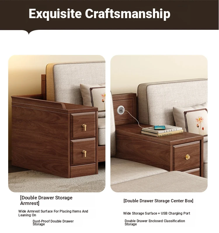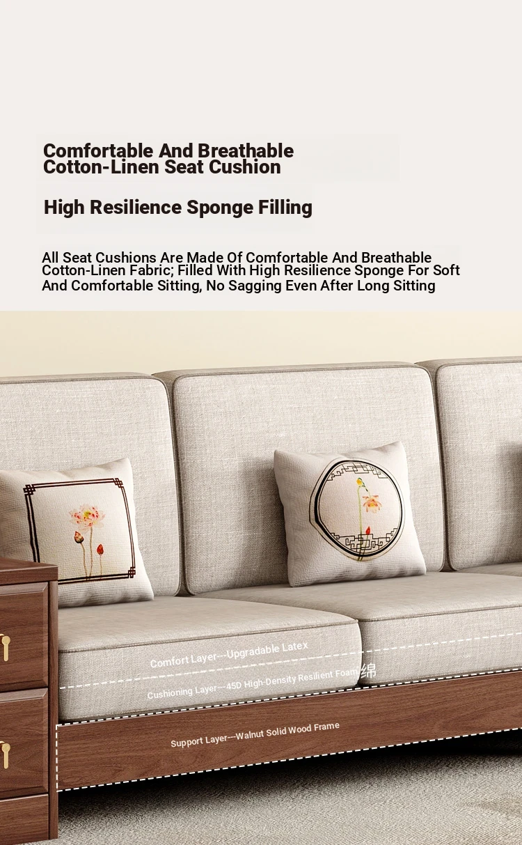 ZhiYuan Solid Black Walnut Wood Storage Sofa Set - Elegant New Chinese Style for Spacious and Cozy Living Rooms, Perfect for Large, Medium, and Small Spaces