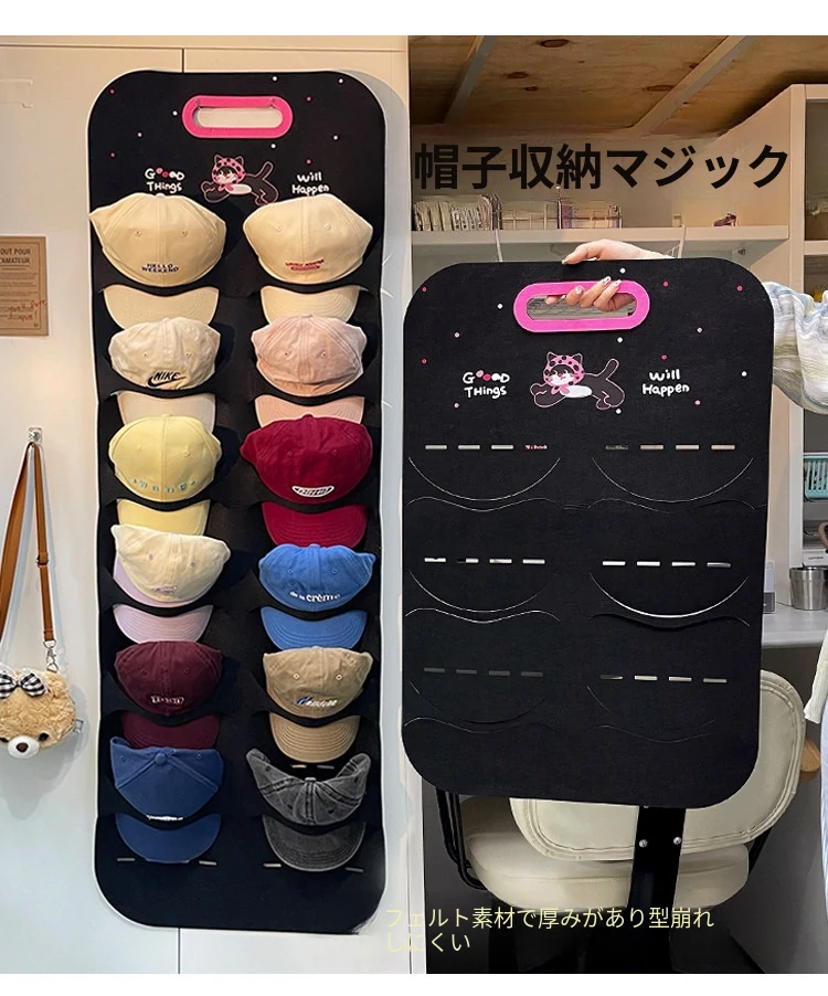 帽子収納のマジック!フェルト製ハンガーラック2024年新作、家庭用の野球帽収納フックで衣類の整理も簡単!おしゃれで便利な収納アイテムで、あなたのクローゼットをスッキリ整頓!