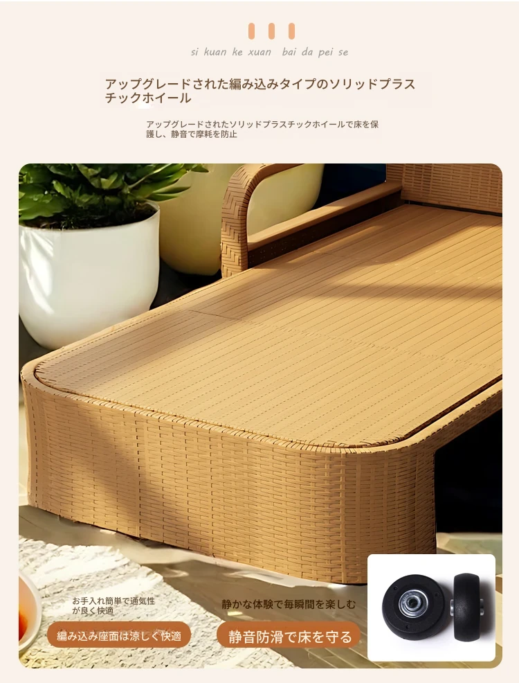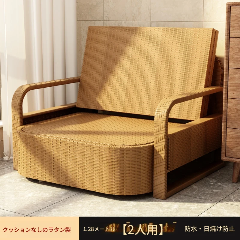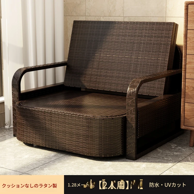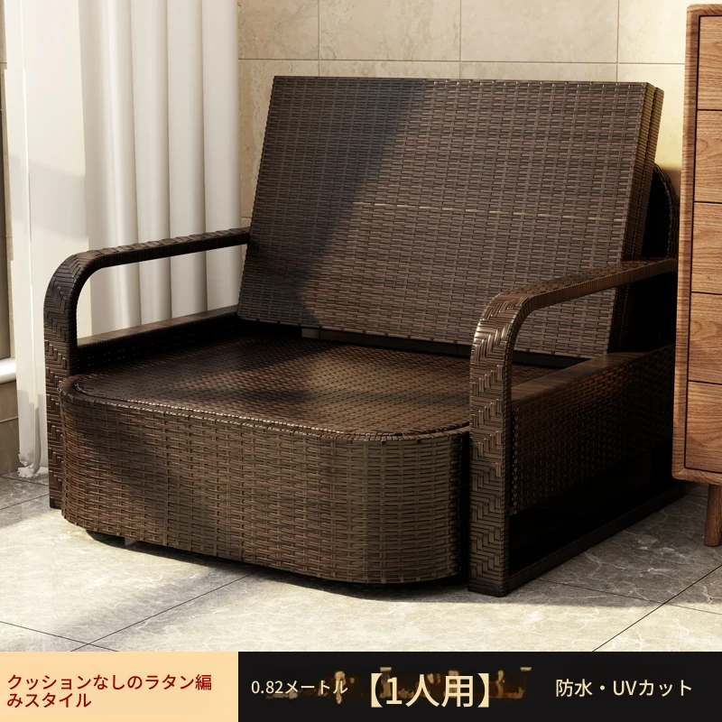 【0.82メートルラタン編みタイプ】クッションなし-ブラウン【収納可】