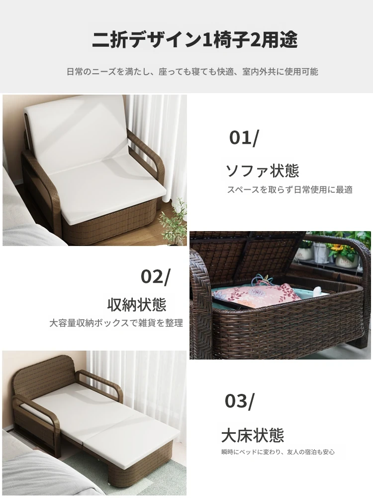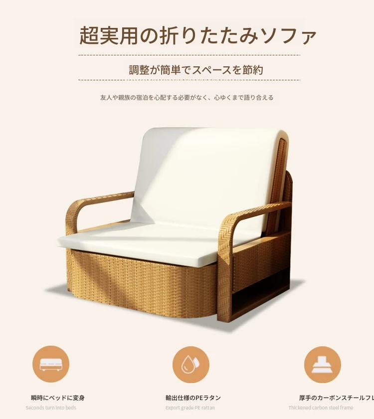 2024年新作!多機能ソファベッド - 折りたたみ式一人掛け椅子、バルコニーや小型オフィスにも最適!伸縮式でスペースを有効活用、スタイリッシュなリビングを演出します。