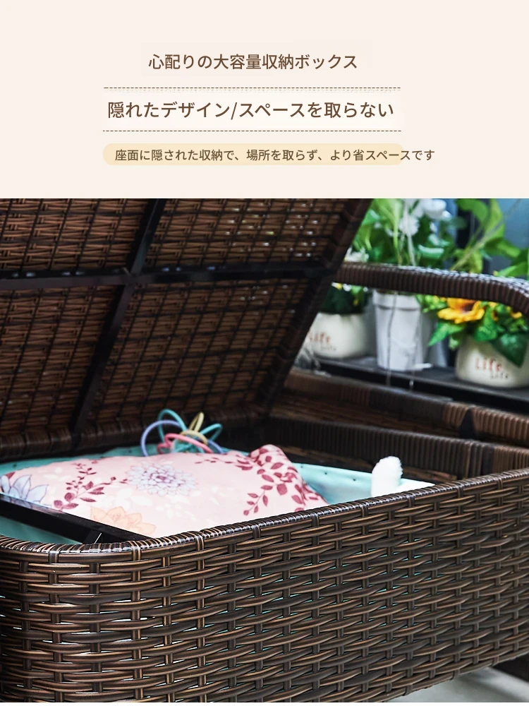 【0.82メートルラタン編みタイプ】クッション付き-ブラウン【収納可】