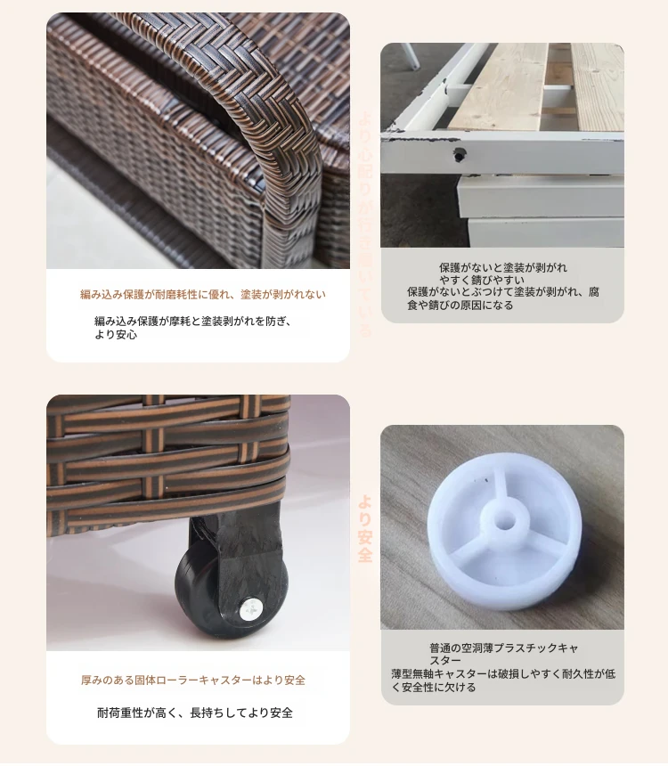 【1.28メートルラタン編みタイプ】クッションなし-ブラウン【収納可】