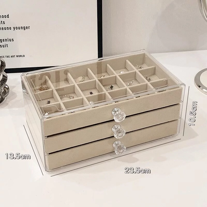 【三層18格】フリースジュエリー収納ボックス - フリースジュエリー収納ボックス - ベージュ