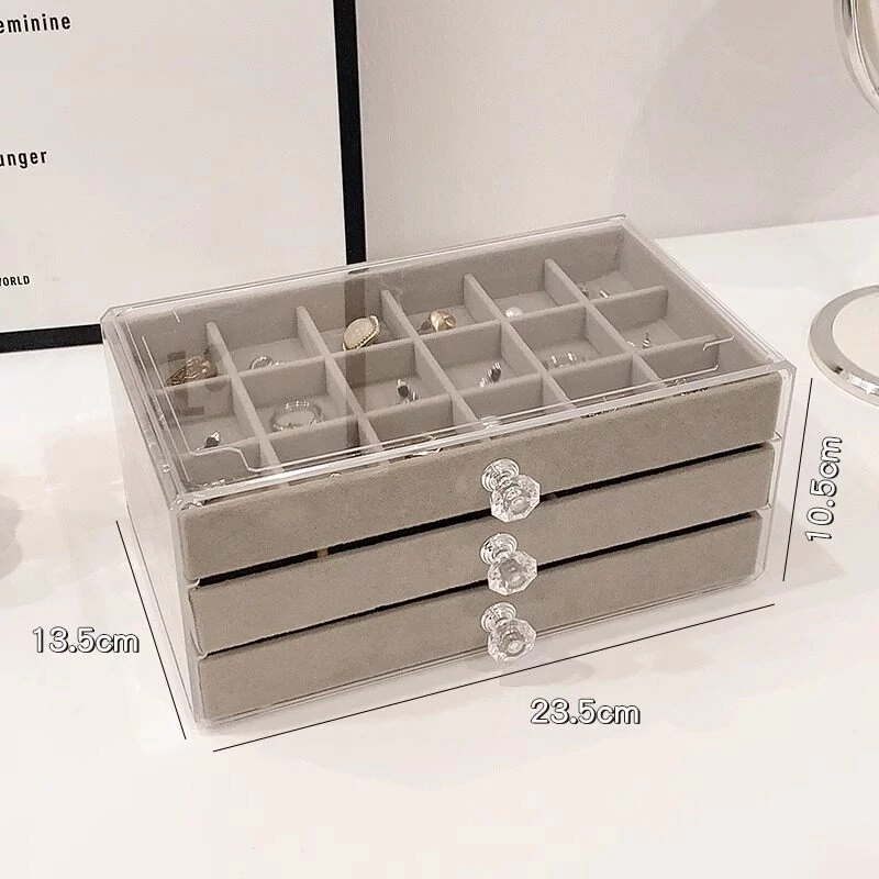 【三層18格】フリースジュエリー収納ボックス - フリースジュエリー収納ボックス - グレー