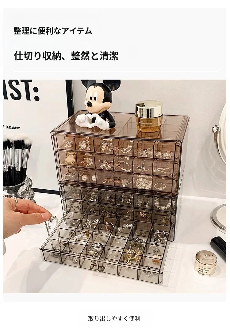 2024年新作!透明ジュエリーボックス - 大容量耳リング・ネックレス・スタッドピアス収納、ほこりから守るアクリルプラスチック製!おしゃれで実用的な収納アイテムで、あなたの宝物を美しく整理!