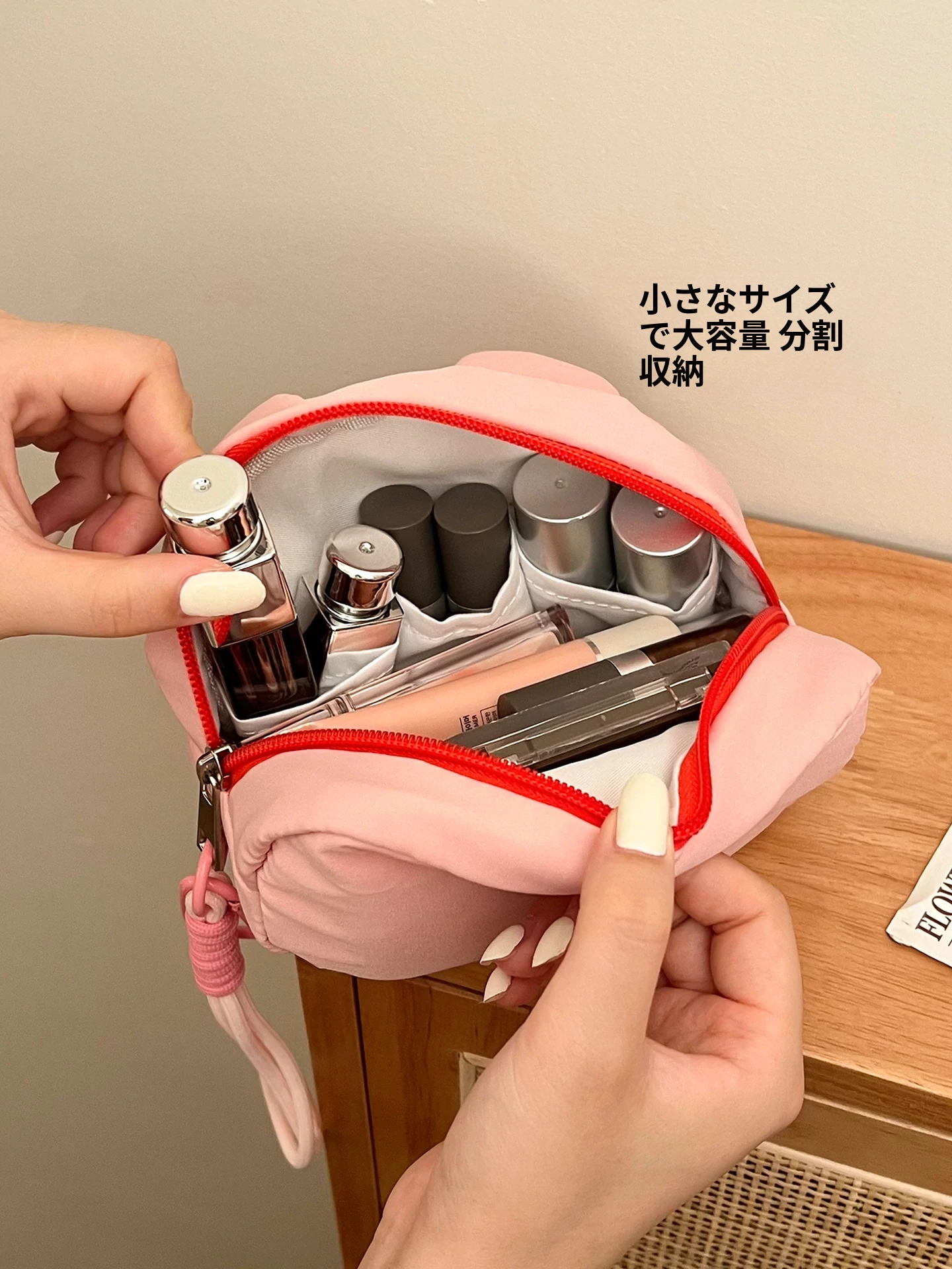 2025年新作!可愛いミニ旅行用化粧ポーチ - コンパクトで持ち運び便利、リップや小物を整理整頓できる分区デザイン!あなたの旅のお供にぴったり!