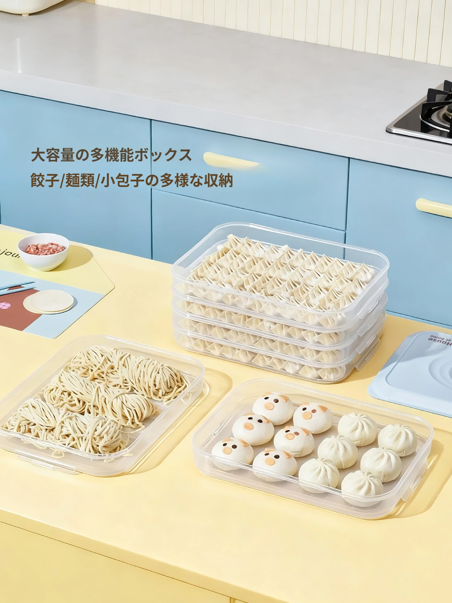 2025年新作!冷凍食品専用の餃子収納ボックス - 食品グレードの安全な素材で、麺やワンタンもOK!冷蔵庫でのスピーディーな冷凍分けに最適。美味しさをそのままキープ!