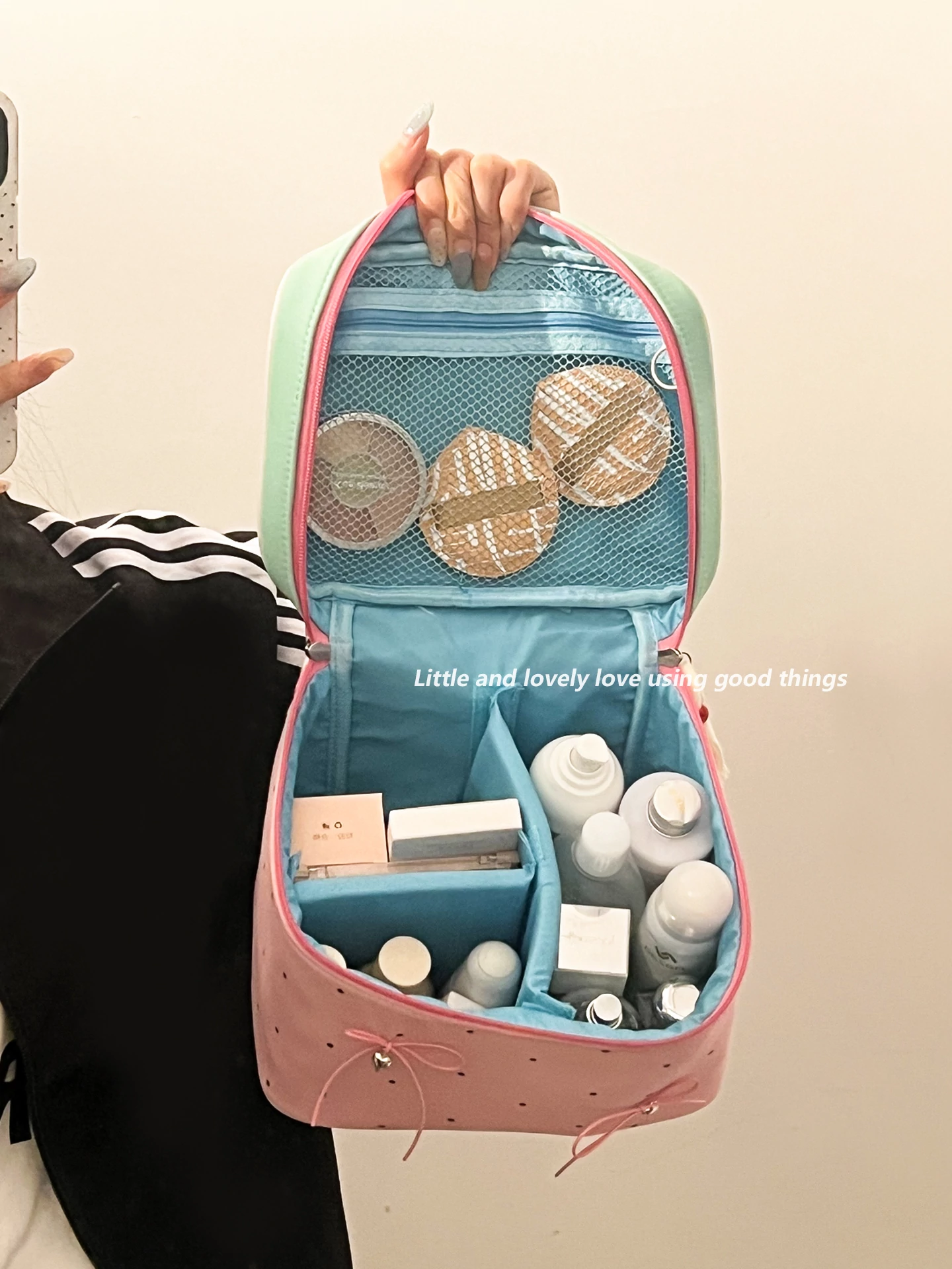 2025年新作!高級感あふれる大容量化粧ポーチ - 持ち運びに便利な旅行用スキンケア収納バッグ、分かりやすい仕切り付きで整理整頓も簡単!