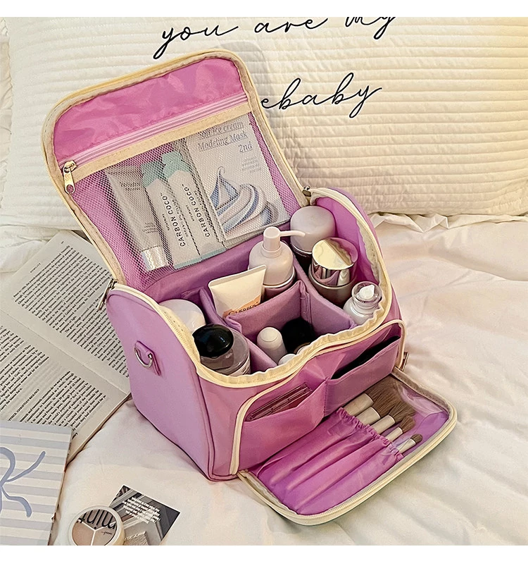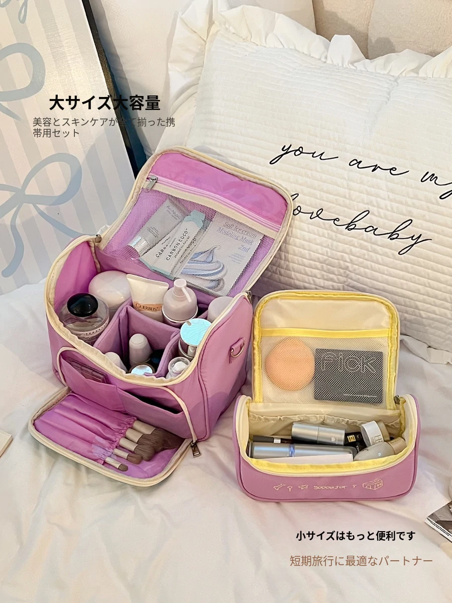 2025年新作!大容量化妆ポーチ - 高品質なスキンケア製品やブラシをしっかり収納!持ち運び便利な旅行用ハンドバッグ、女性のための洗面道具整理に最適!