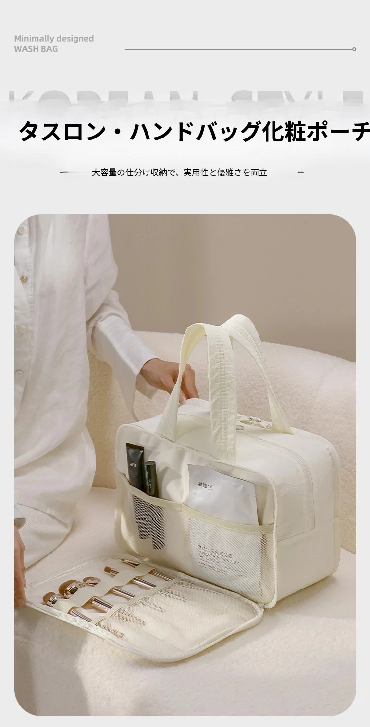 2025年新作!高級感あふれる大容量化粧ポーチ - 旅行に最適!持ち運び便利なブラシ&スキンケアアイテム収納バッグ