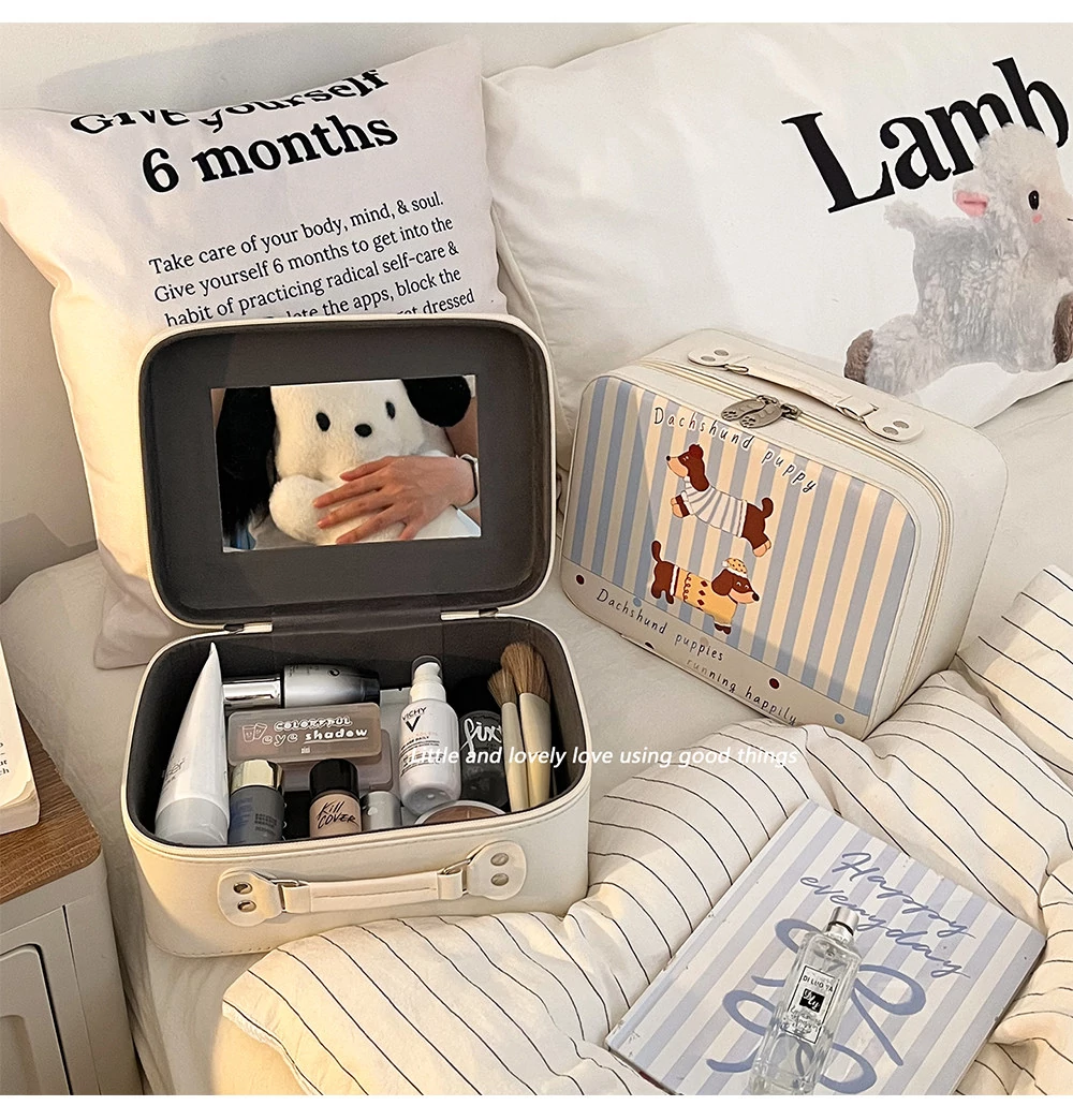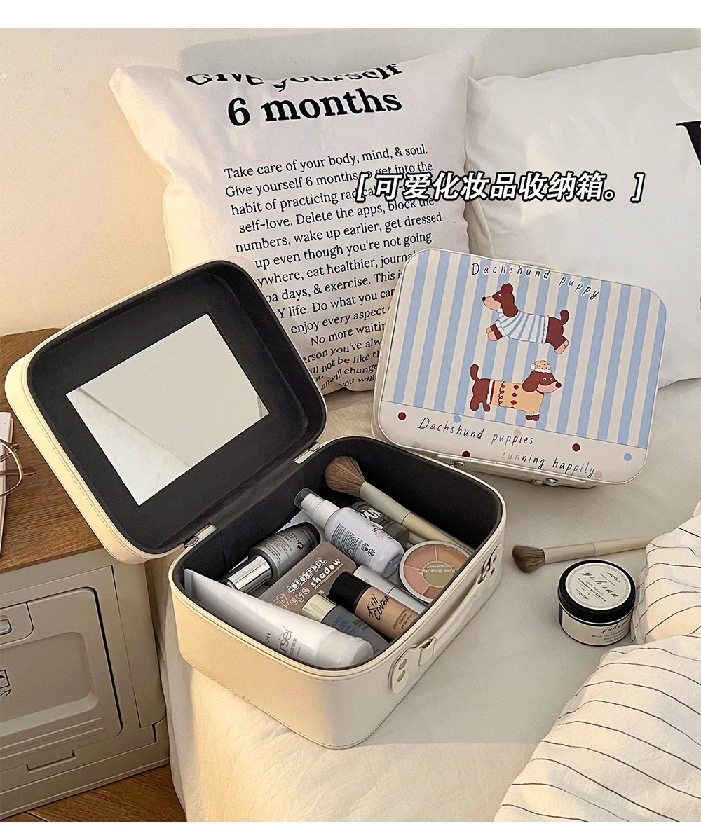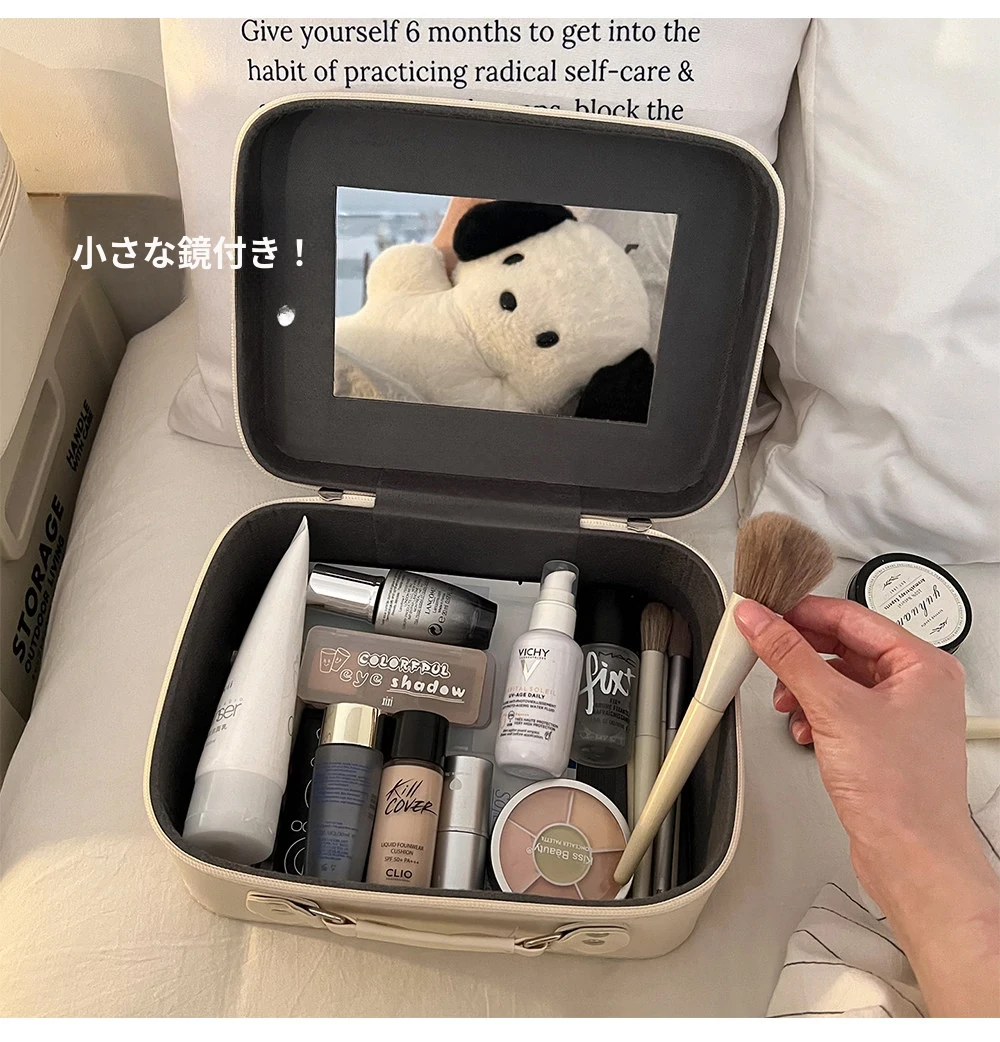 2025年最新モデル!ミラー付き化粧箱 - 大容量・持ち運び便利な化粧品収納バッグ!旅行や外出に最適、洗面道具もすっきり整理!あなたの美をサポートします!