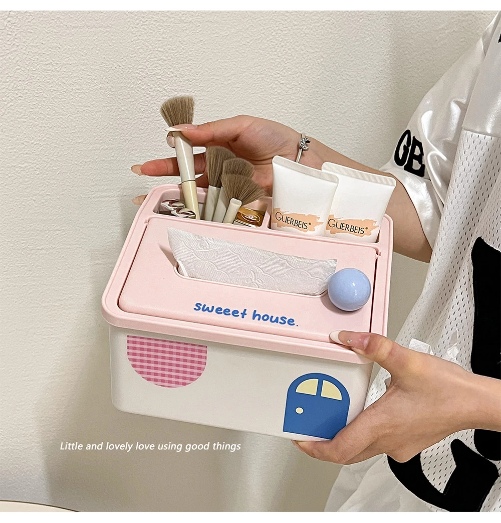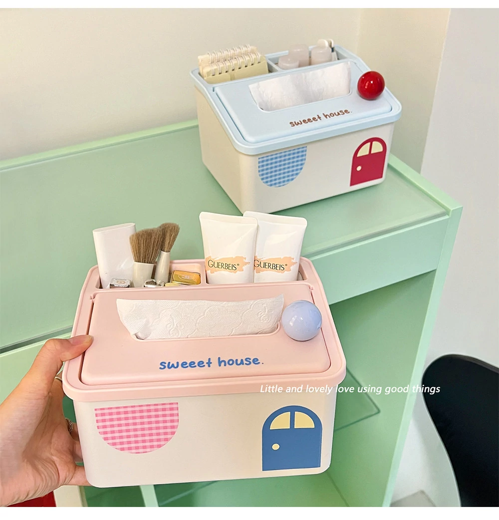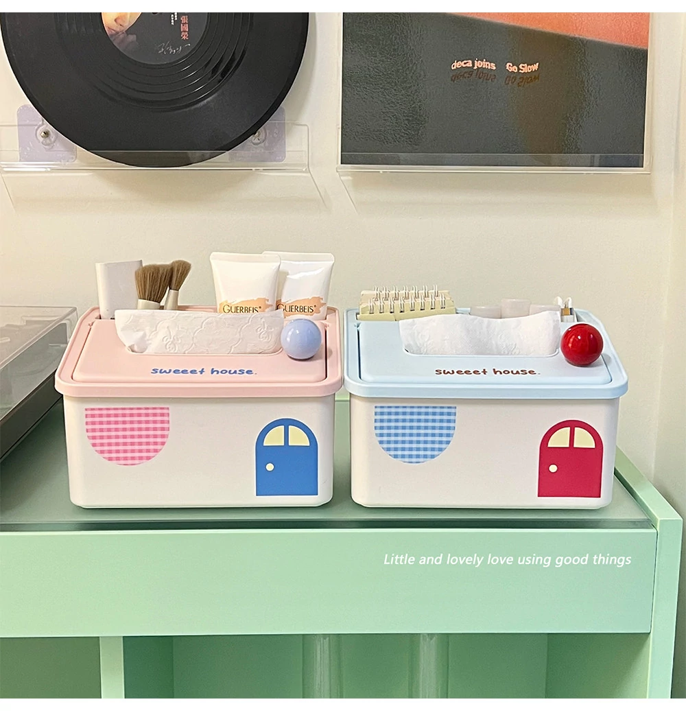 2025年新作!高颜值小房子デザインのスプリングティッシュボックス - おしゃれなリモコン収納付き!リビングにぴったりなクリエイティブなデスクトップアイテムで、生活をより便利に!