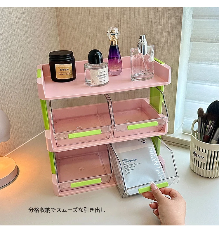 2025年新作!高級感溢れるアクリル製化粧品収納ボックス - 引き出し仕切り付き、デスク上の埃を防ぎ、洗練されたドレッサー収納ラックとして最適!あなたのメイクアップスペースをスタイリッシュに演出!