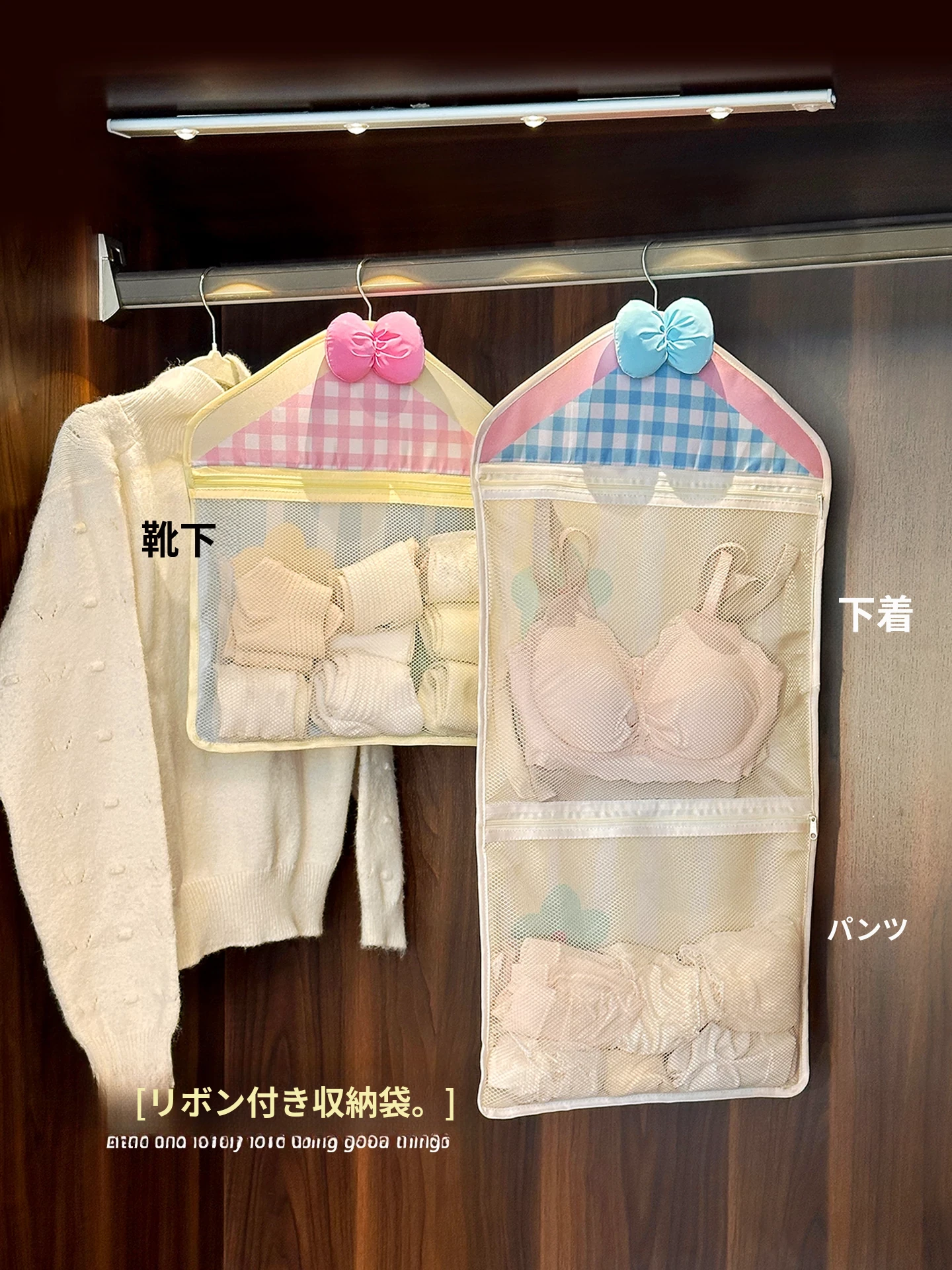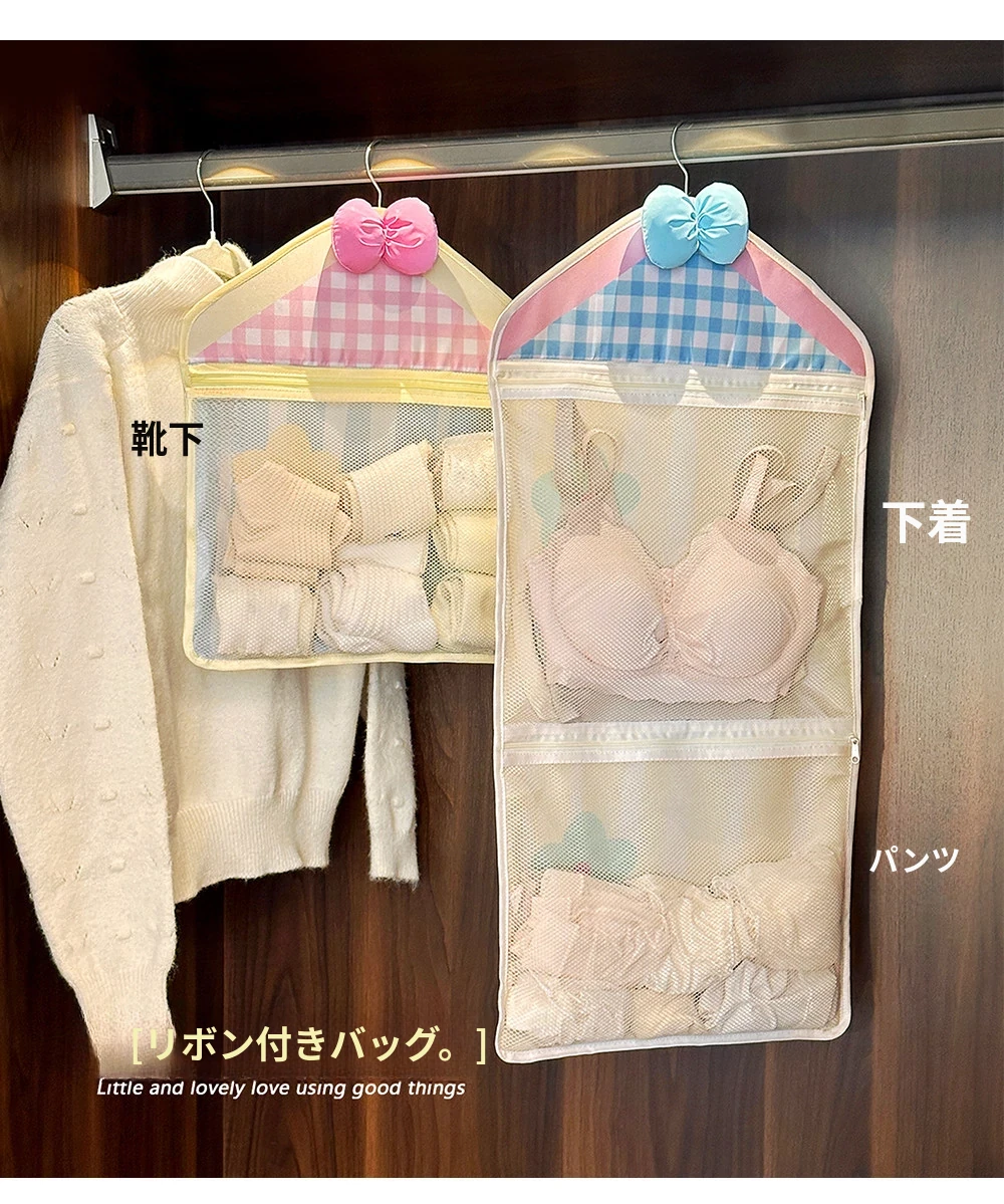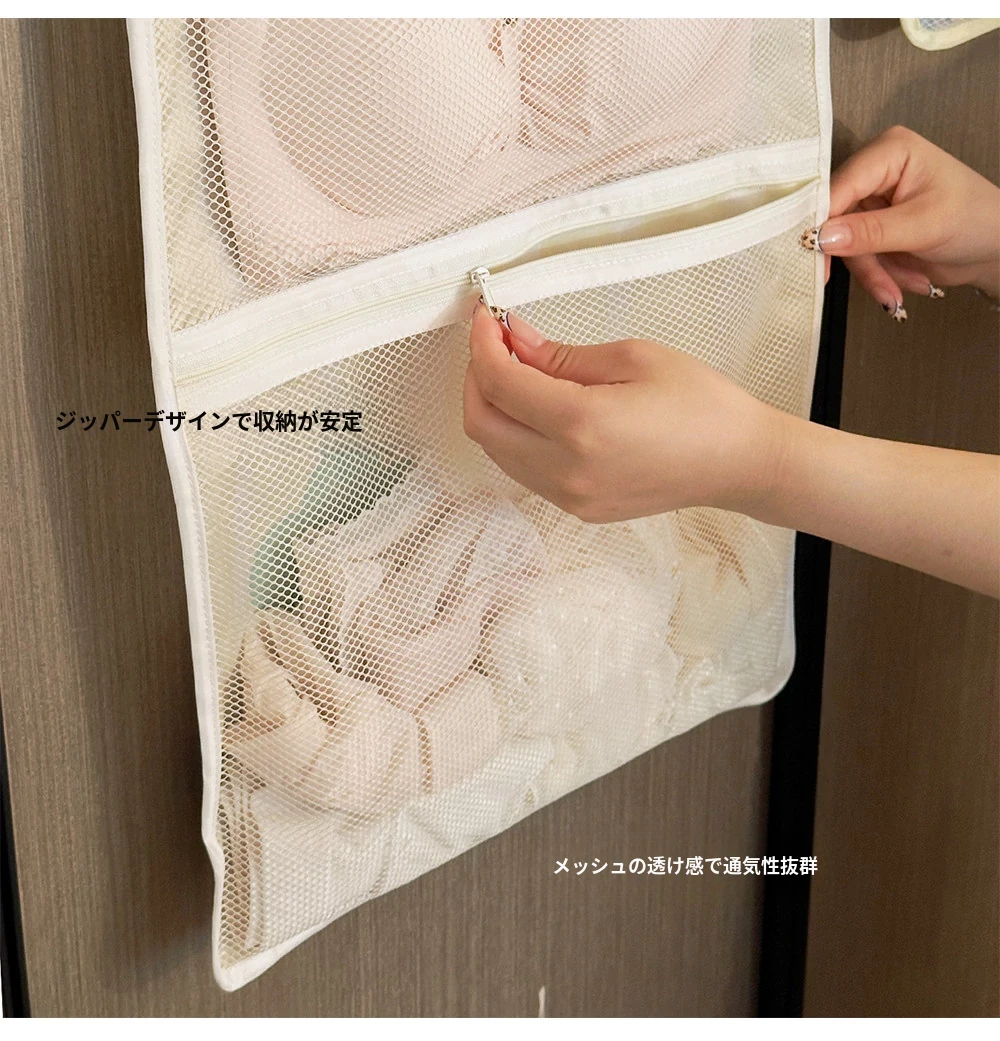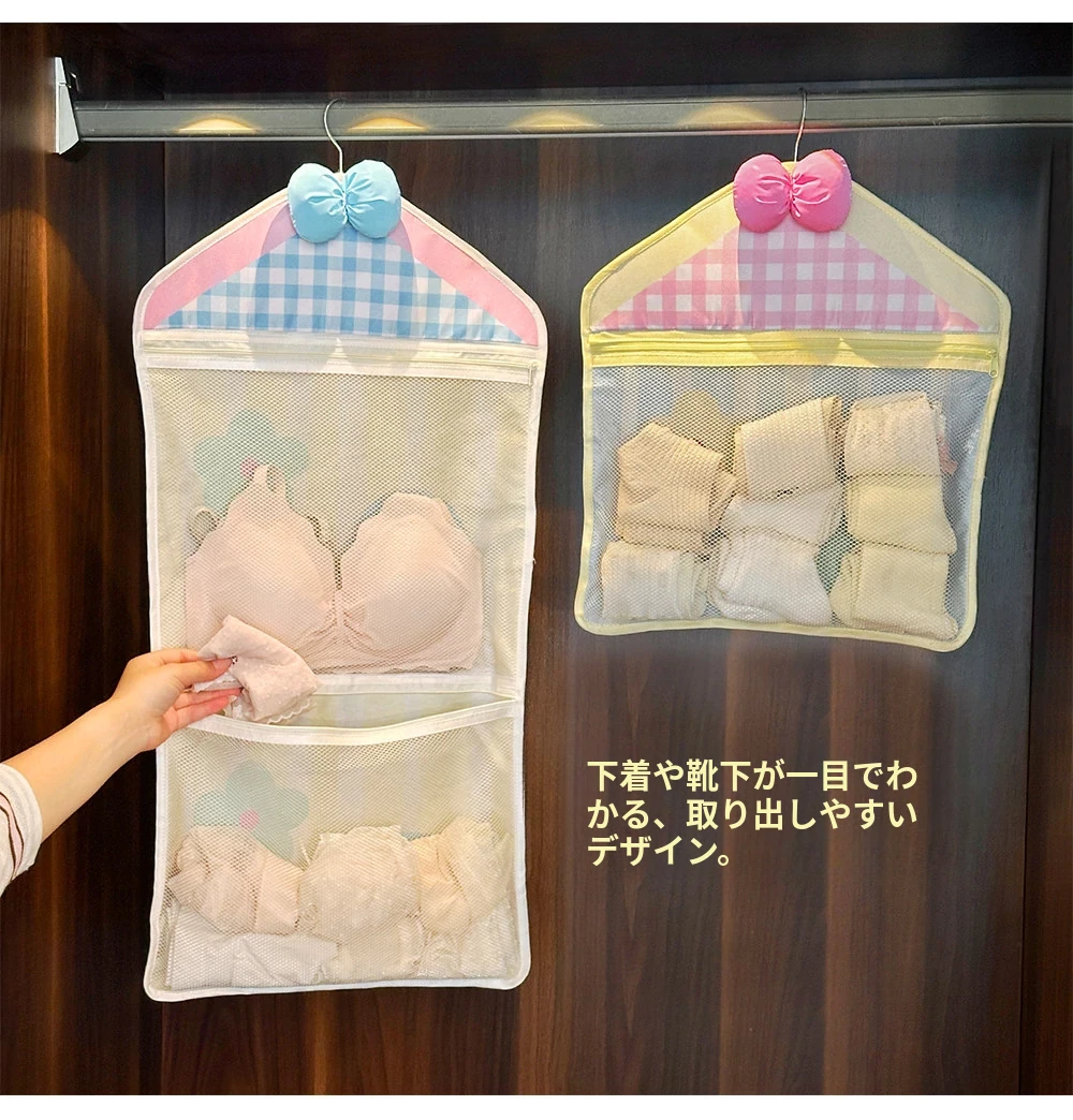 インナー収納バッグ ソックス・パンティ専用!3in1 壁掛けネットポケット 衣類収納に最適なハンギングネットバッグ!お部屋をスッキリ整理整頓!