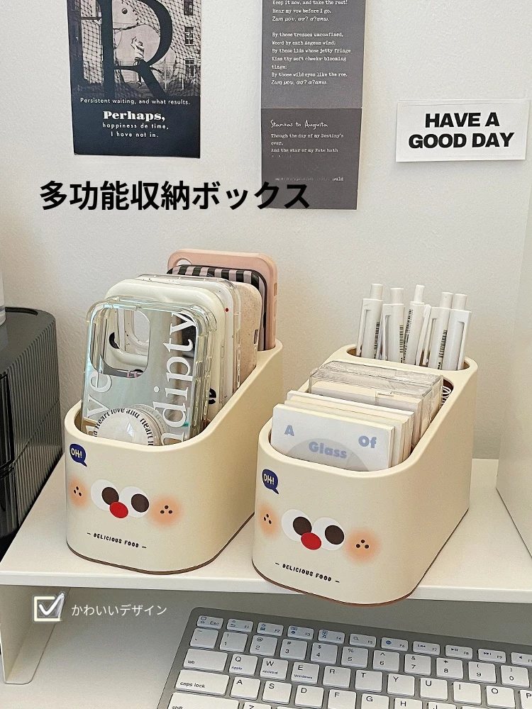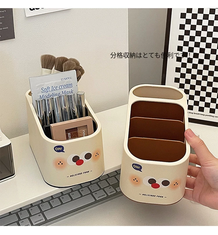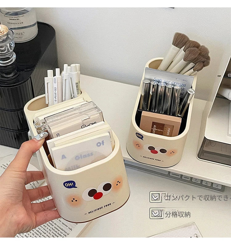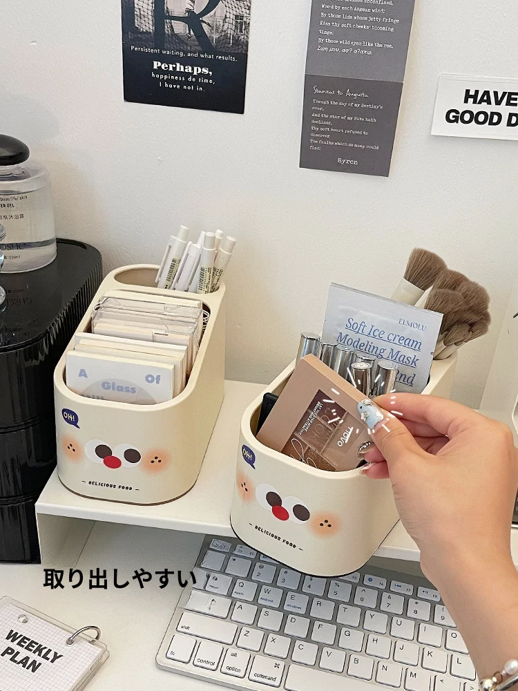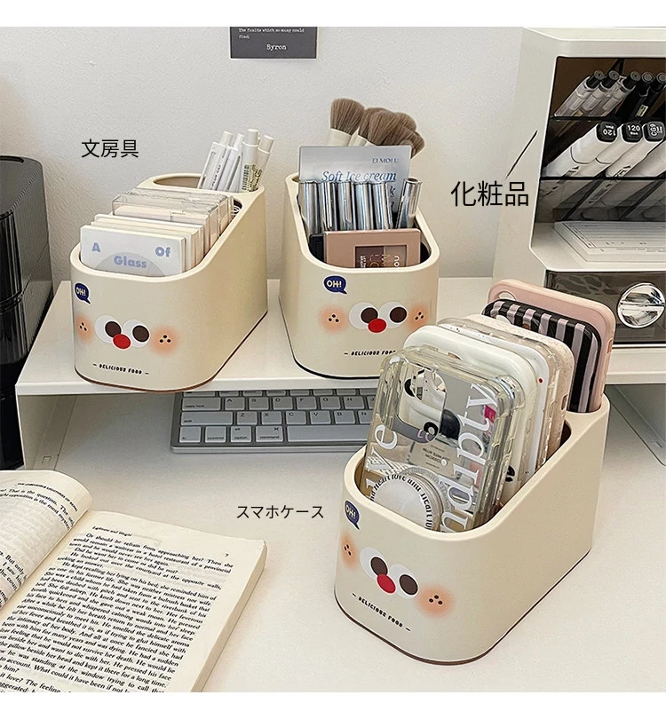 可愛いカートゥーンデスク収納ボックス|スマホケース・女の子向け化粧ブラシ・雑貨・ノート・学生必見の収納|化粧品ボックスでおしゃれに整理整頓!