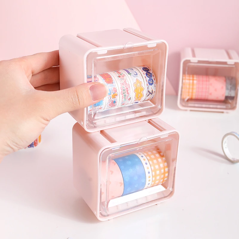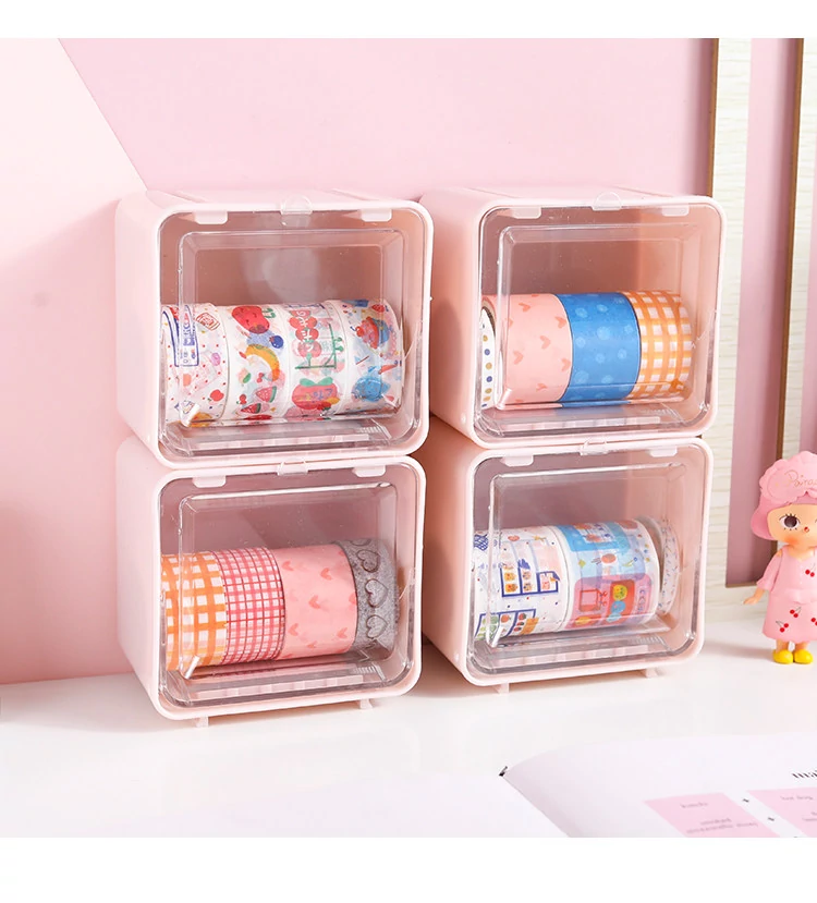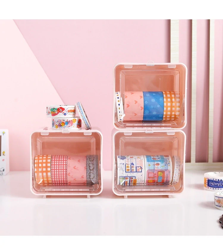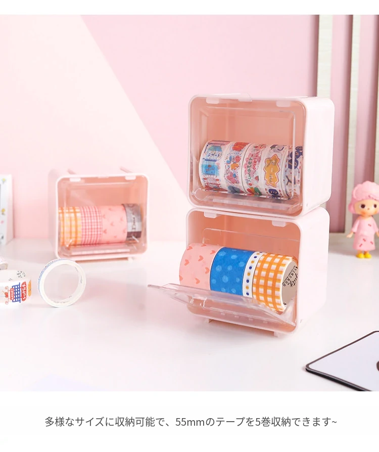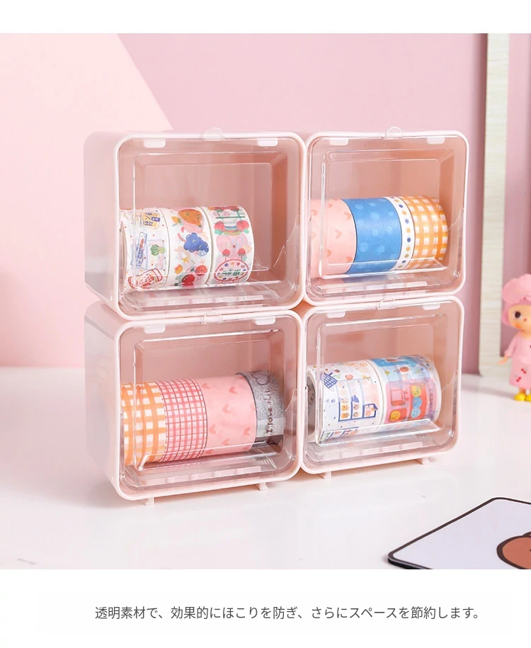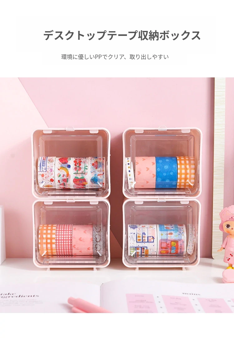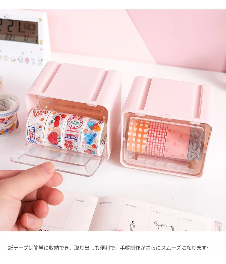 可愛い少女心をくすぐる手帳用マスキングテープ収納ボックス!透明デザインでデスク周りをスッキリ整理。学生や文具好きにぴったりな収納ボックスです。あなたの書斎をおしゃれに彩りましょう!