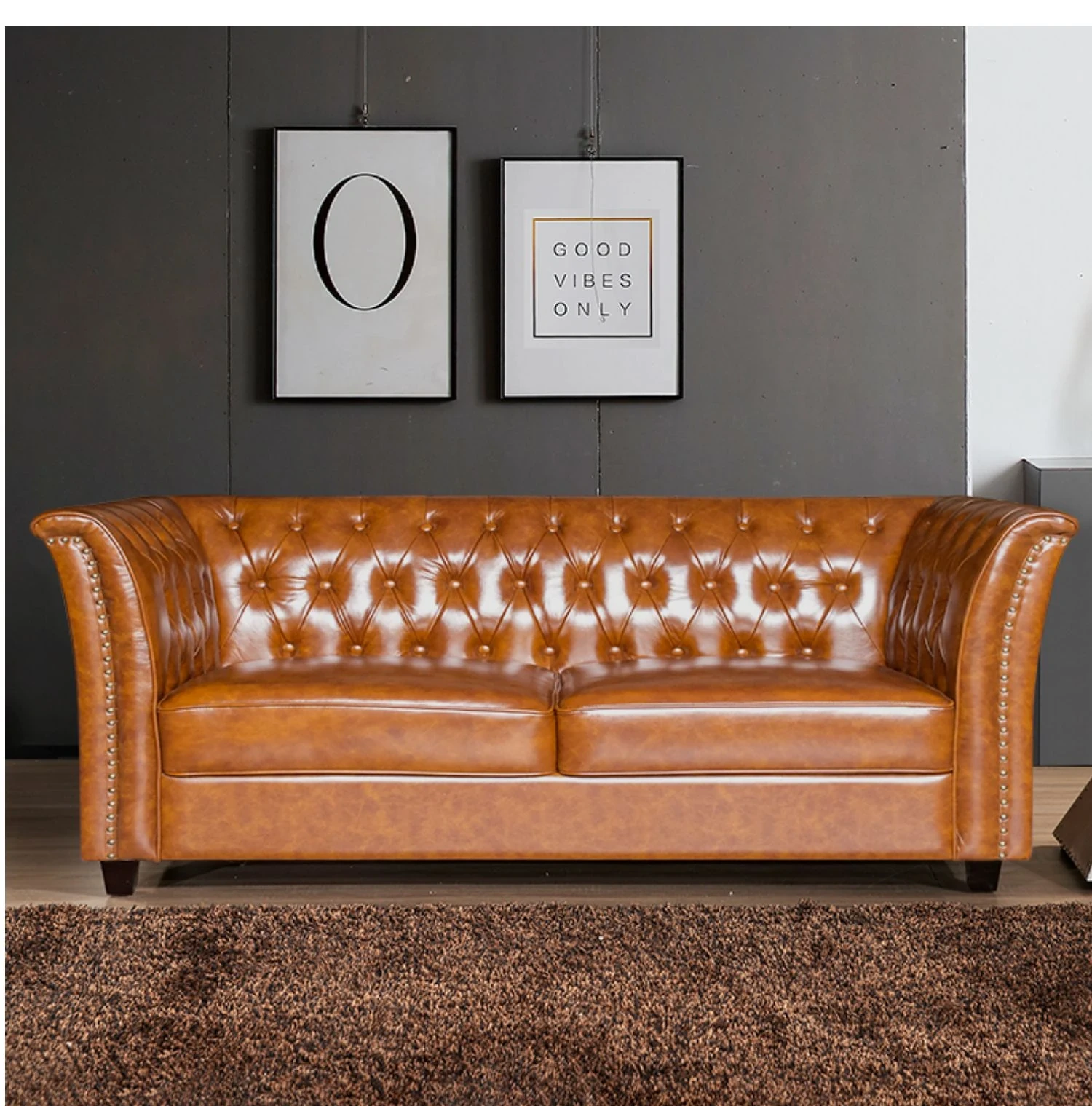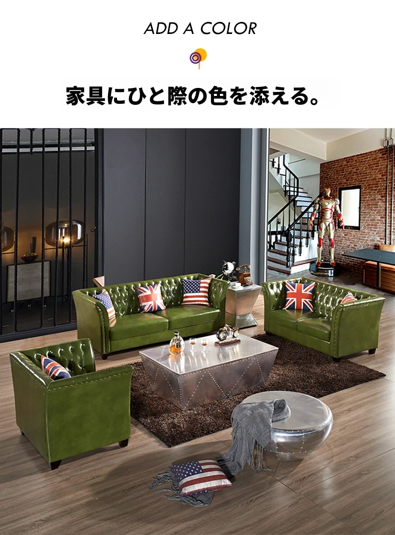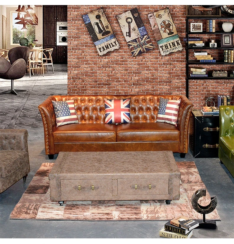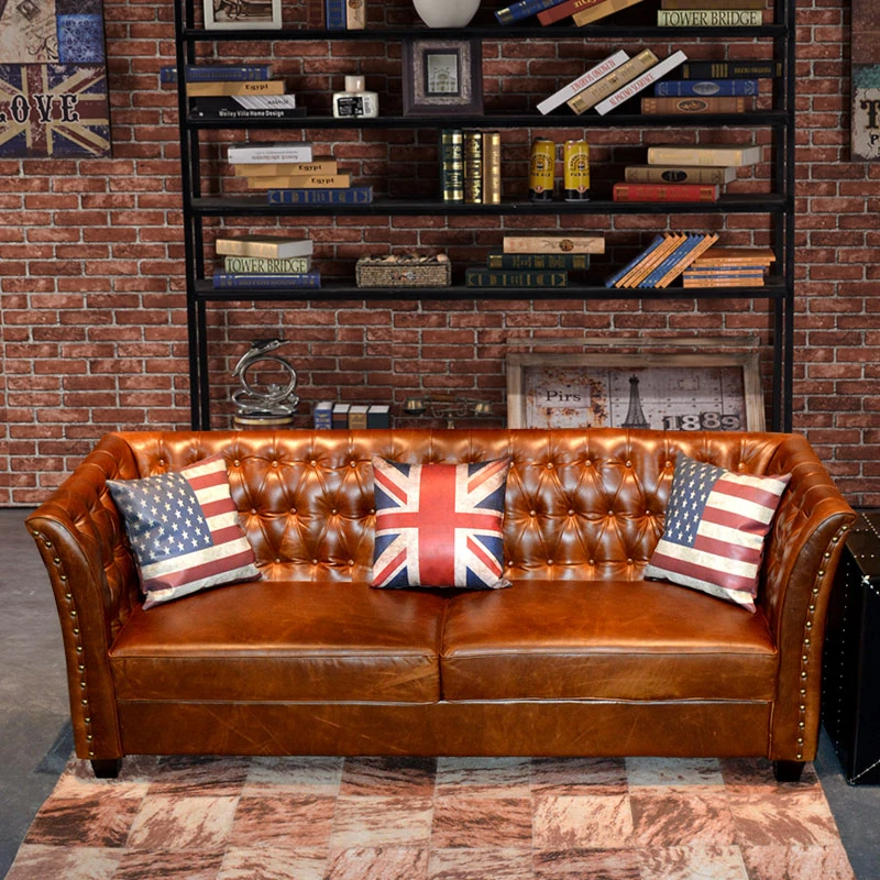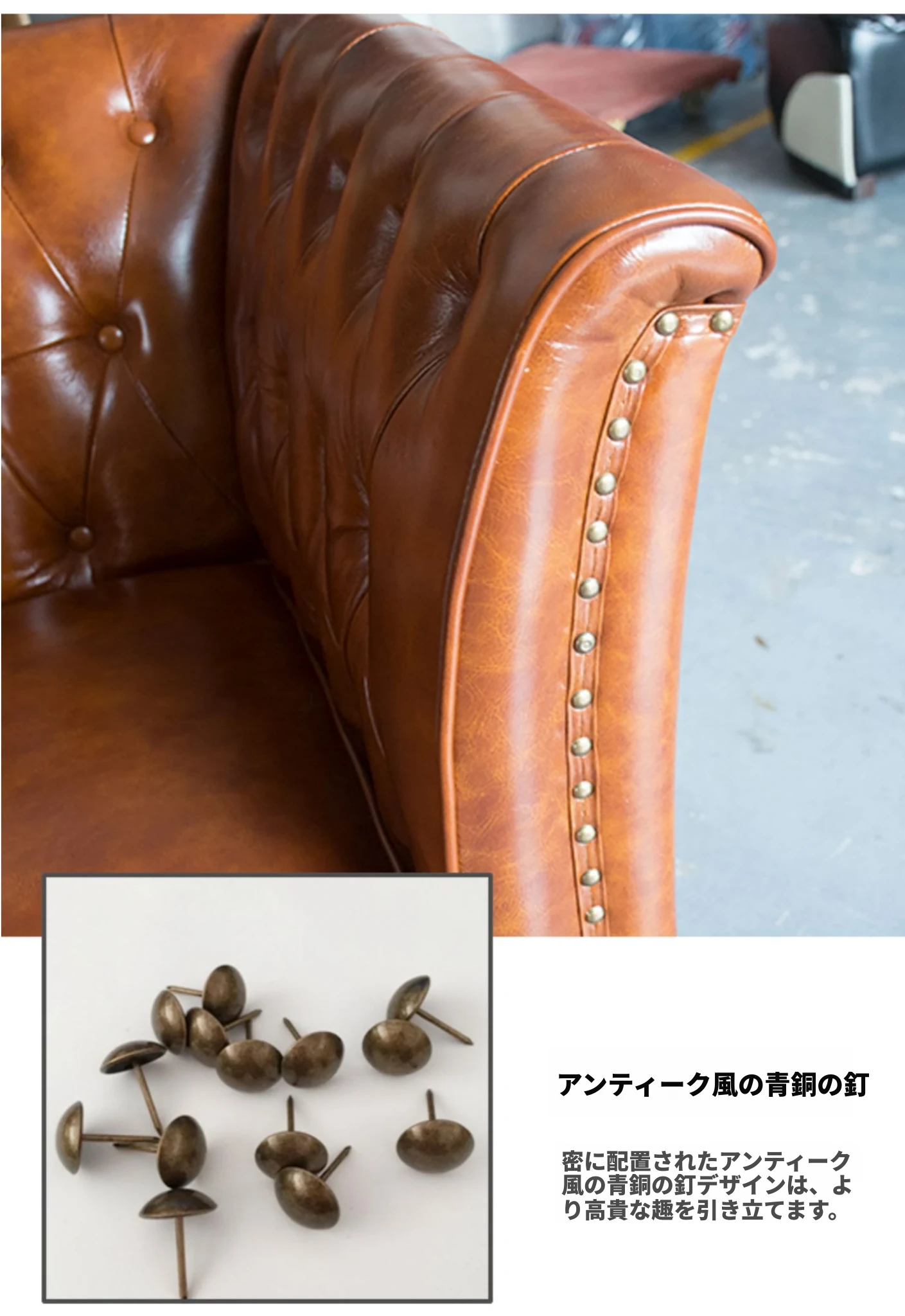 アメリカンカントリー風 本革ソファ - 上質な牛革使用の3人掛けオイルワックス仕上げ ヴィンテージ感漂うレトロデザインのリビング・オフィス用ソファで、居心地の良さを追求!