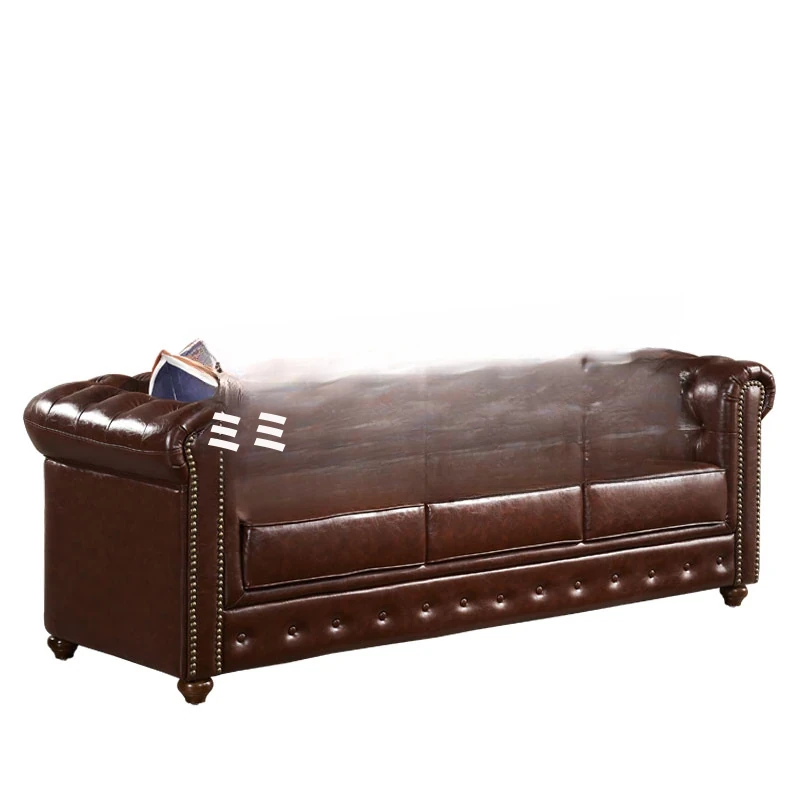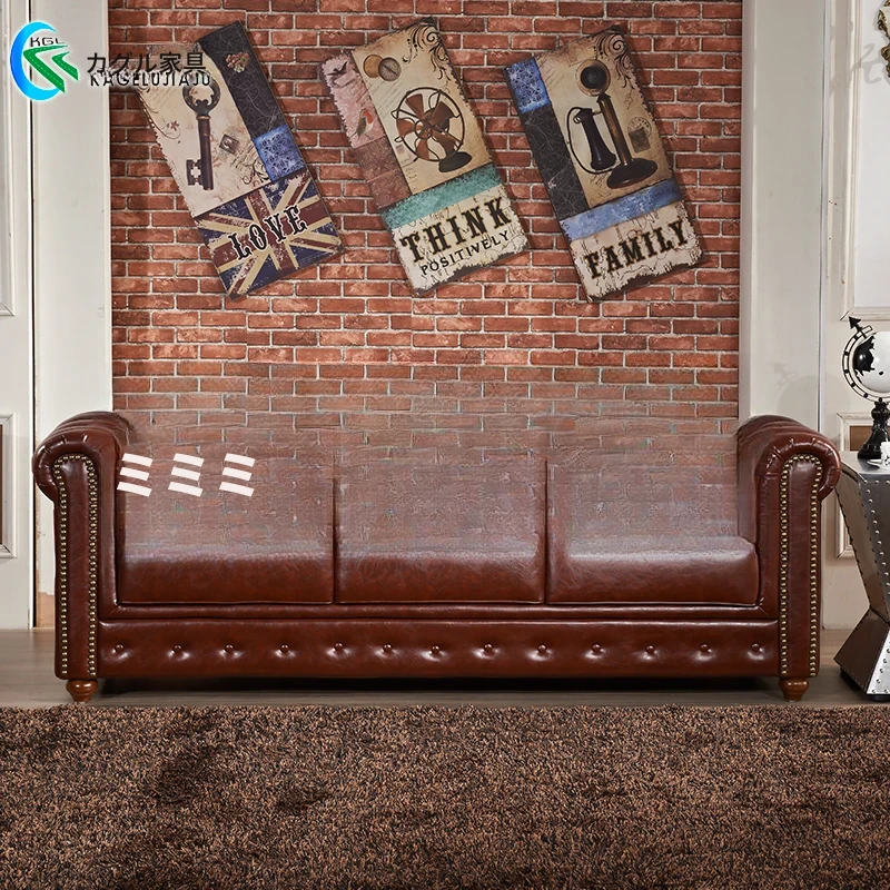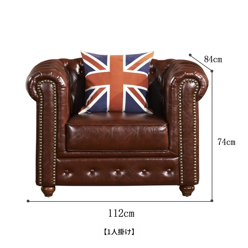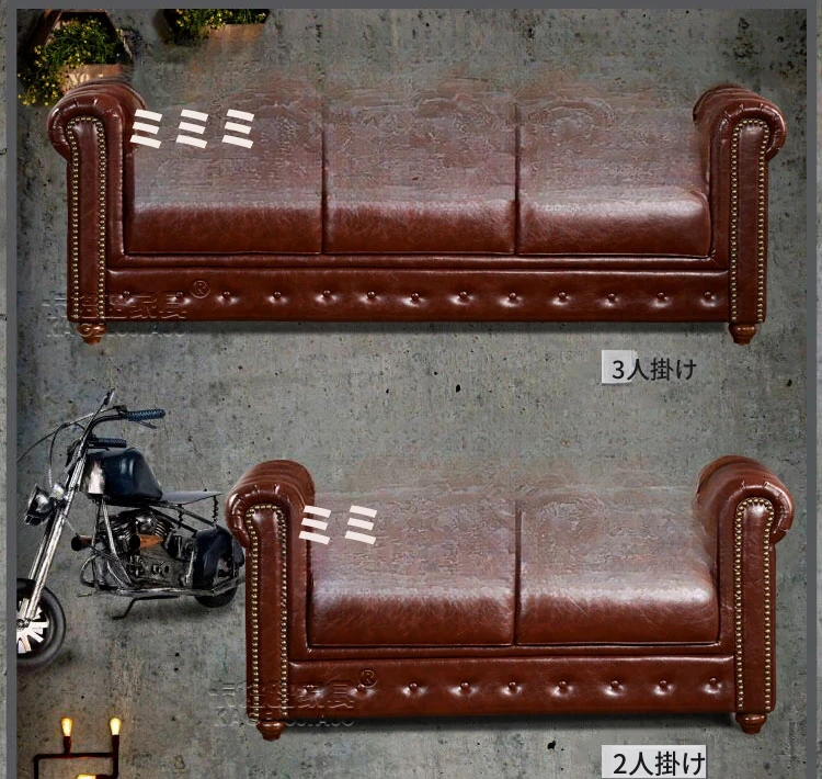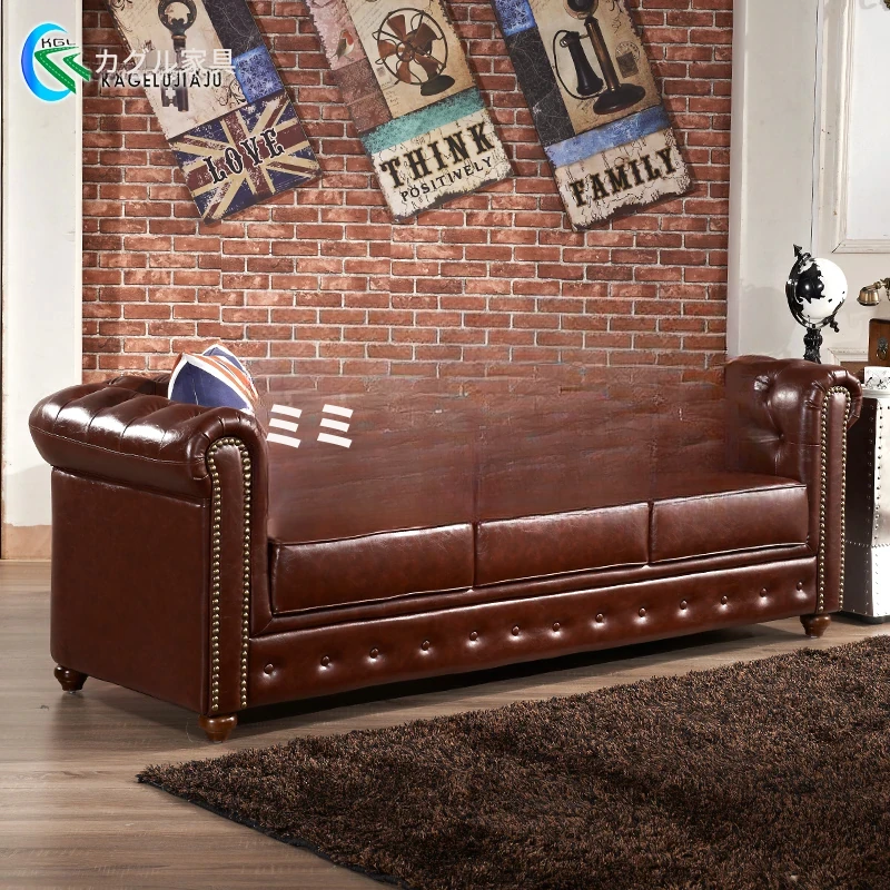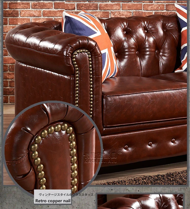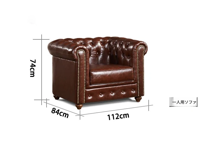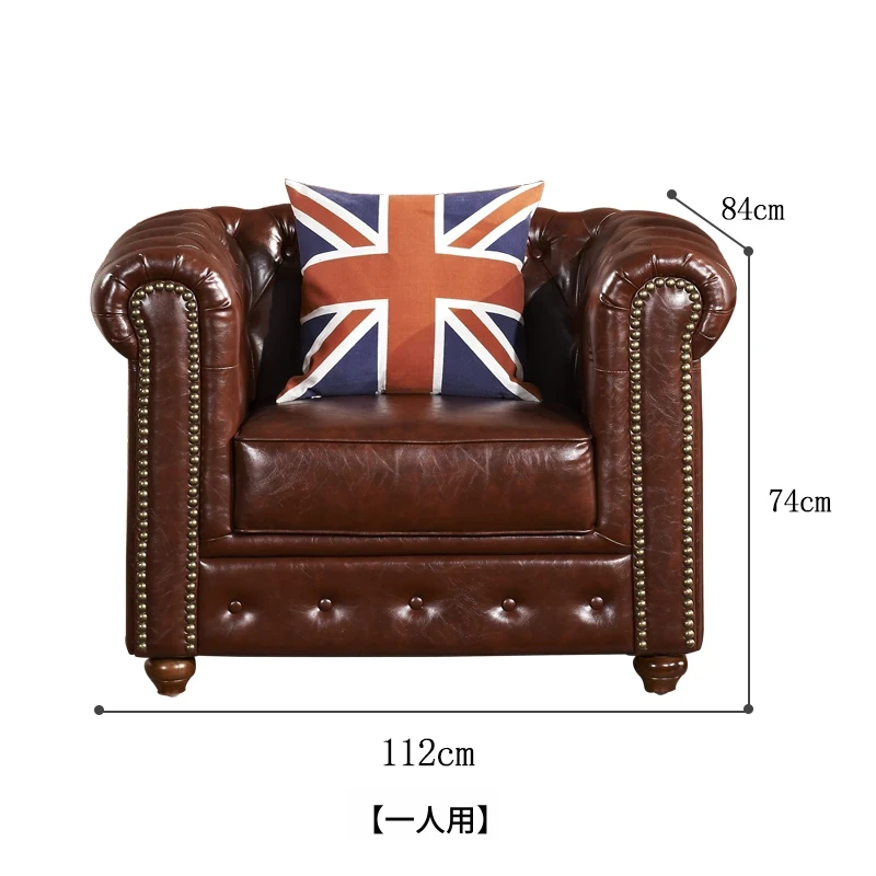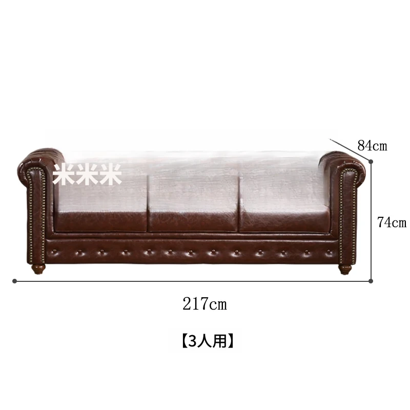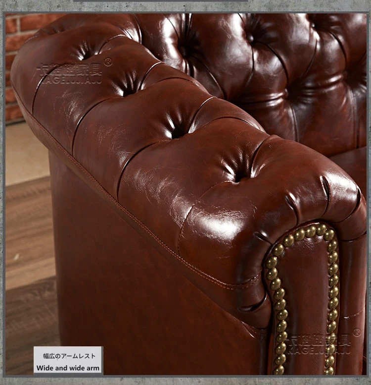 アメリカンスタイルのラグジュアリー本革ソファ - 高級牛革を使用したヴィンテージデザイン、オイルワックス仕上げ。リビングや喫煙ラウンジに最適な洗練された雰囲気を演出するソファ。