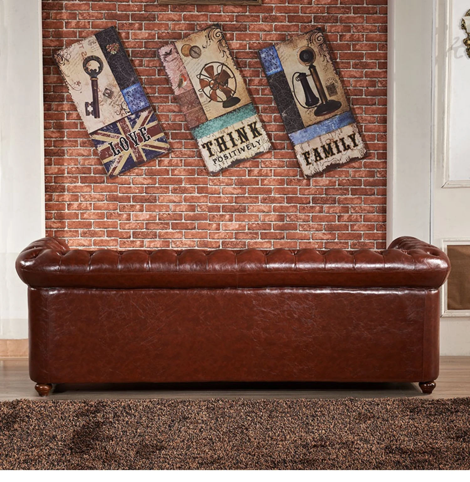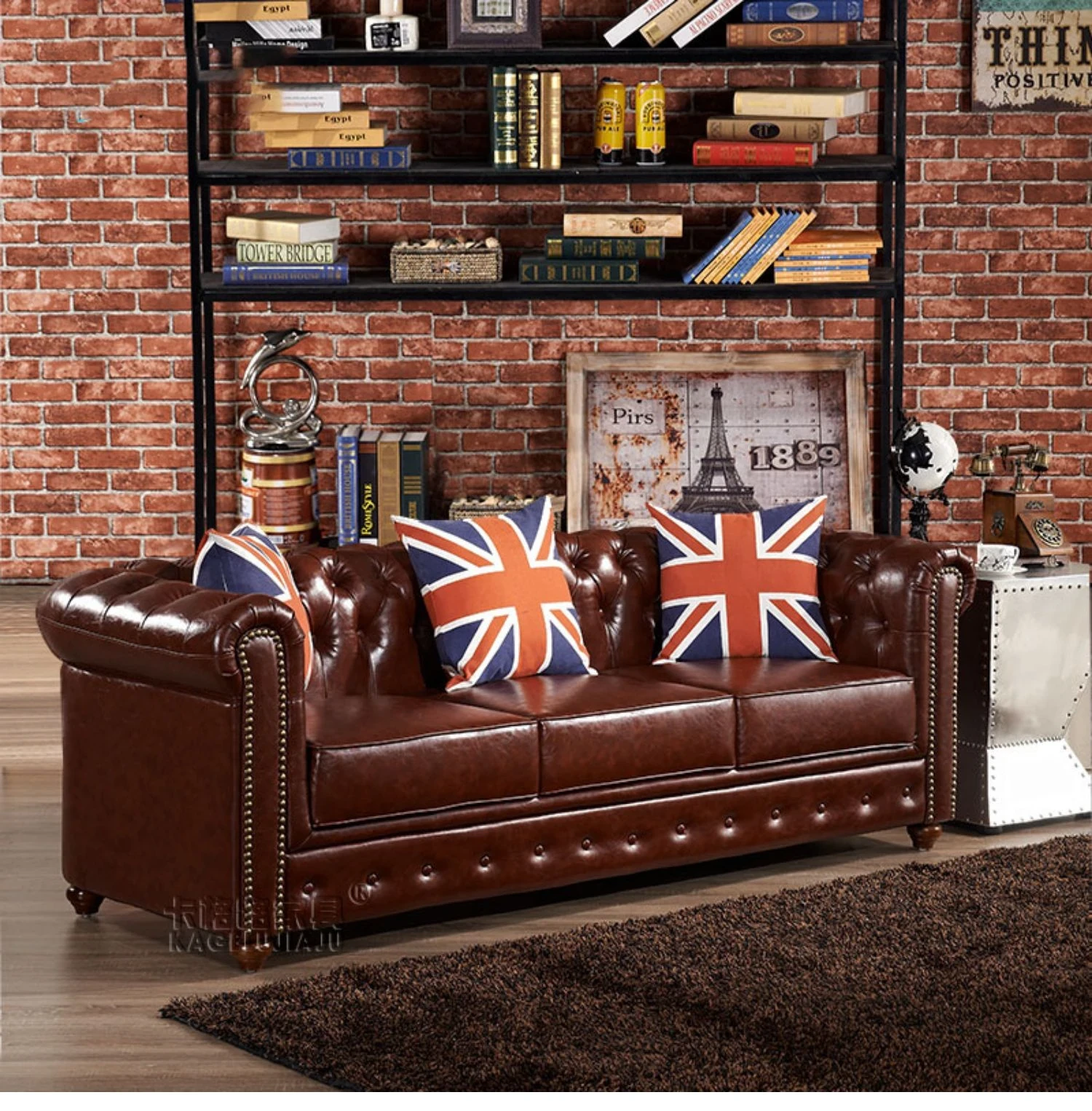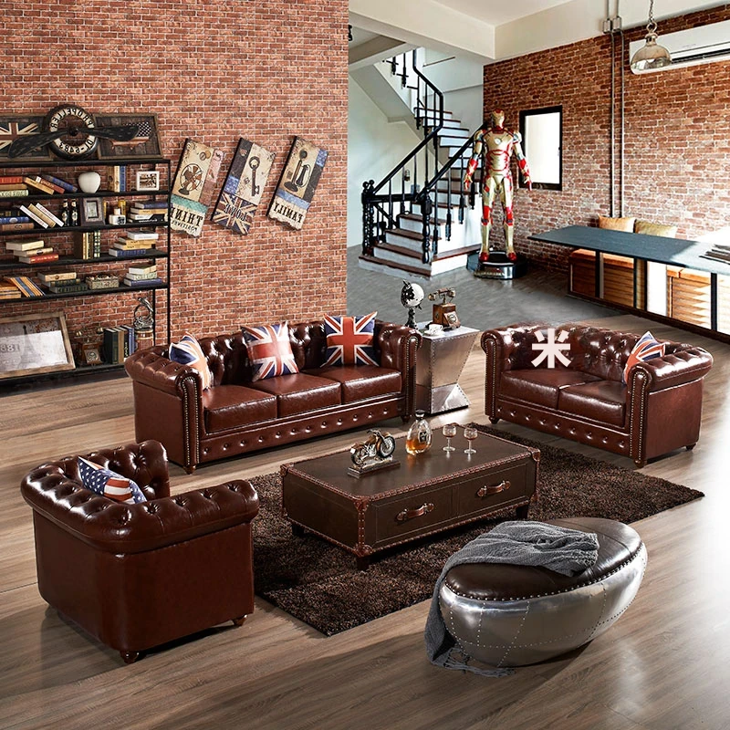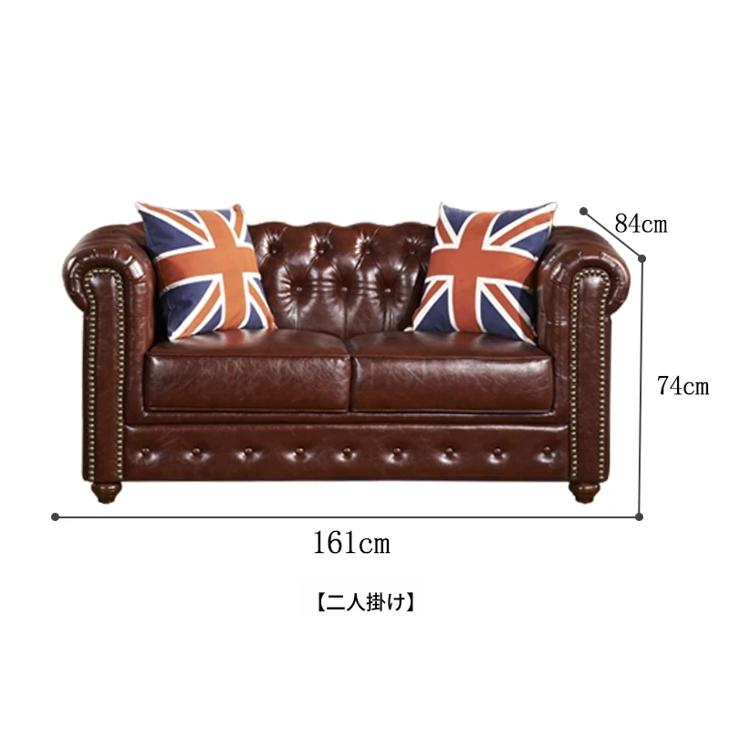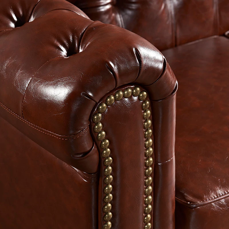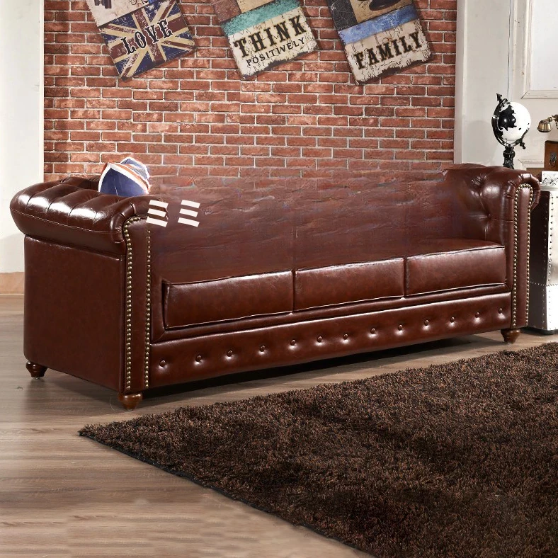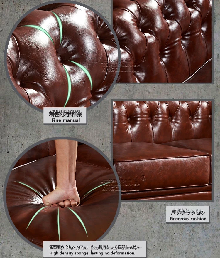 アメリカンスタイルのラグジュアリー本革ソファ - 高級牛革を使用したヴィンテージデザイン、オイルワックス仕上げ。リビングや喫煙ラウンジに最適な洗練された雰囲気を演出するソファ。