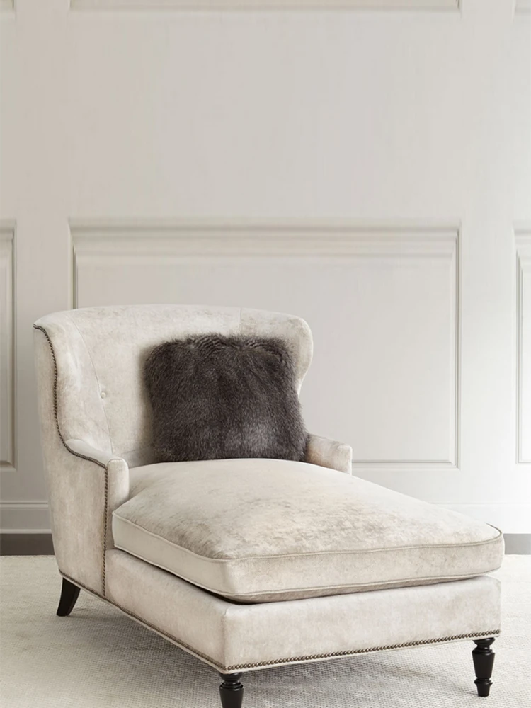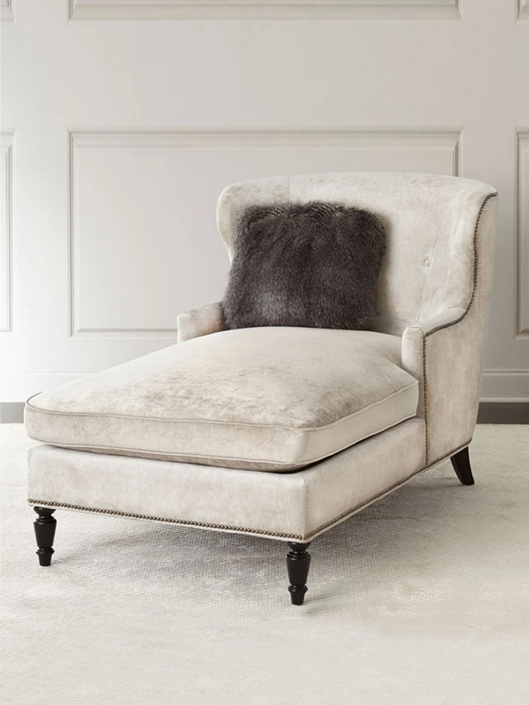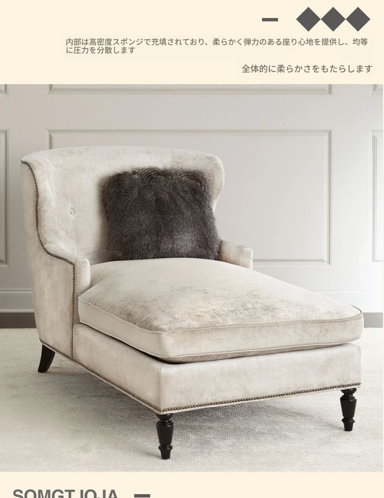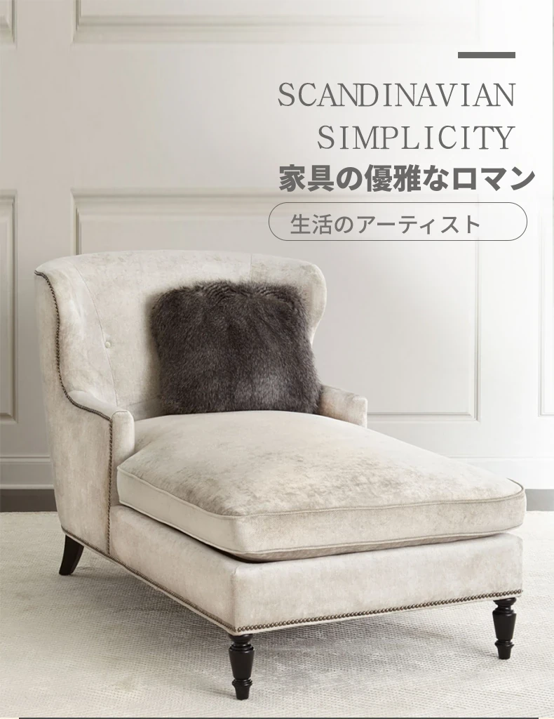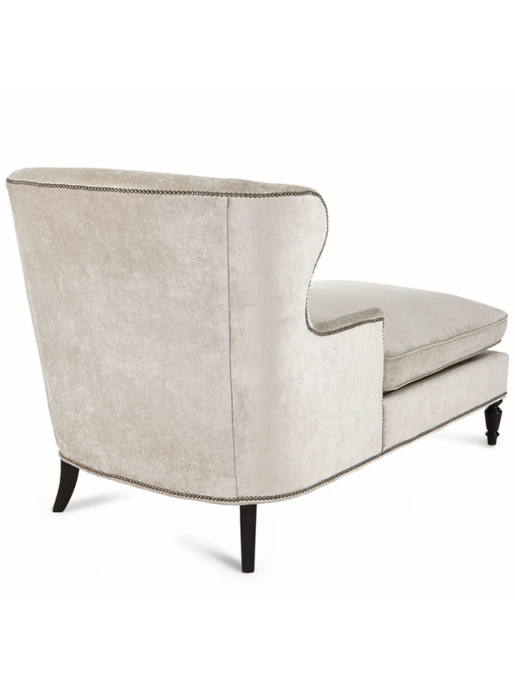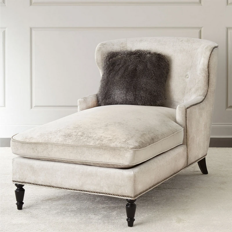 アメリカンスタイルの無垢材製小型貴妃椅子 - レトロなデザインの一人掛けソファ、リビングにぴったりなアートな曲線とリラックス空間を演出する美しいラウンジチェア!