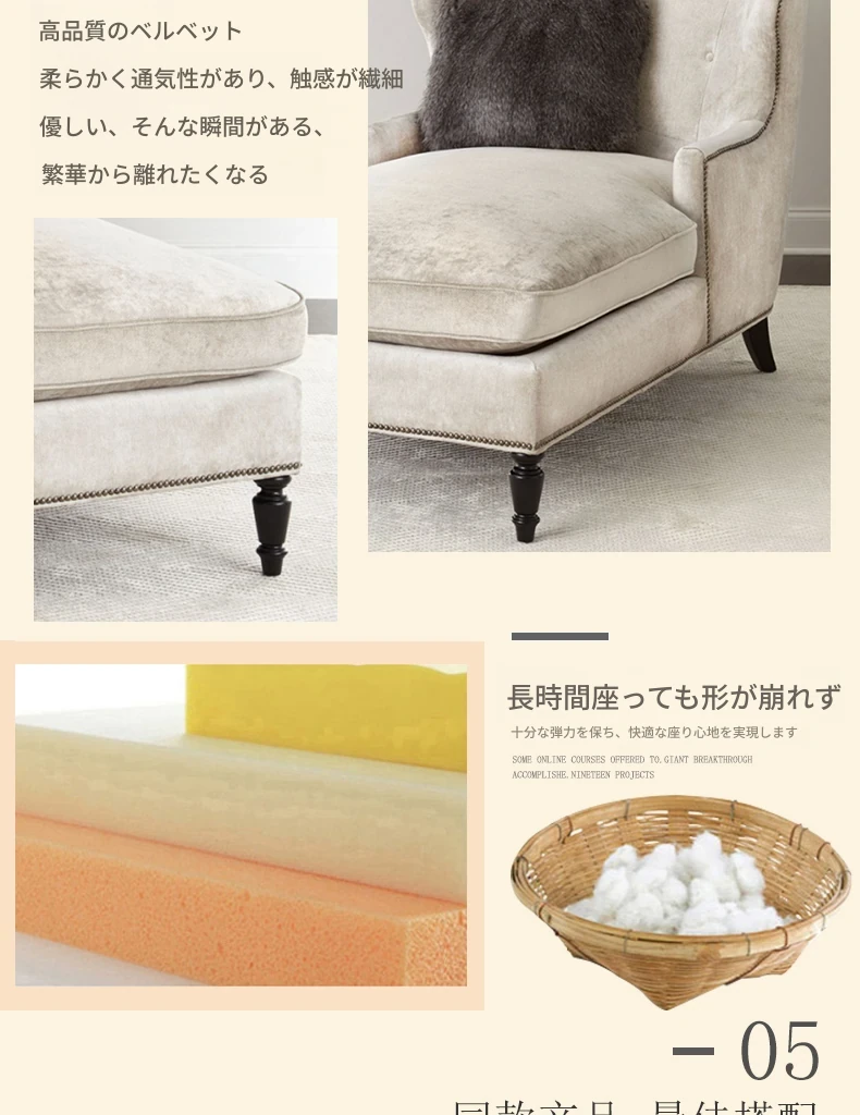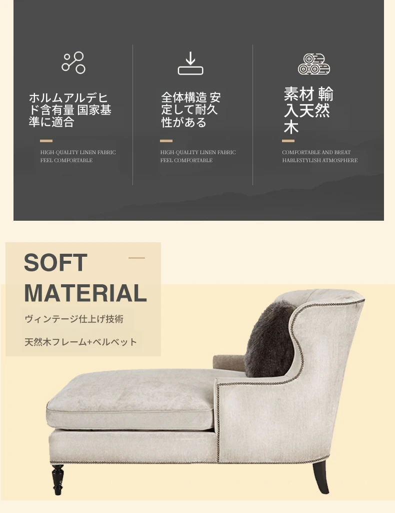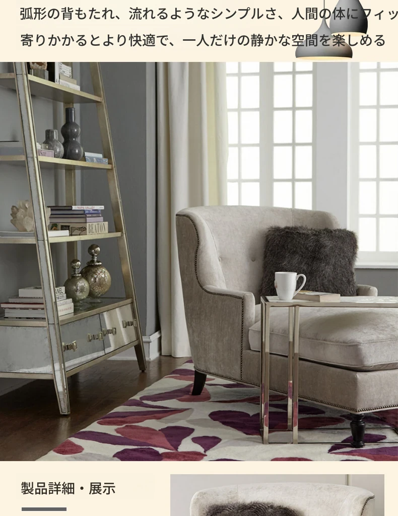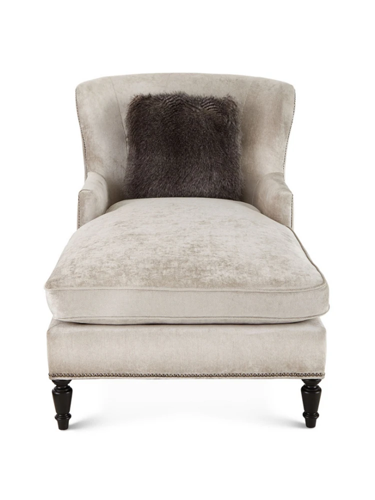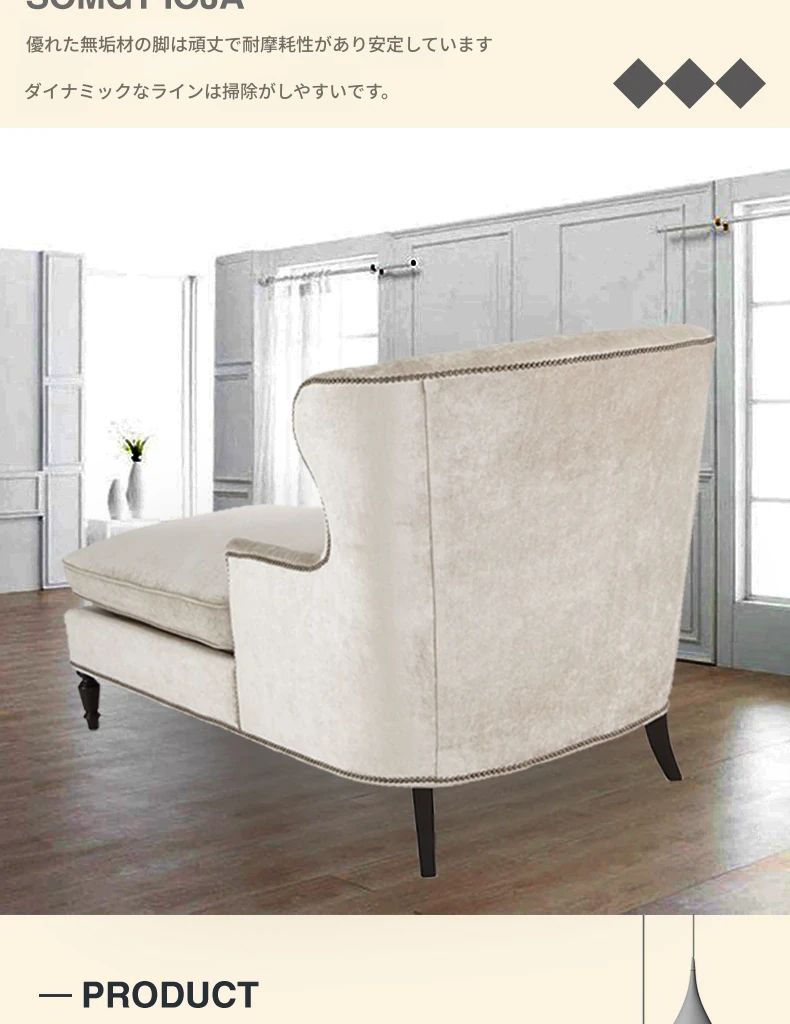 アメリカンスタイルの無垢材製小型貴妃椅子 - レトロなデザインの一人掛けソファ、リビングにぴったりなアートな曲線とリラックス空間を演出する美しいラウンジチェア!