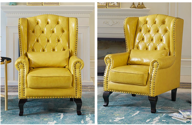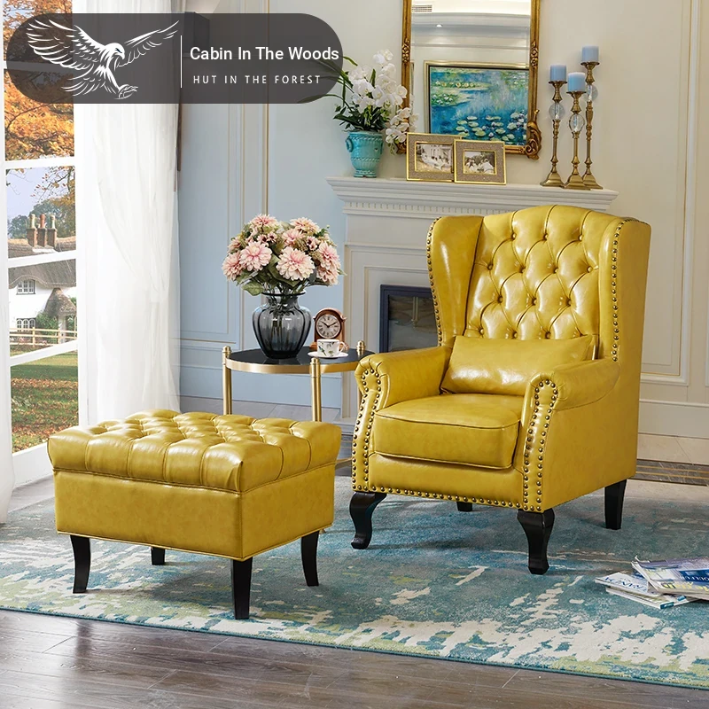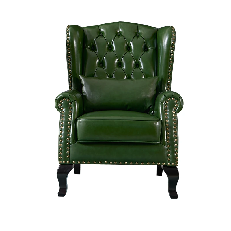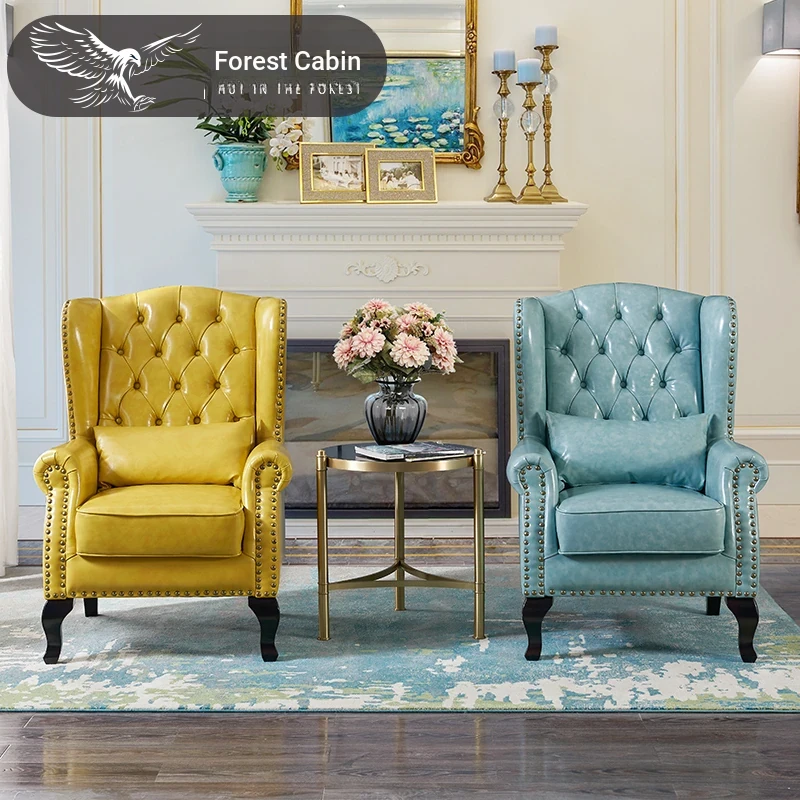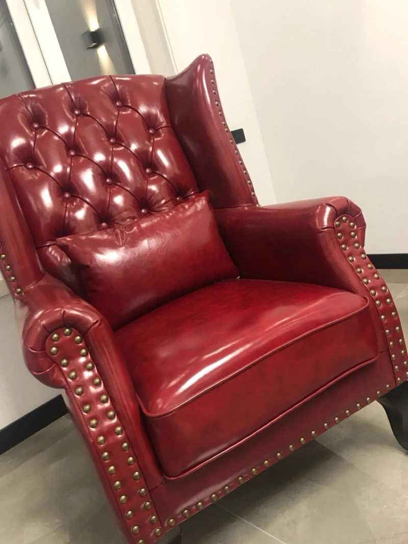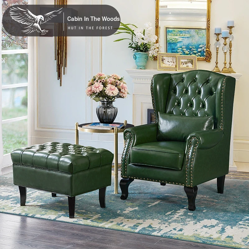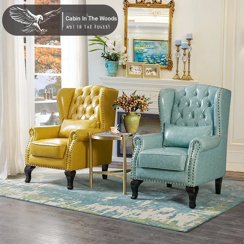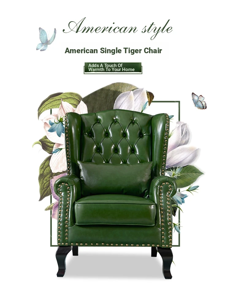 アメリカンレトロ一人掛けソファー|本革使用のカントリースタイル小型実木リビング用|快適なハイバック・ラウンジチェア|おしゃれな虎の椅子でリラックスしたひとときを!
