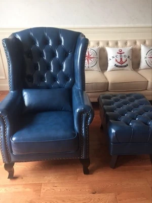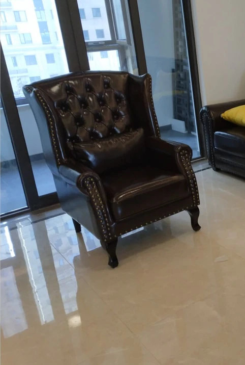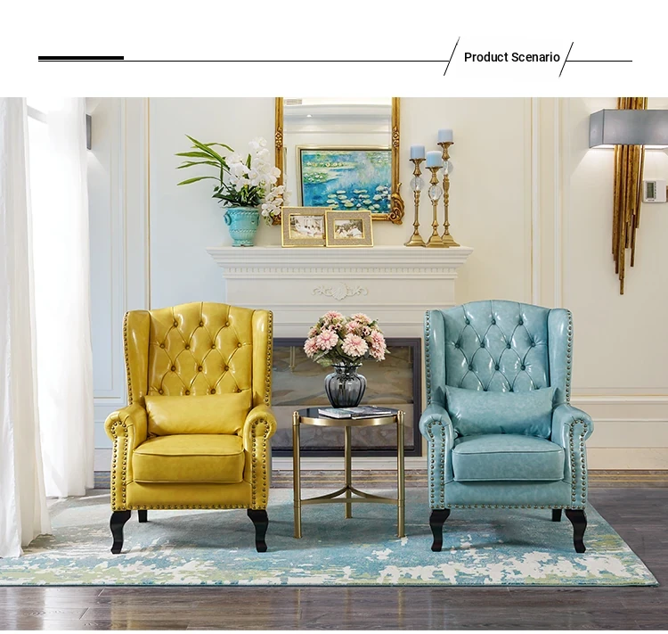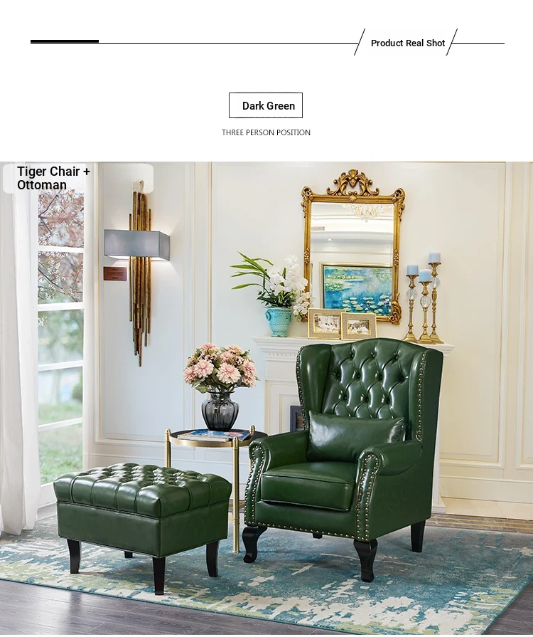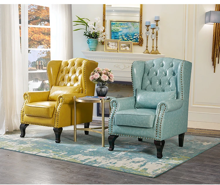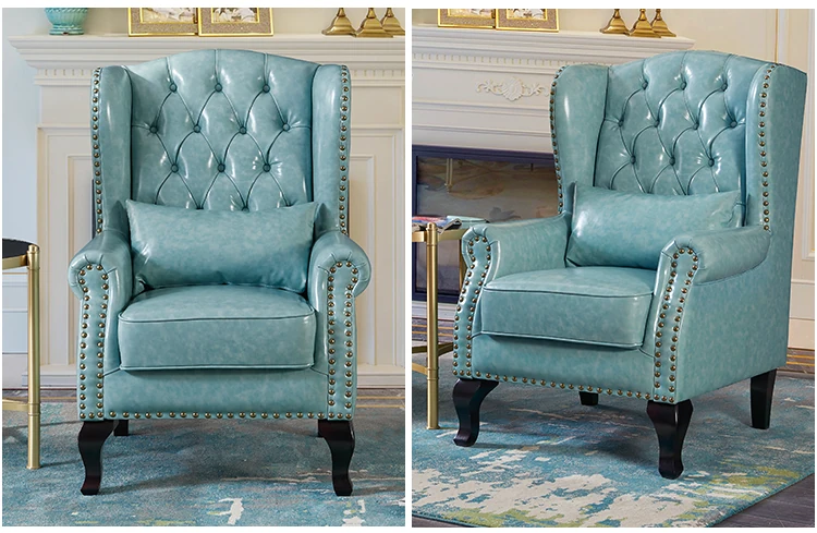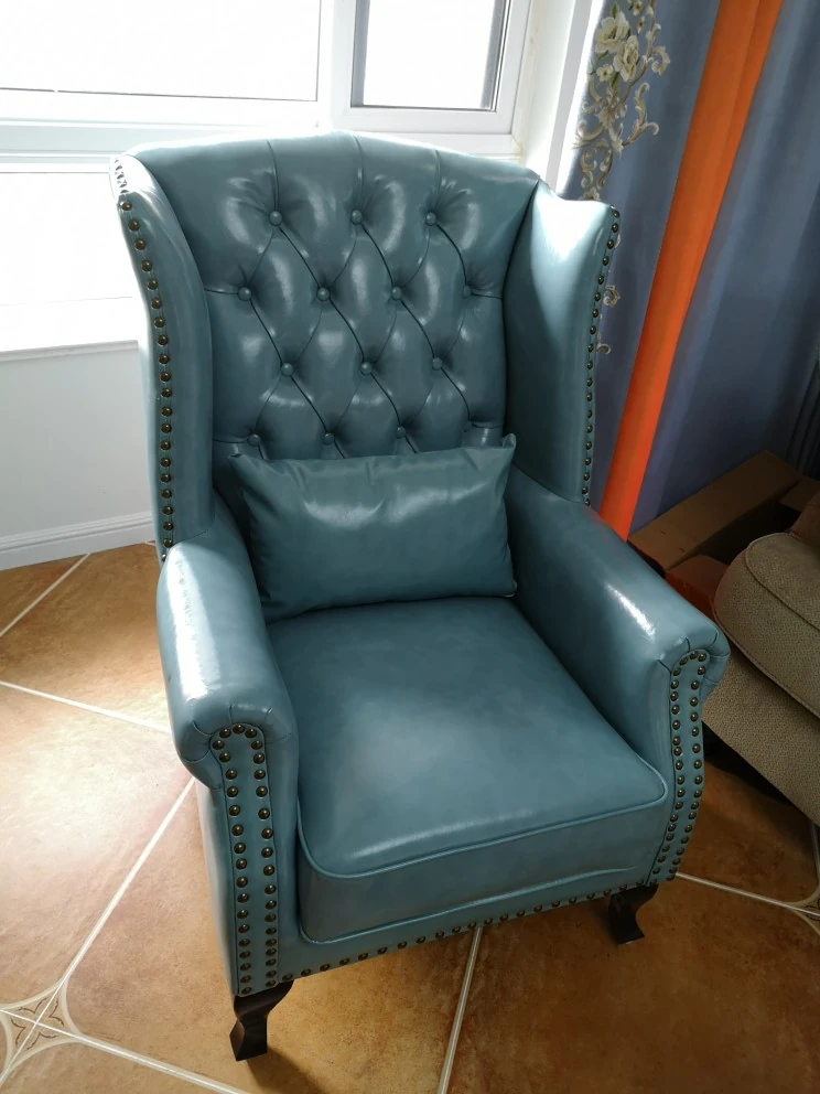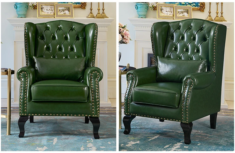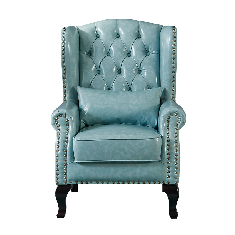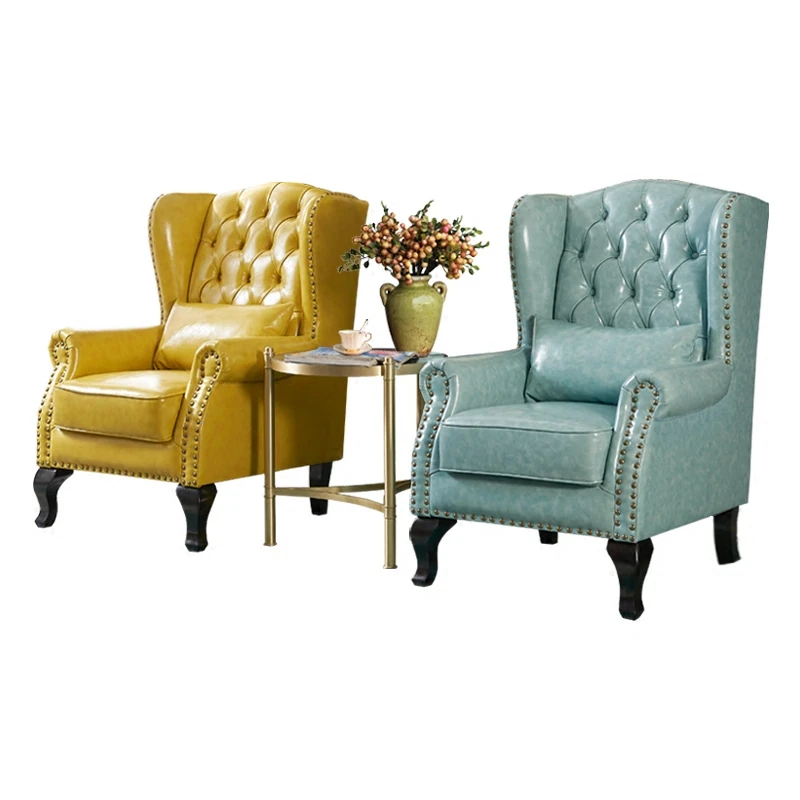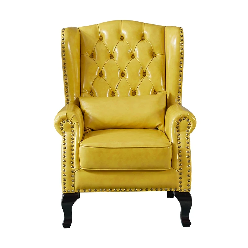 アメリカンレトロ一人掛けソファー|本革使用のカントリースタイル小型実木リビング用|快適なハイバック・ラウンジチェア|おしゃれな虎の椅子でリラックスしたひとときを!